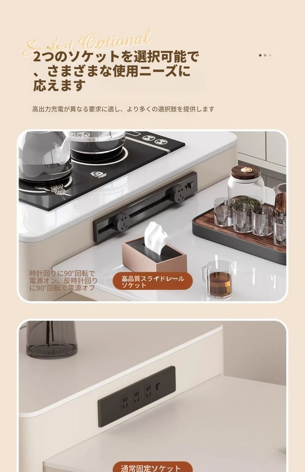 120*60cmアイランドテーブル+IHコンロ+ケトル+レールタップ