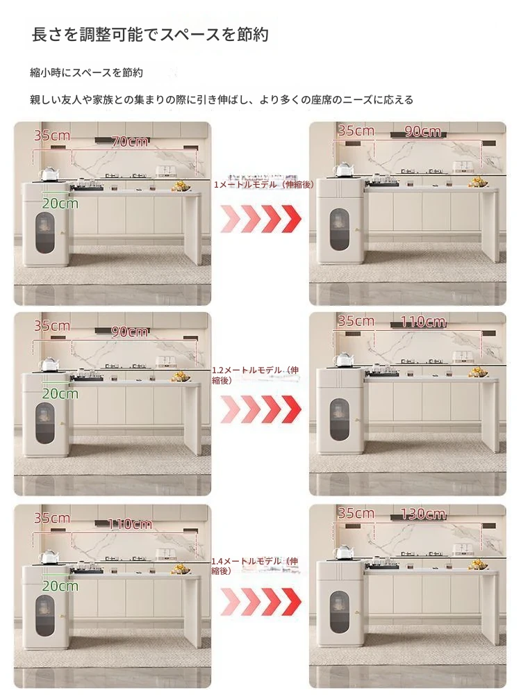 140*60cmアイランドテーブル+IHコンロ+ケトル+レールタップ+6脚の椅子