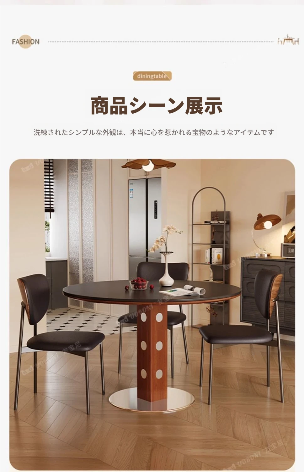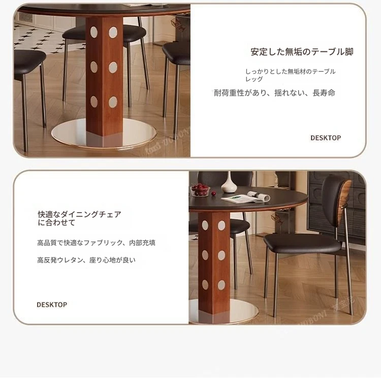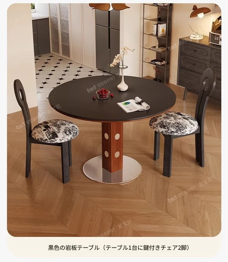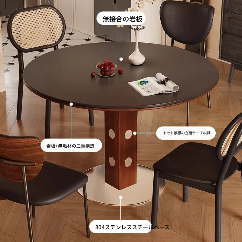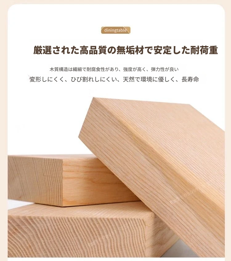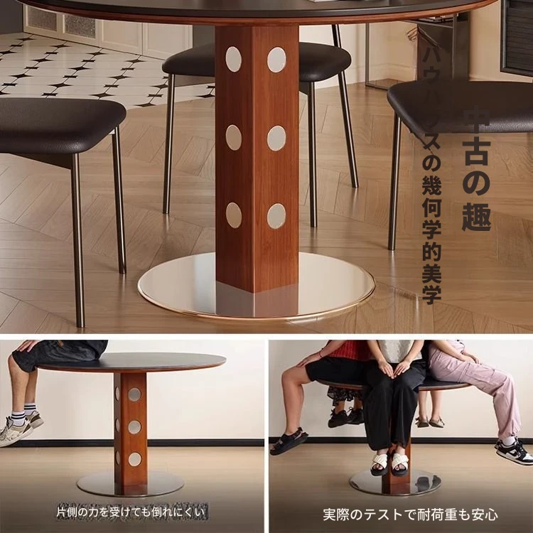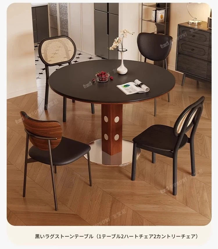 中古風の無垢材ロックテーブル&チェアセット4人用、モダンミニマリストデザイン、バウハウススタイル、コンパクトな家族用ダイニングテーブル。おしゃれで機能的な小型住宅に最適!