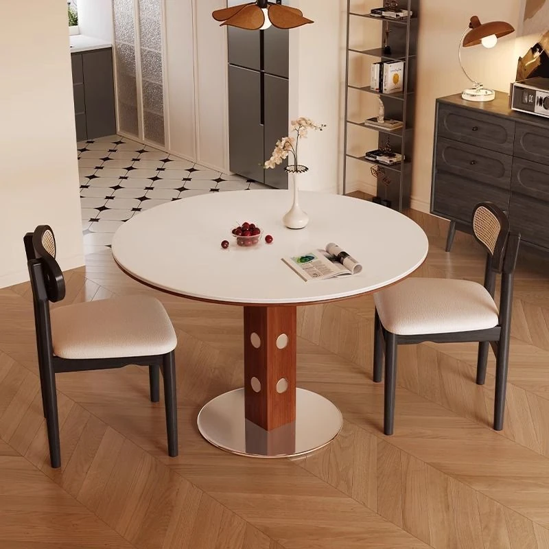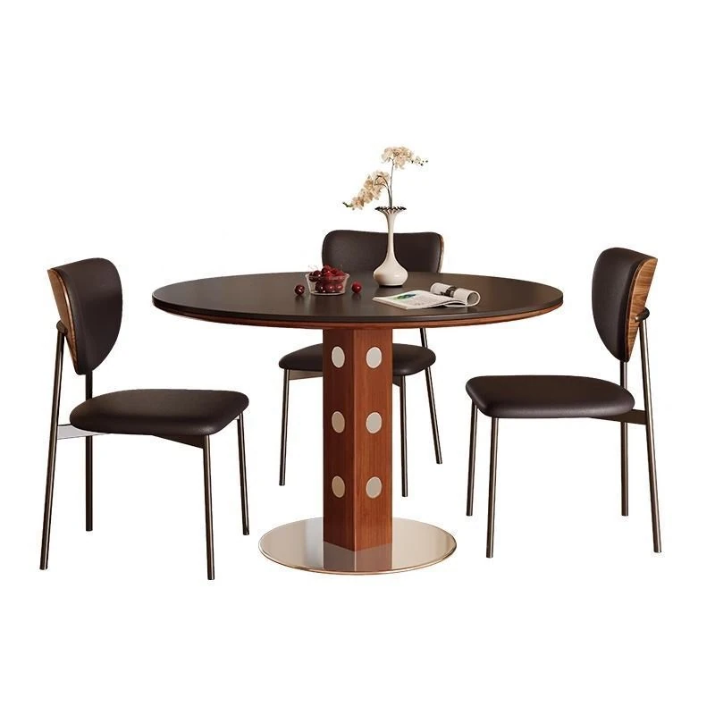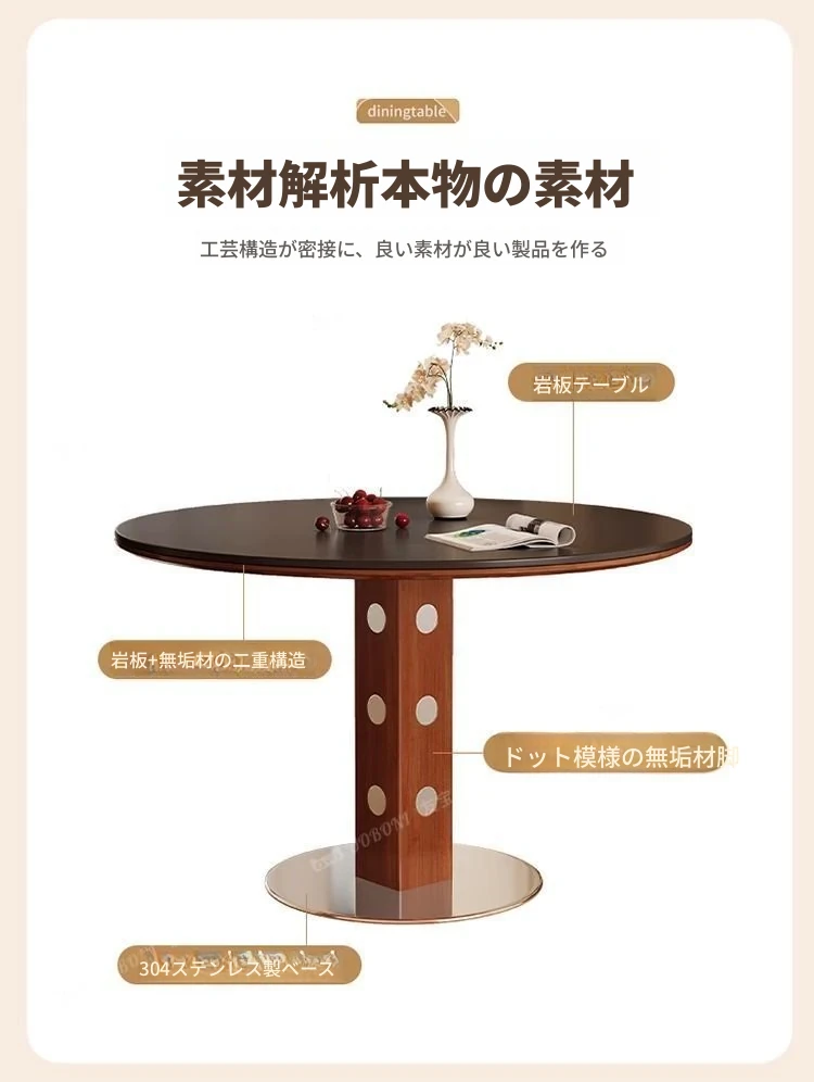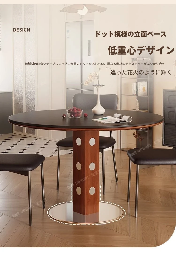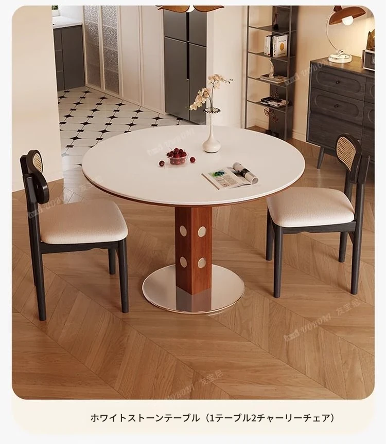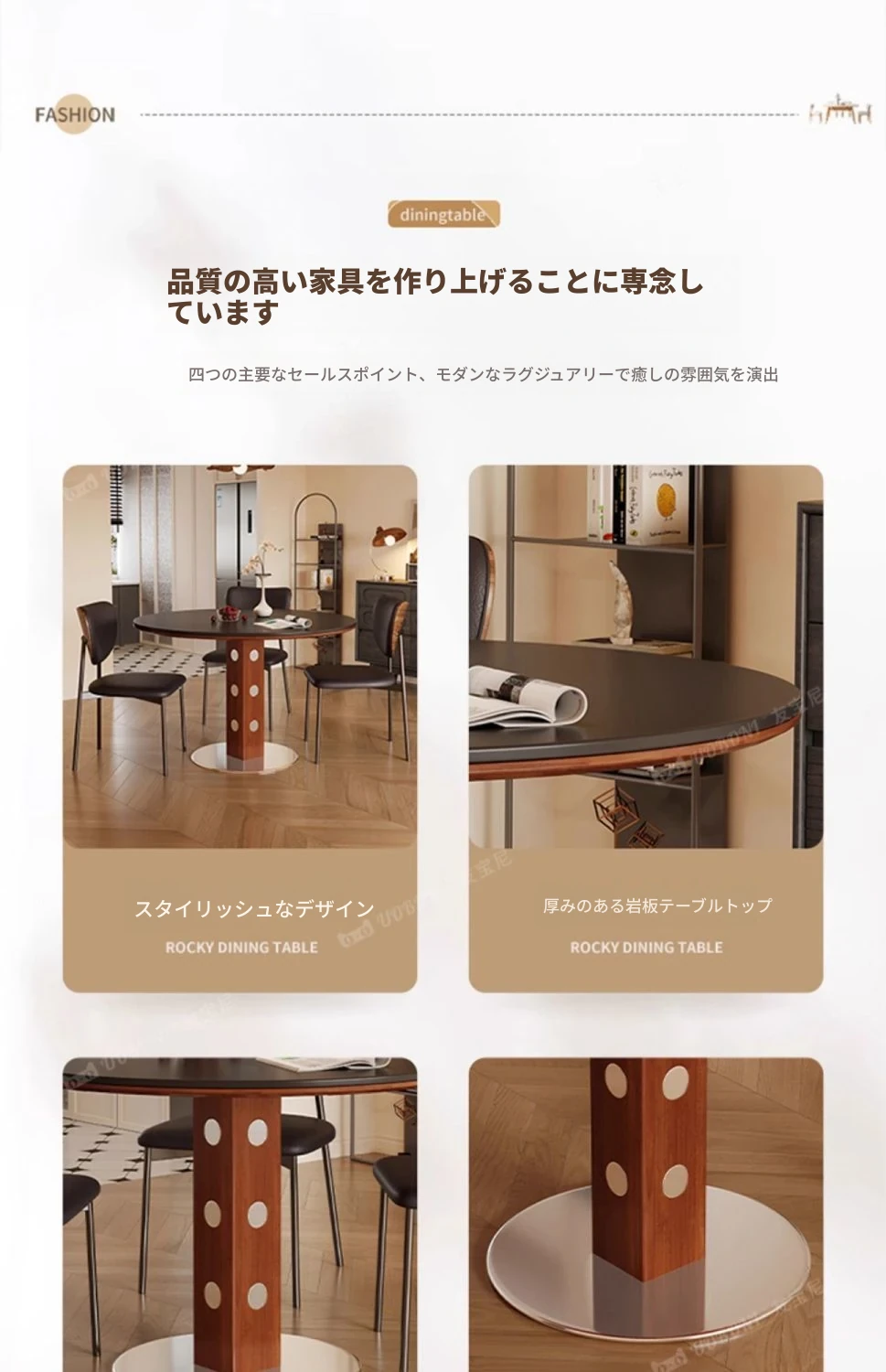 中古風の無垢材ロックテーブル&チェアセット4人用、モダンミニマリストデザイン、バウハウススタイル、コンパクトな家族用ダイニングテーブル。おしゃれで機能的な小型住宅に最適!