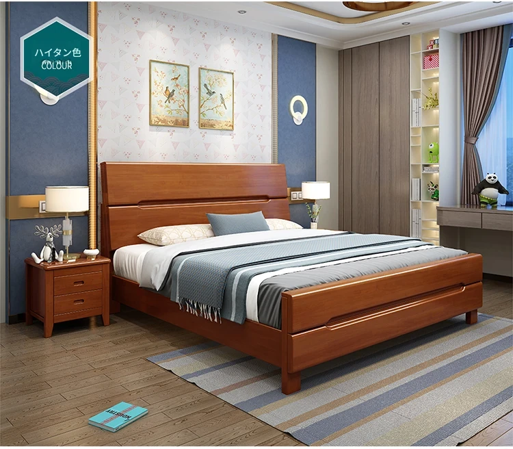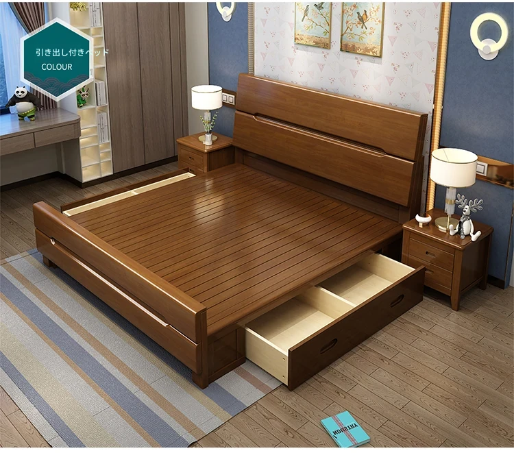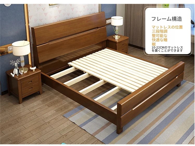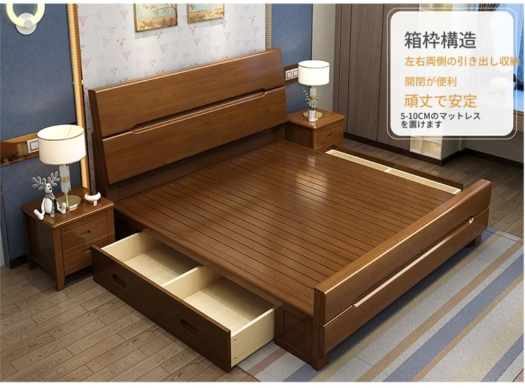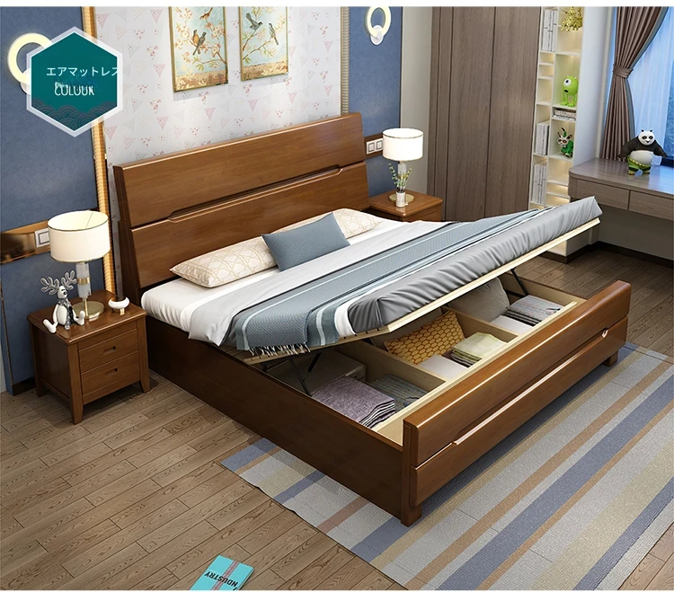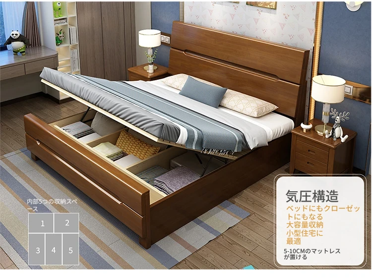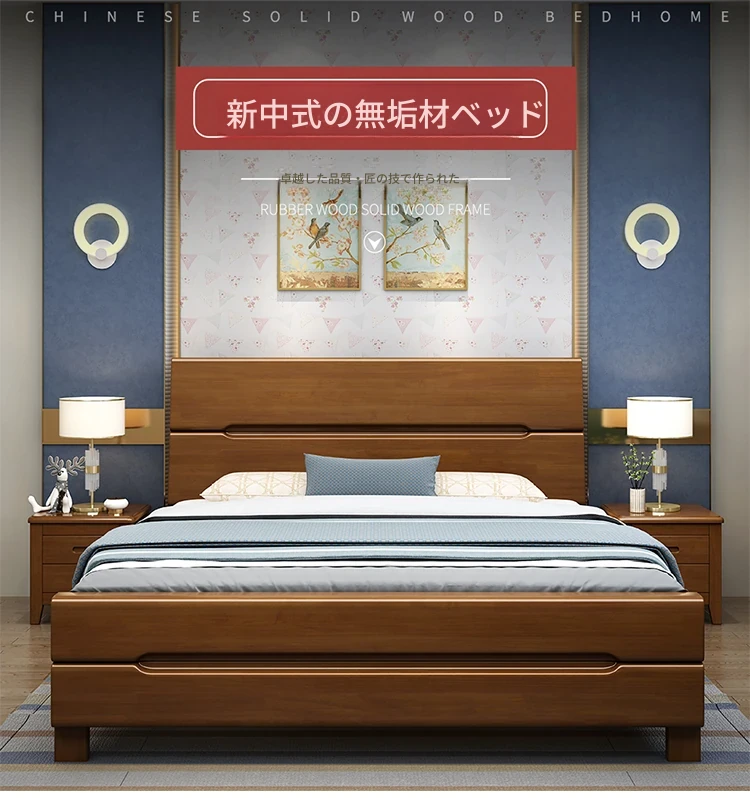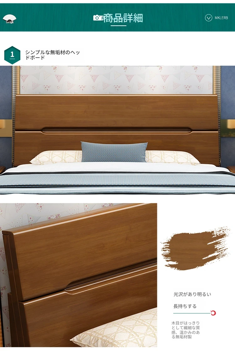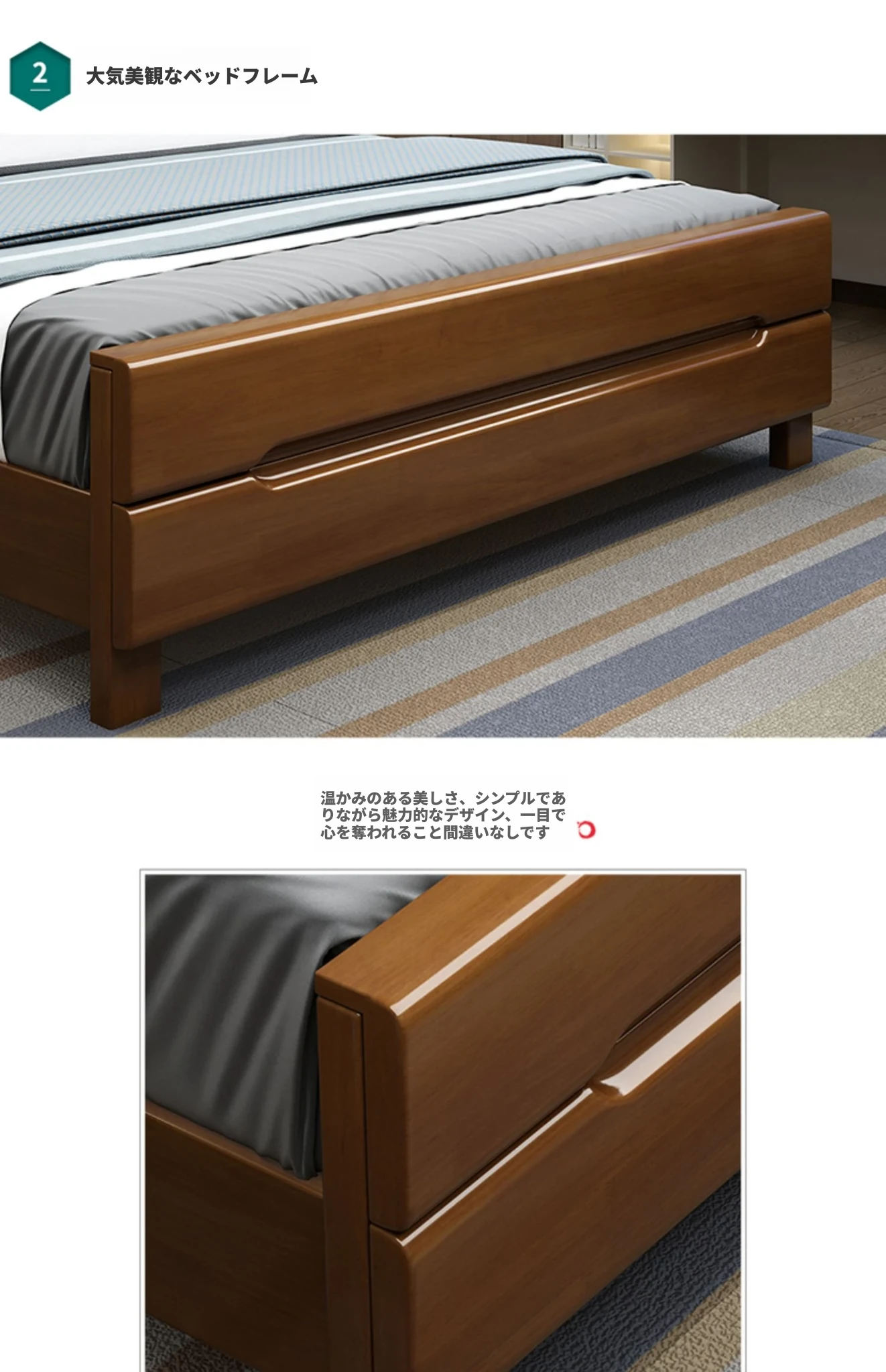モダンシンプルな無垢材ベッド 1.8m ダブルベッド 家庭用 1.5m 小型一人用収納ベッド 1.2m 子供用ベッド - スタイリッシュで機能的、限られたスペースを最大限に活用!
