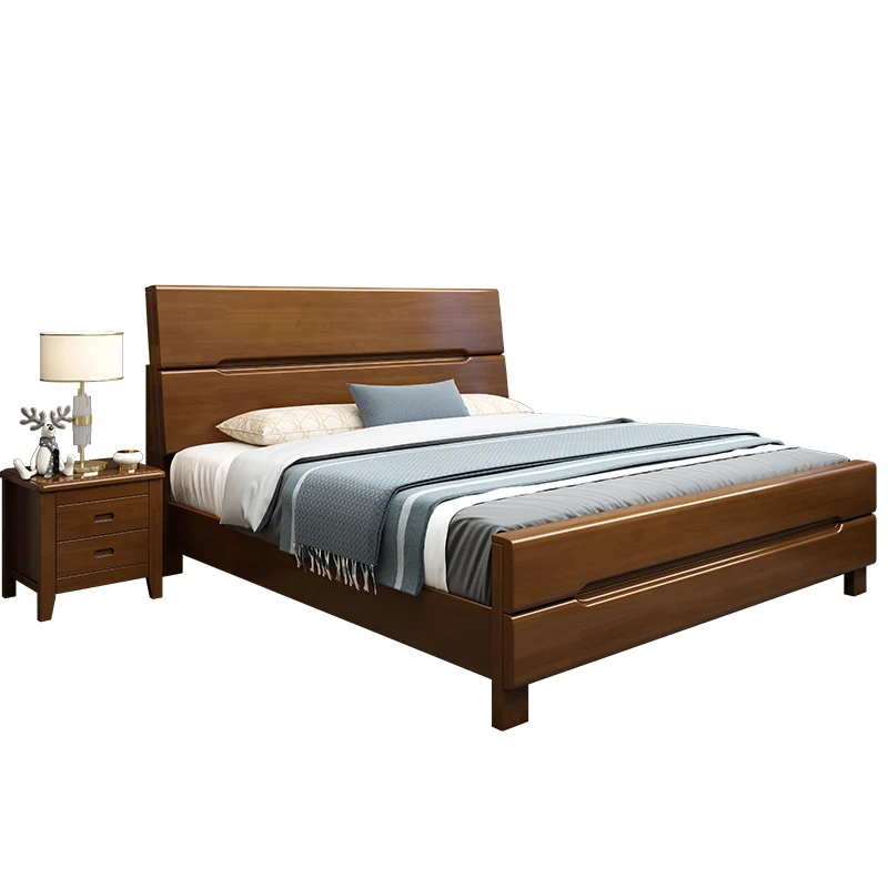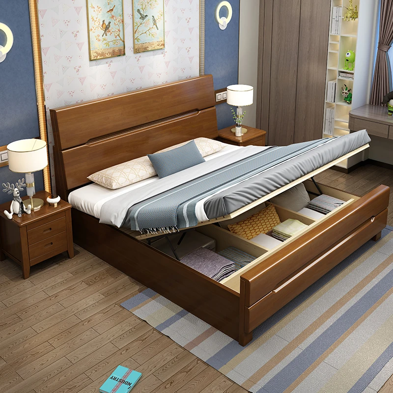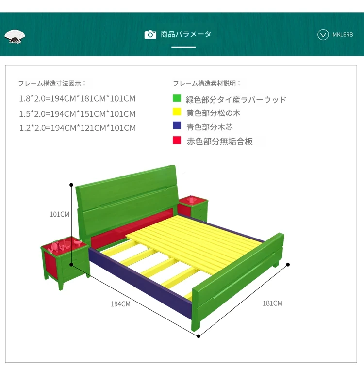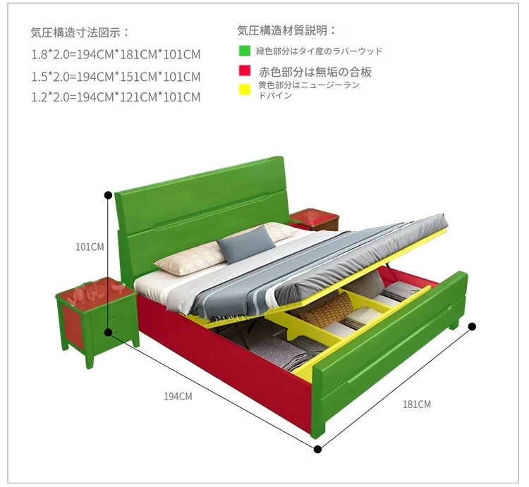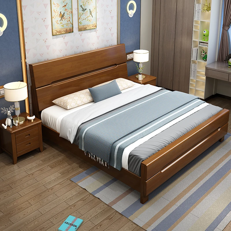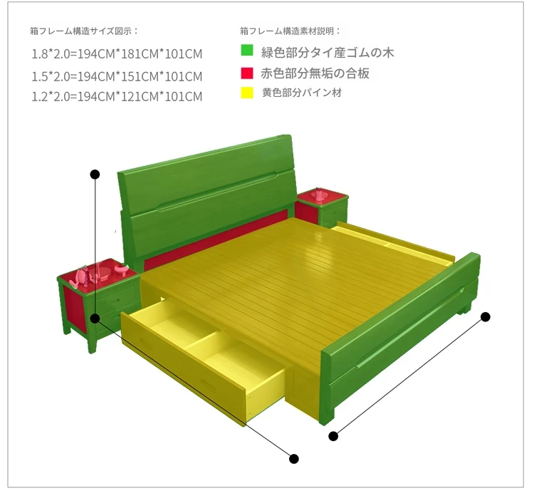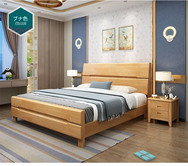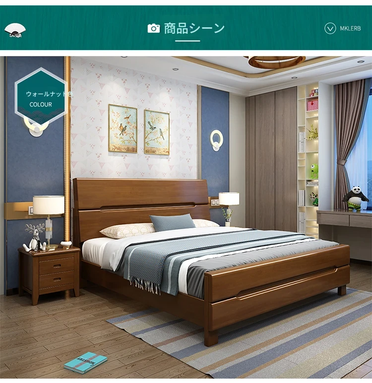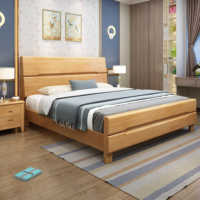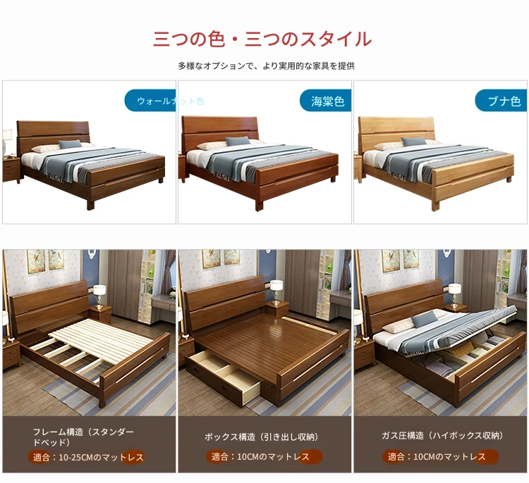 モダンシンプルな無垢材ベッド 1.8m ダブルベッド 家庭用 1.5m 小型一人用収納ベッド 1.2m 子供用ベッド - スタイリッシュで機能的、限られたスペースを最大限に活用!
