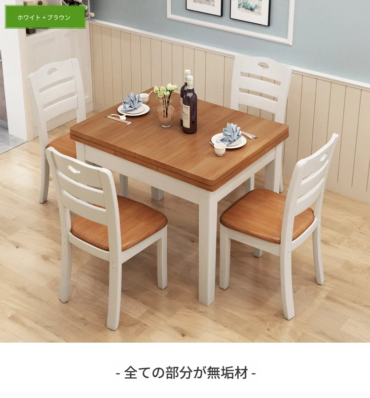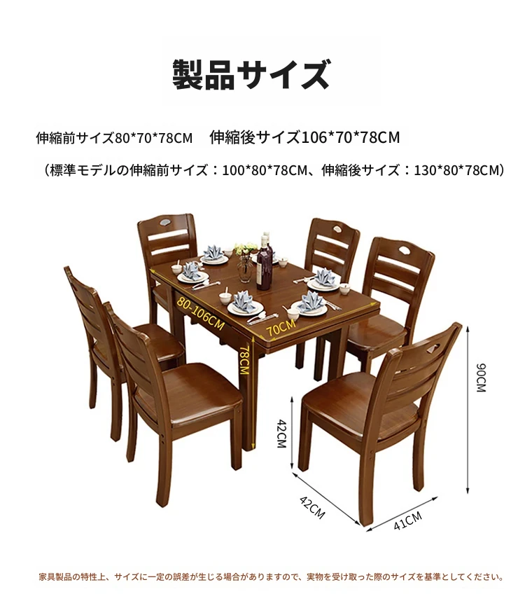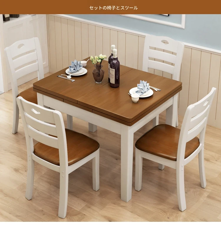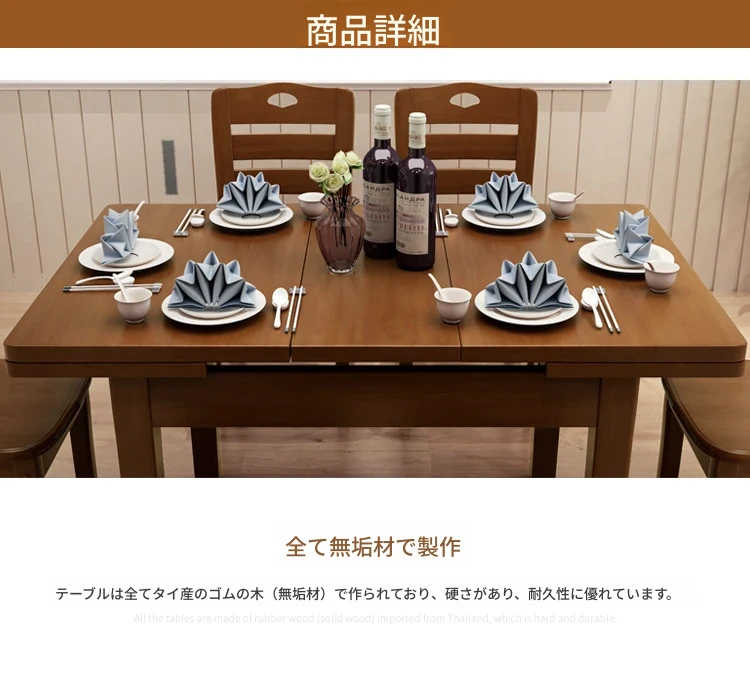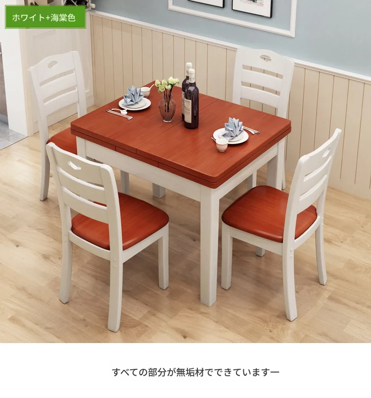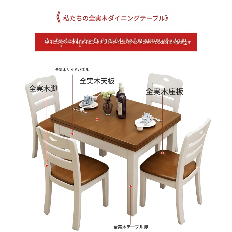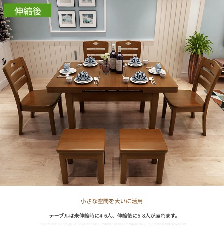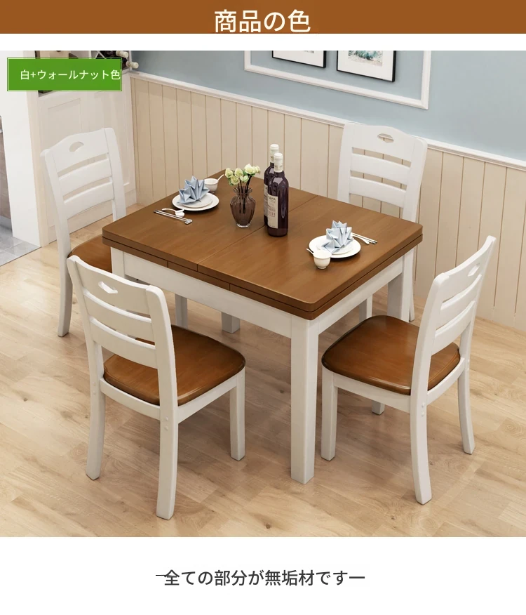 現代的シンプルな全木製ダイニングテーブル&チェアセット!伸縮可能な折りたたみ式で、小さなスペースにも最適。4人から6人まで対応、お食事をもっと楽しく!