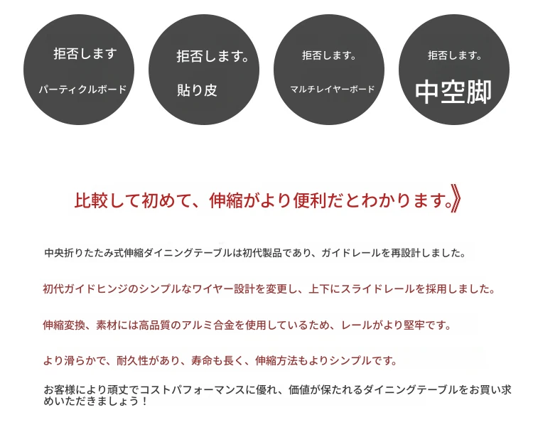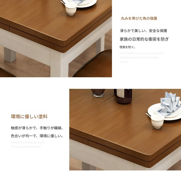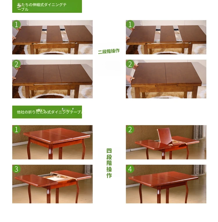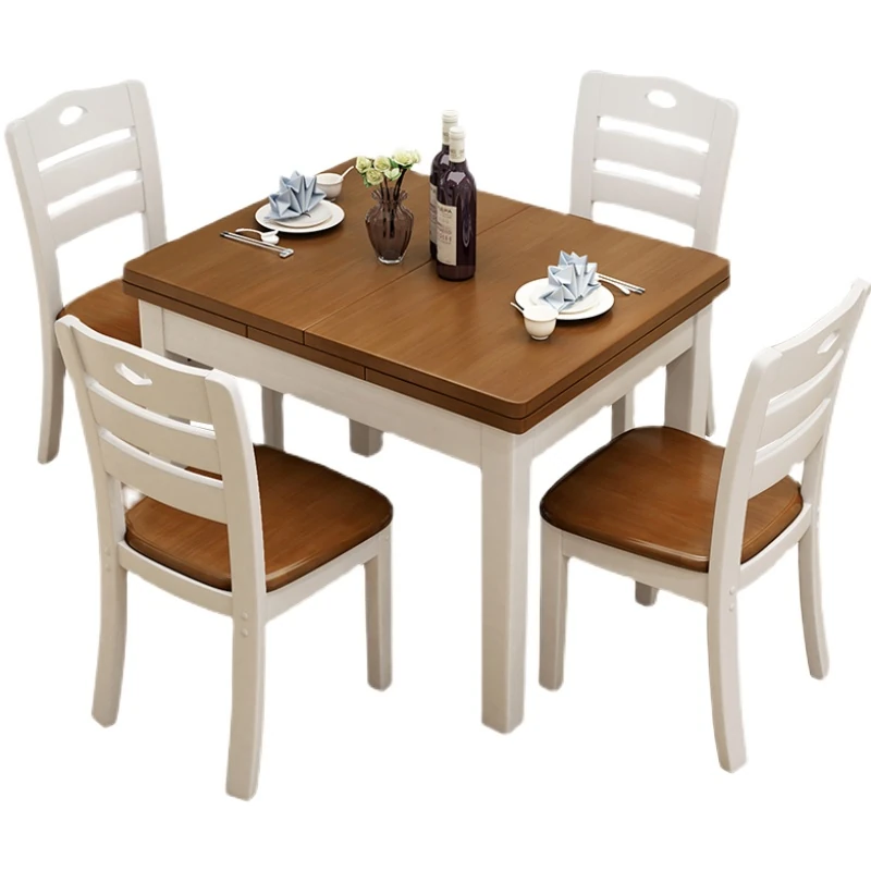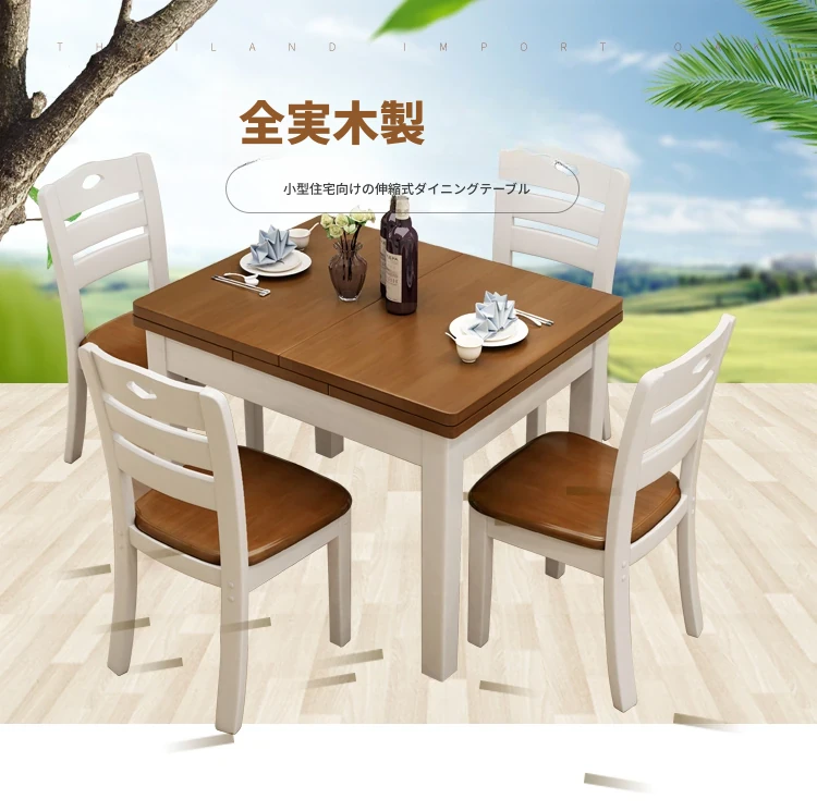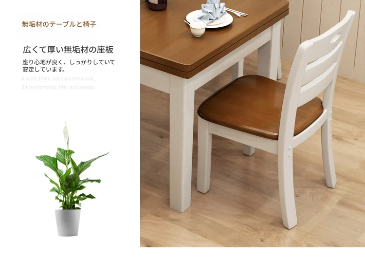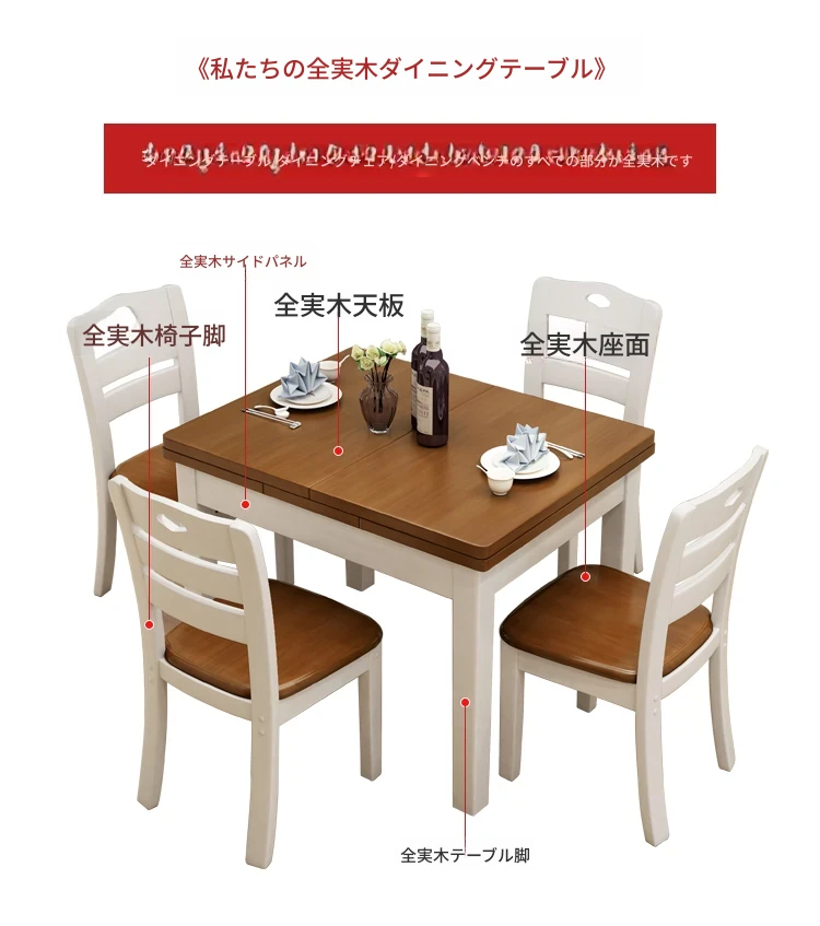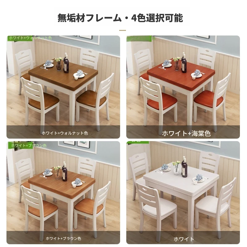 現代的シンプルな全木製ダイニングテーブル&チェアセット!伸縮可能な折りたたみ式で、小さなスペースにも最適。4人から6人まで対応、お食事をもっと楽しく!