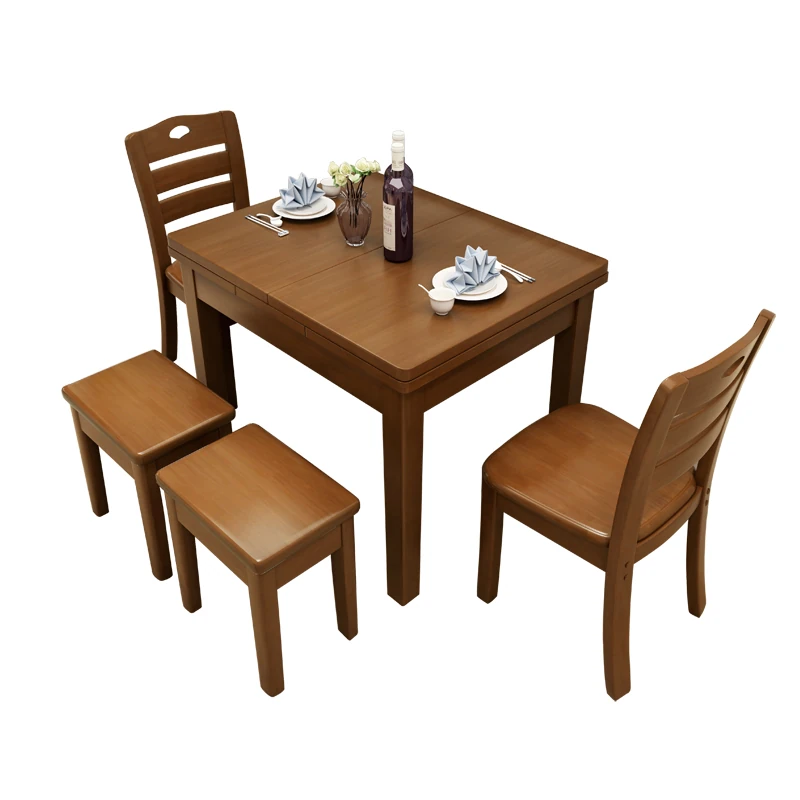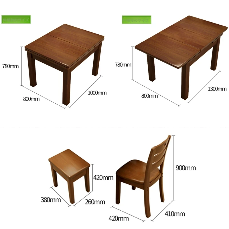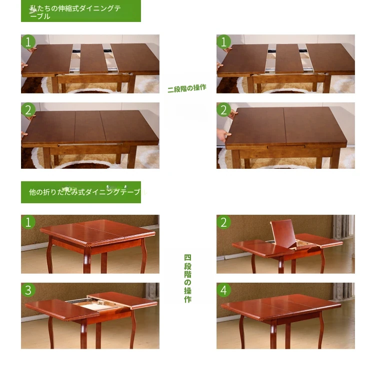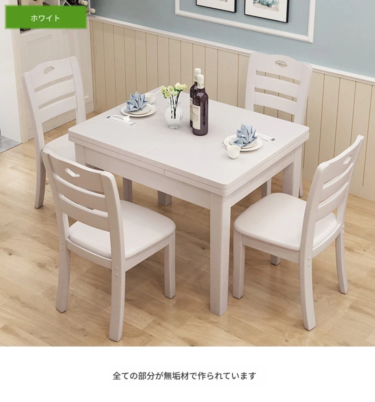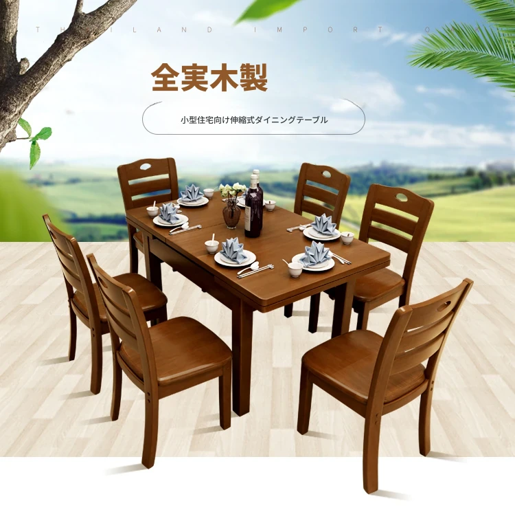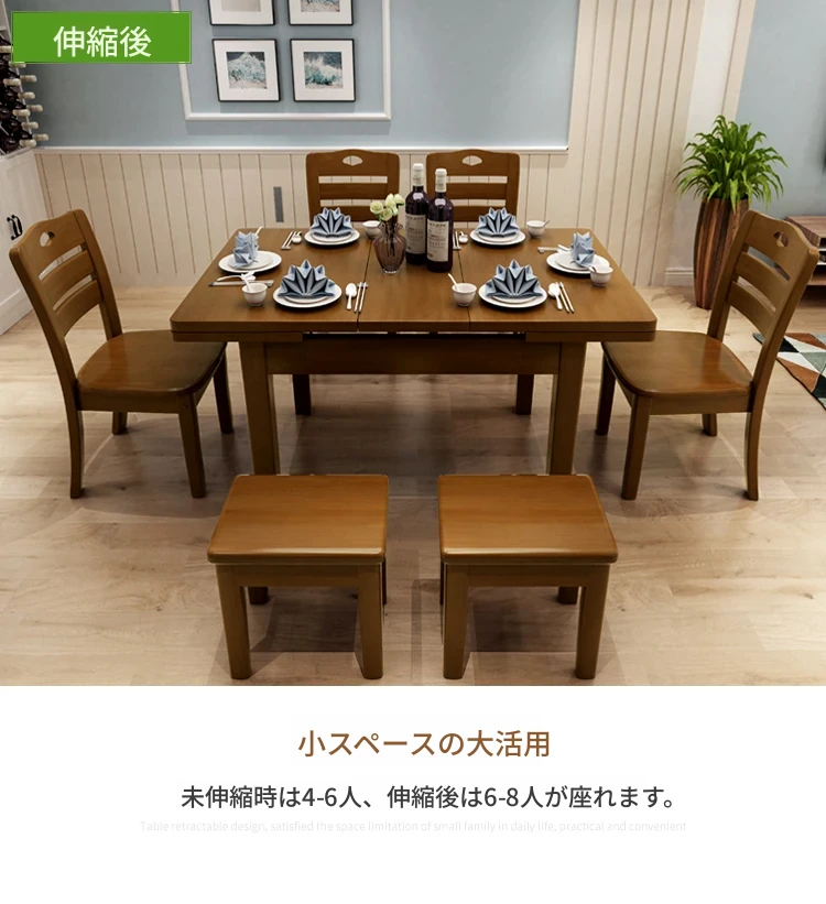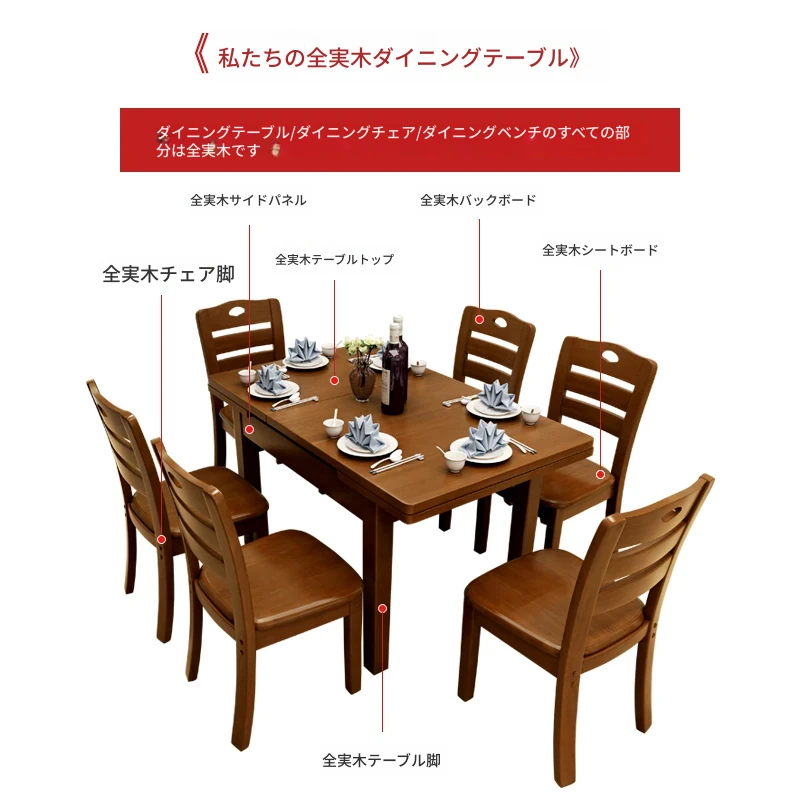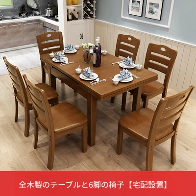 全実木製ダイニングテーブル&チェアセット|モダンでシンプルな6人用長方形|伸縮可能&折りたたみ式|4人用小型住宅にも最適な食卓!