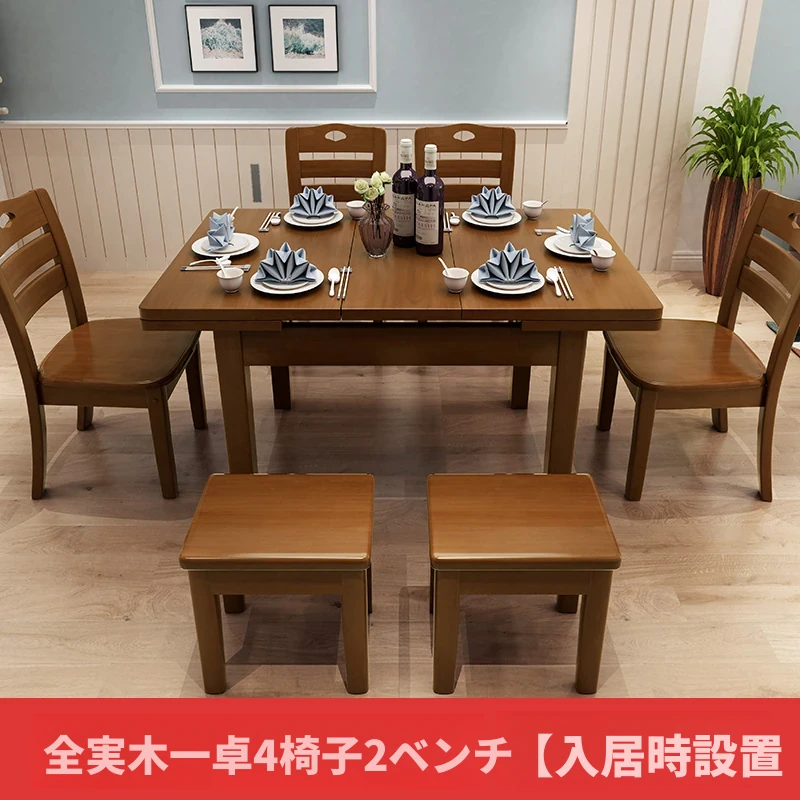 全実木一卓4椅子2凳【自分で設置】