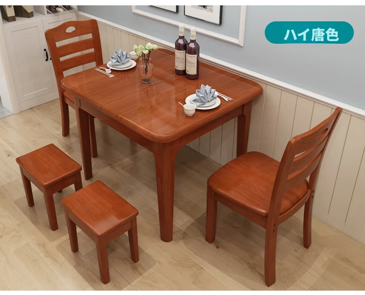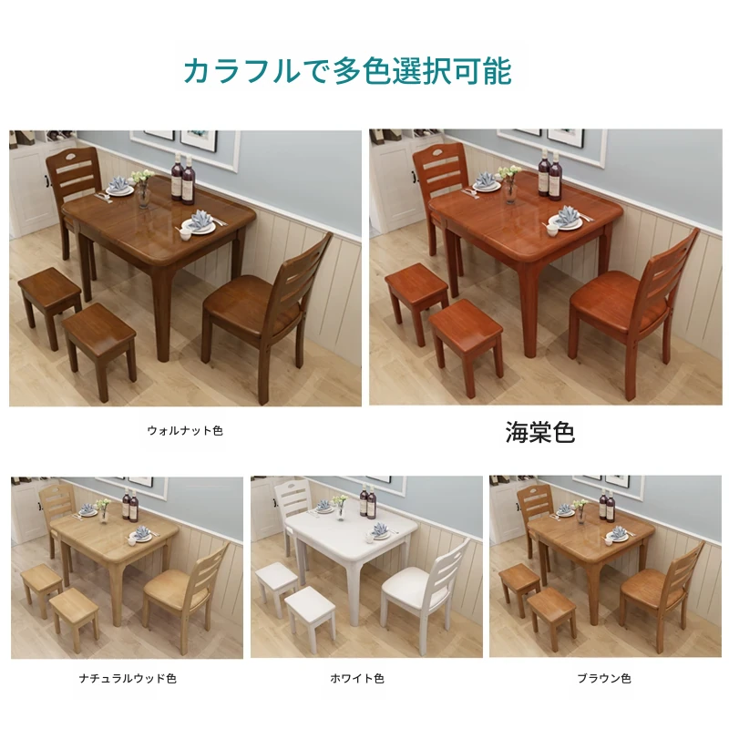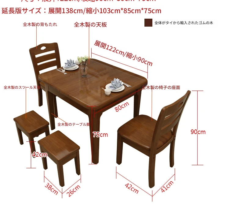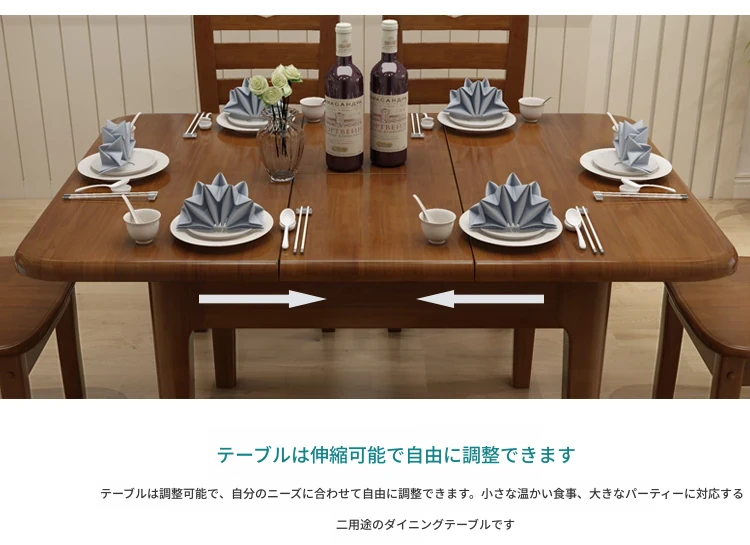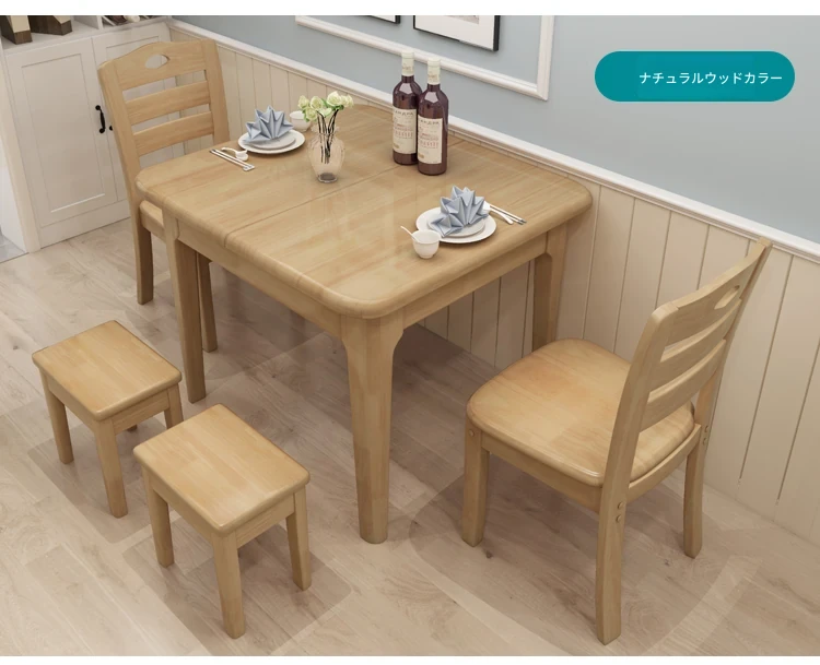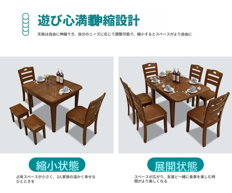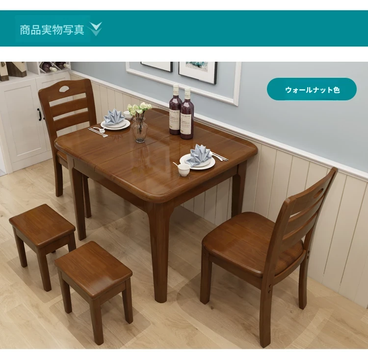 モダンミニマリスト全木製伸縮式ダイニングテーブル&チェアセット - コンパクトな小型住居に最適!折りたたみ式で便利、スタイリッシュな長方形デザインで食事の時間を特別に演出します。