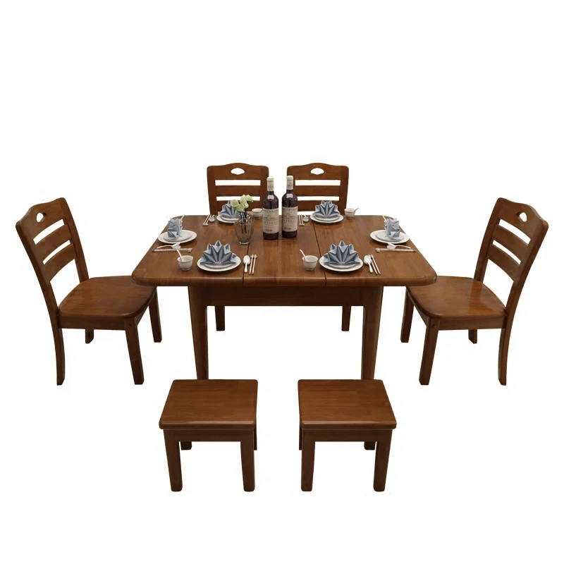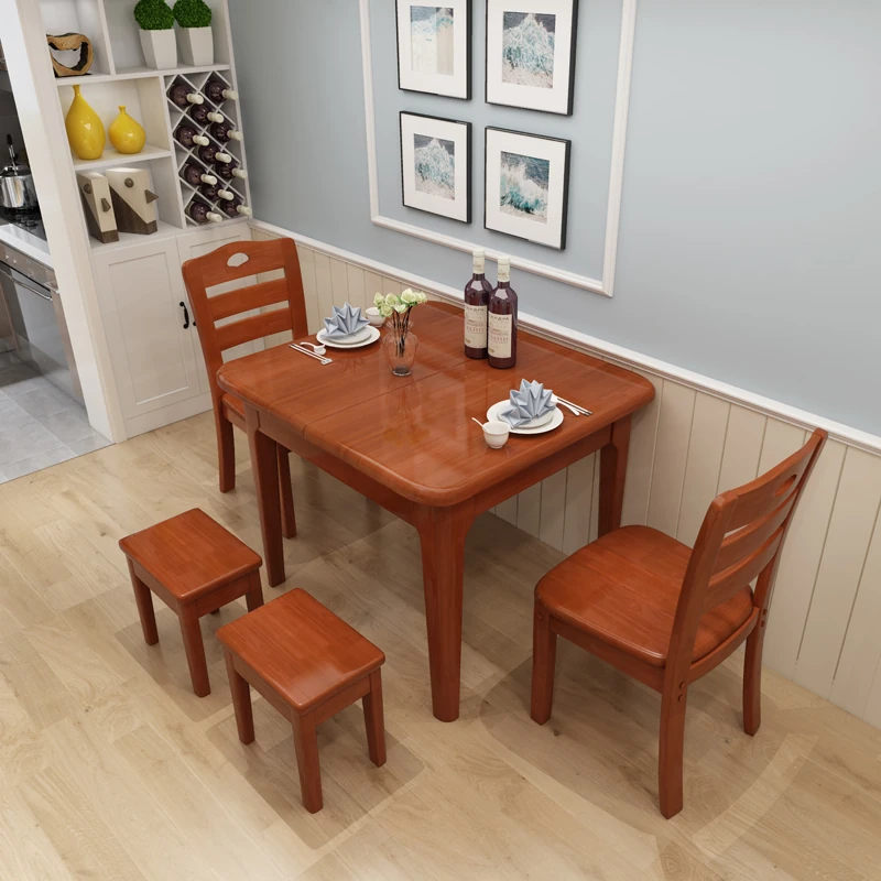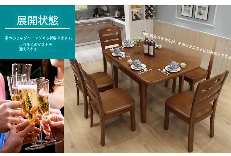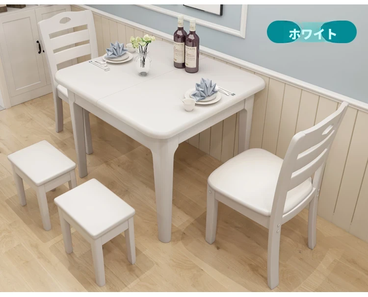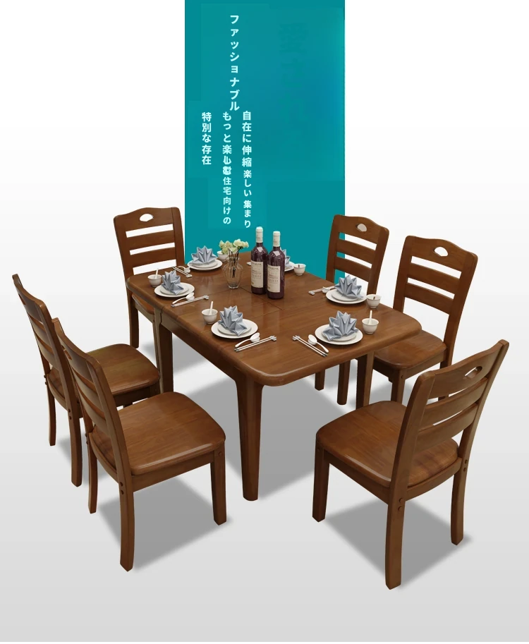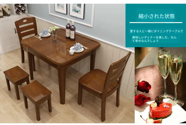 モダンミニマリスト全木製伸縮式ダイニングテーブル&チェアセット - コンパクトな小型住居に最適!折りたたみ式で便利、スタイリッシュな長方形デザインで食事の時間を特別に演出します。
