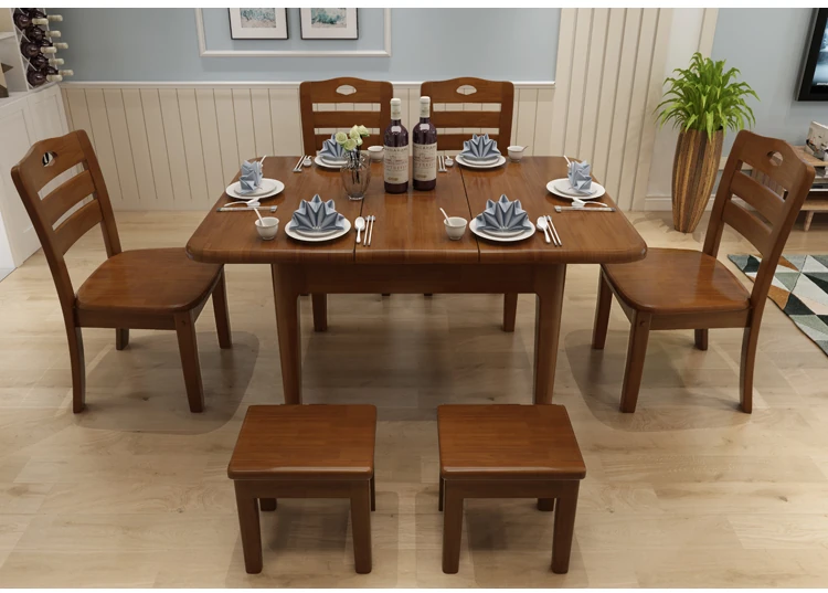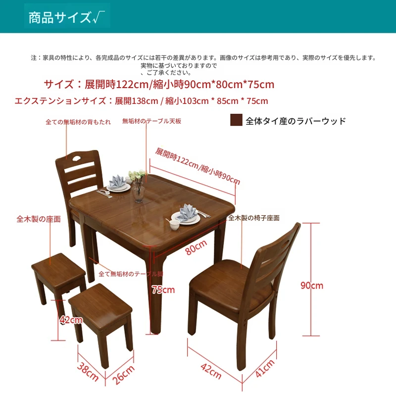 全無垢材のテーブル1台と椅子4脚、スツール2脚【自分で設置】