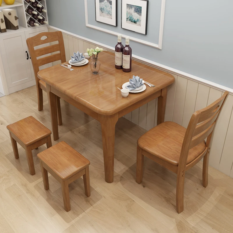 全無垢材のテーブル1台と椅子4脚、スツール2脚【入居時設置】