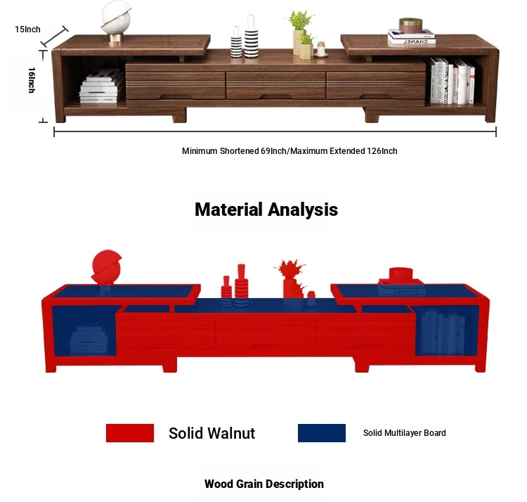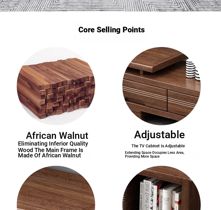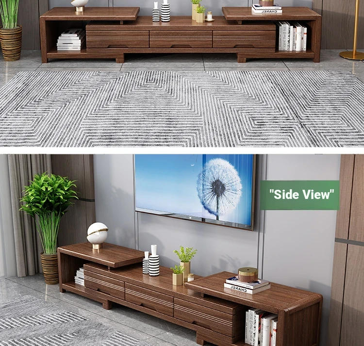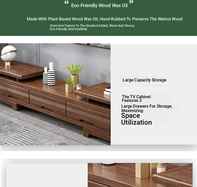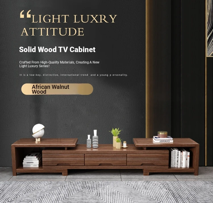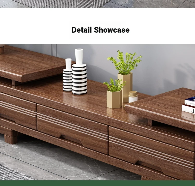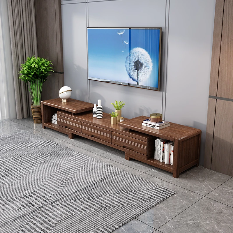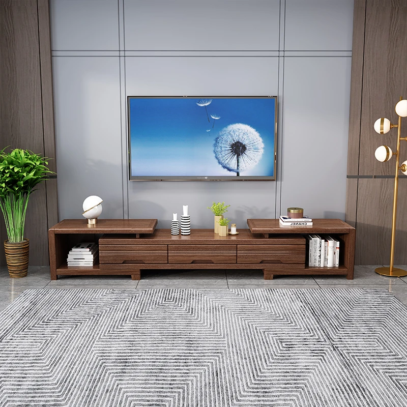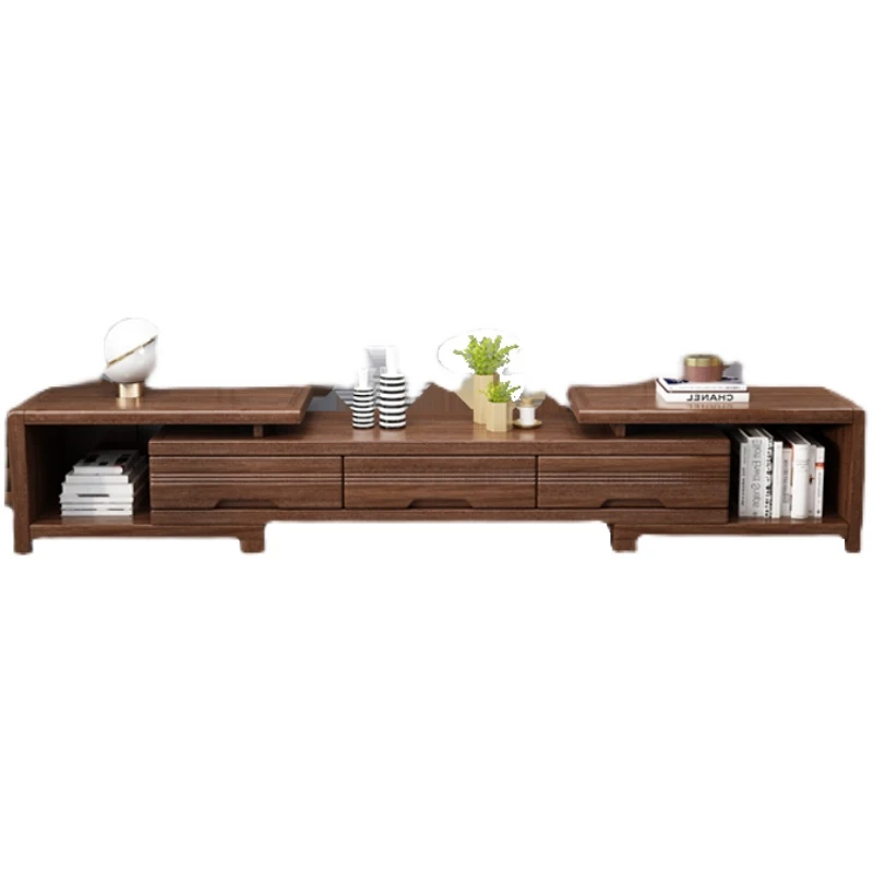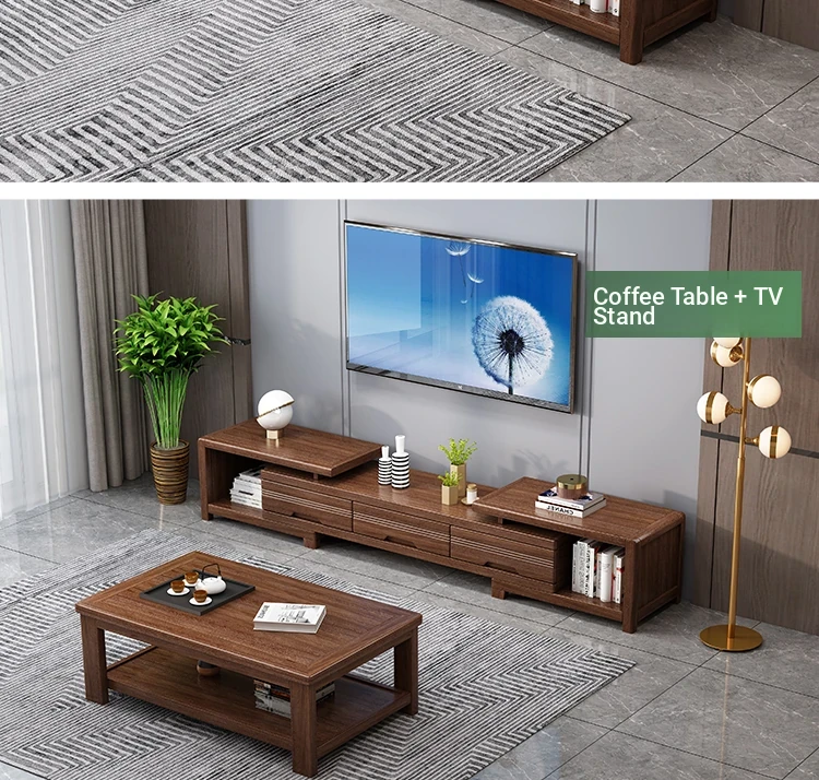 Modern Minimalist Solid Wood Expandable TV Stand and Coffee Table Set - Stylish Storage Solutions for Small Living Rooms, Perfect for New Chinese Home Décor.