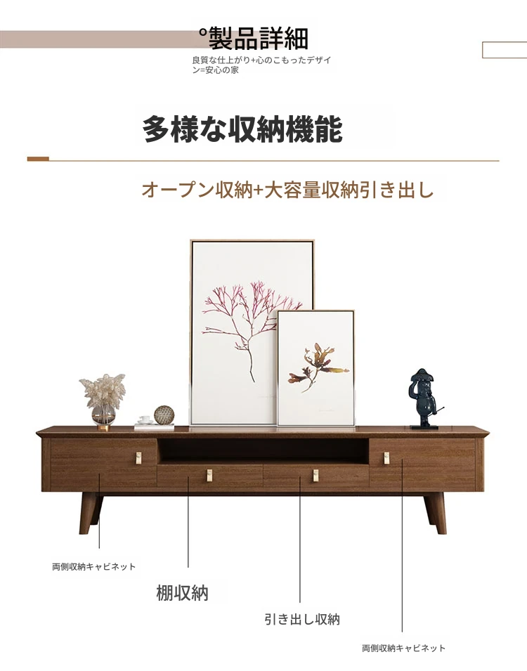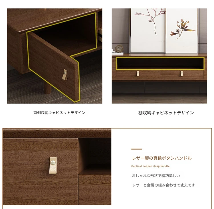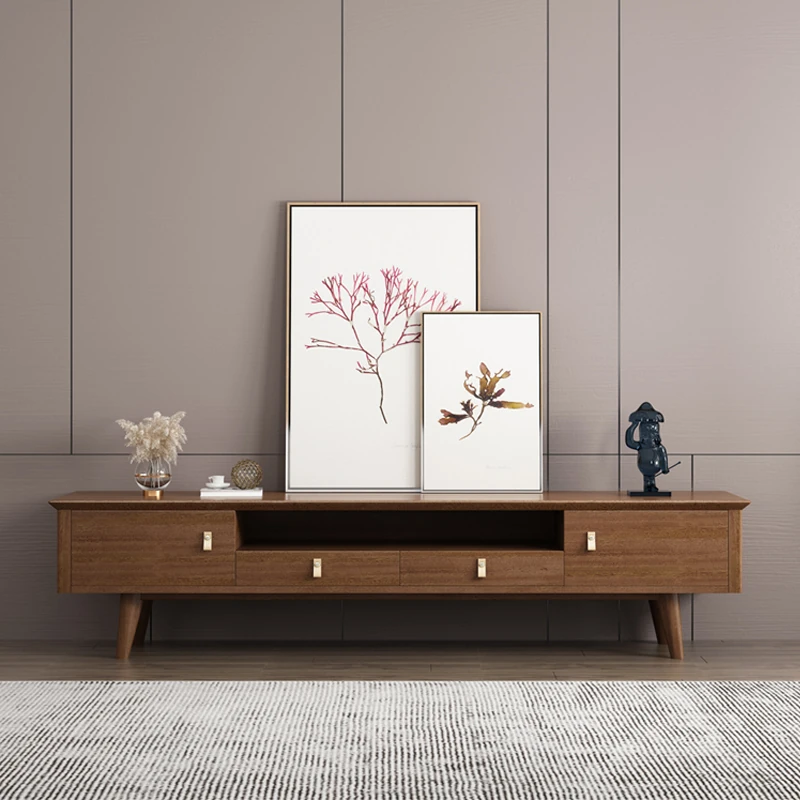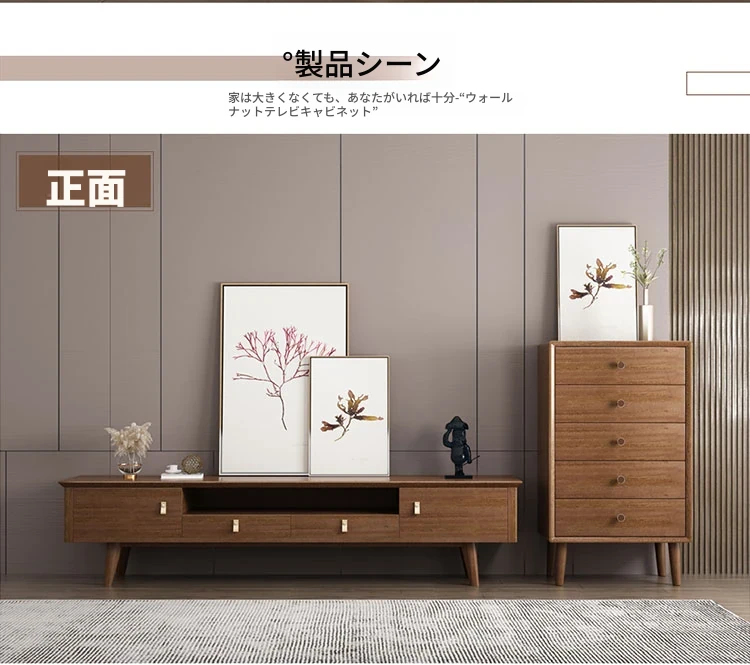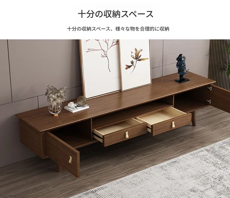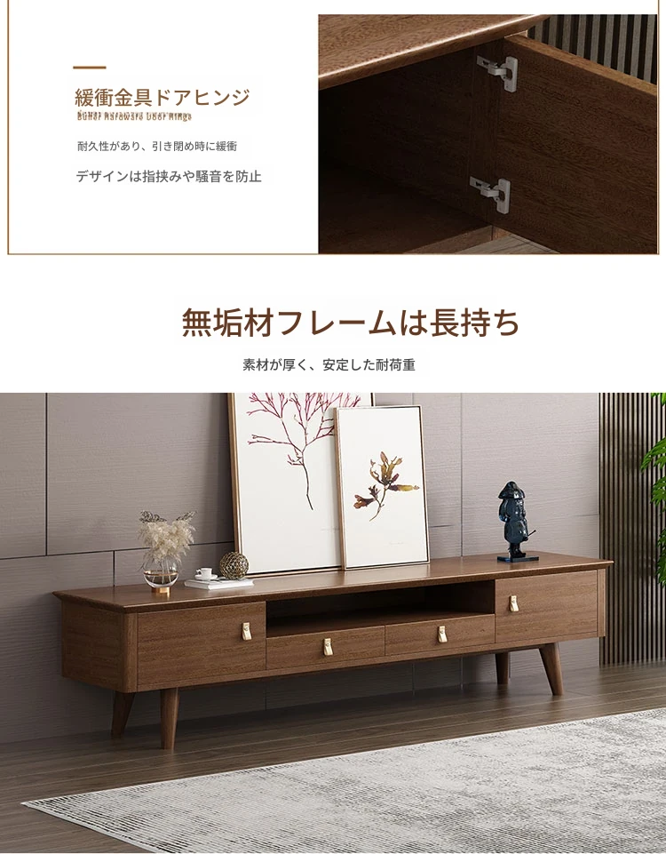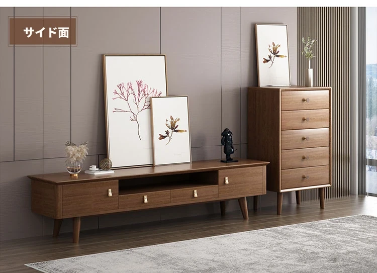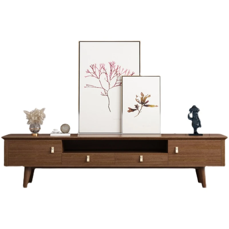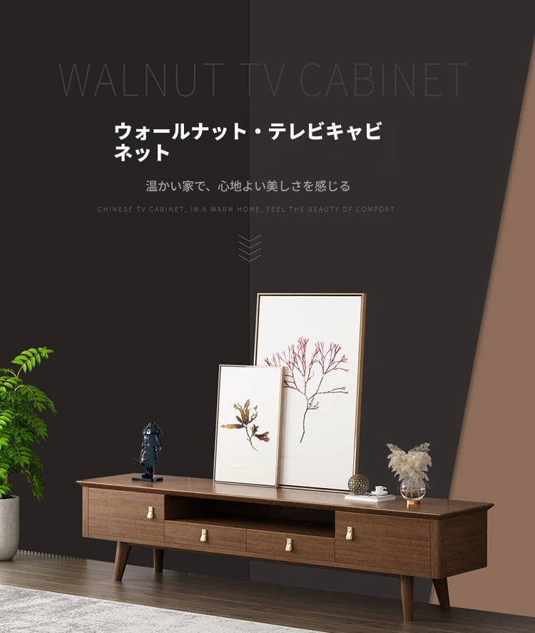 新中式デザインの1.2メートル実木テレビボード - モダンでシンプル、小スペースに最適な伸縮可能なローファニチャー、スタイリッシュなお部屋を演出する収納力抜群のアイテム!