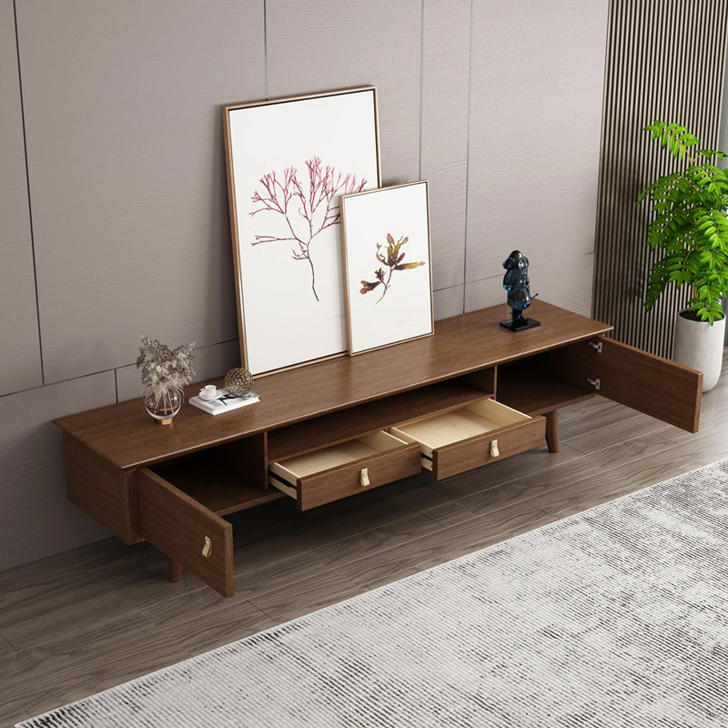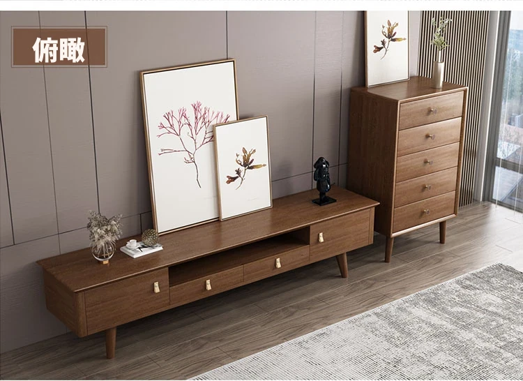 モダンミニマリストのウォールナット木製テレビキャビネットとコーヒーテーブルのセット - 新中式スタイル、小型リビングルーム向け、家庭用の伸縮可能なフロアキャビネット!おしゃれで機能的な空間を演出します。