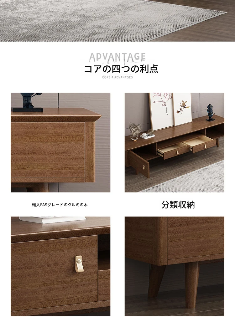 くるみ材のモダン中式テレビ台&コーヒーテーブルセット!多機能で伸縮可能、リビングにぴったりの高低コンビネーション。スタイリッシュなデザインでお部屋を彩ります!