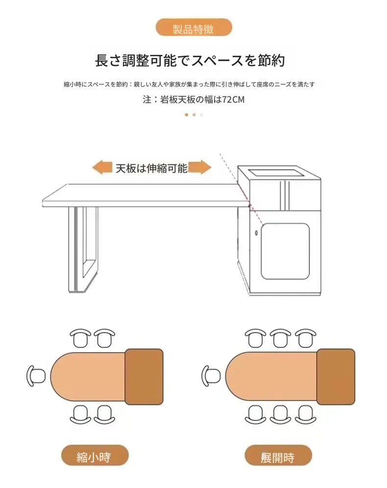 142-170cmアイランドテーブル+電気ケトル+6脚の椅子
