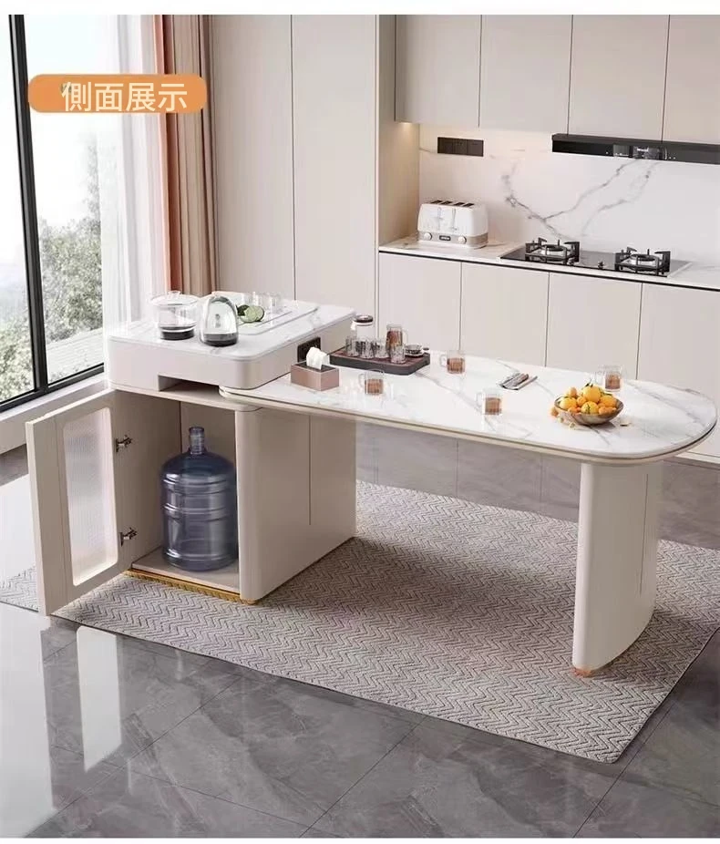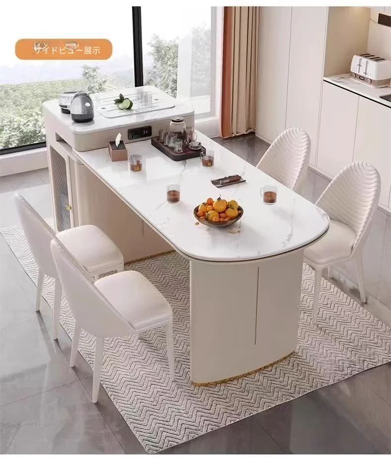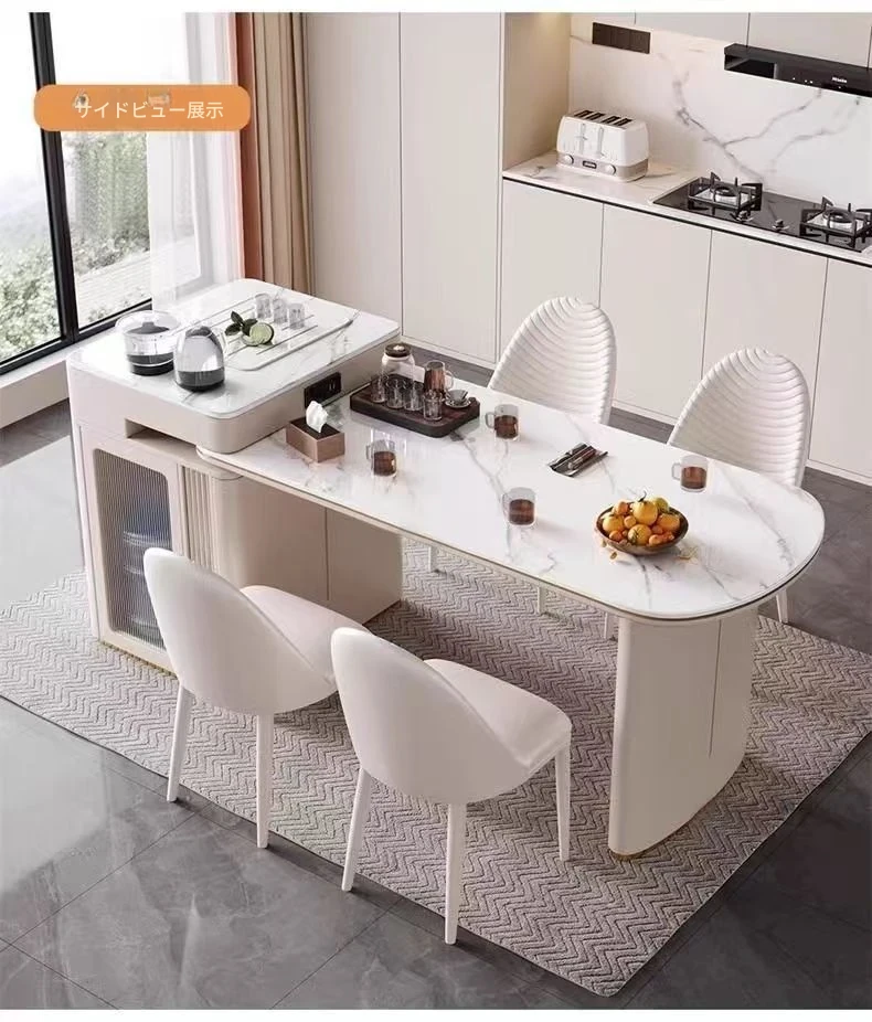 142-170cmアイランドテーブル+電気ケトル+トラックタップ+6脚の椅子