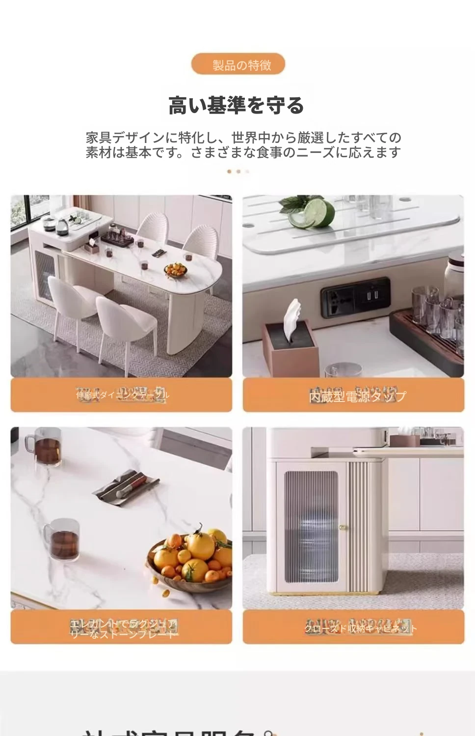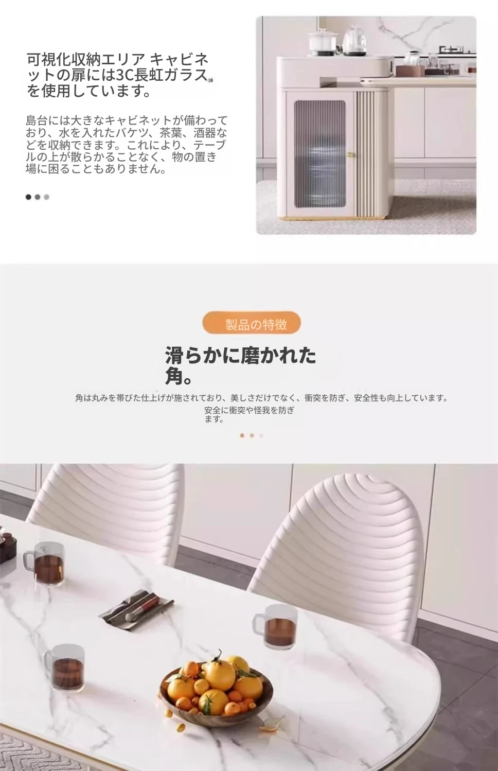 142-170cmアイランドテーブル+電気ケトル
