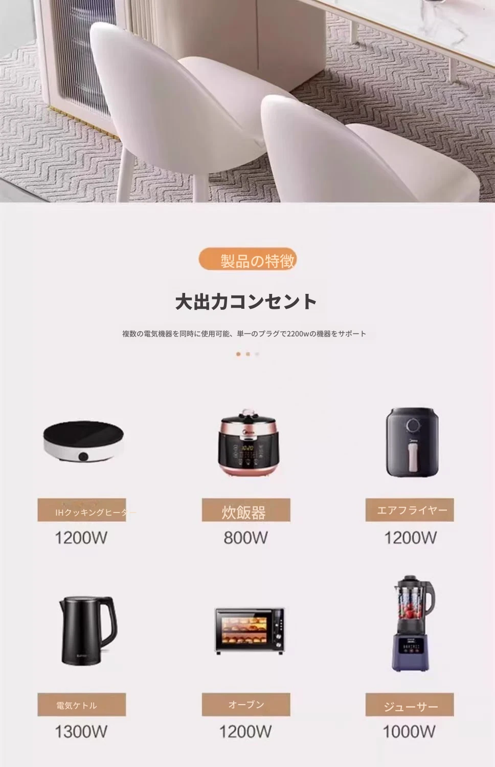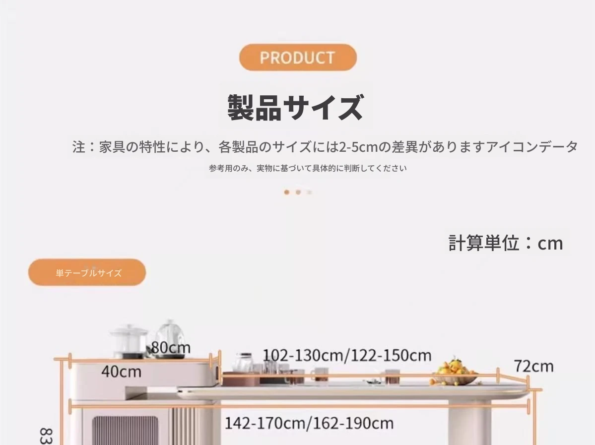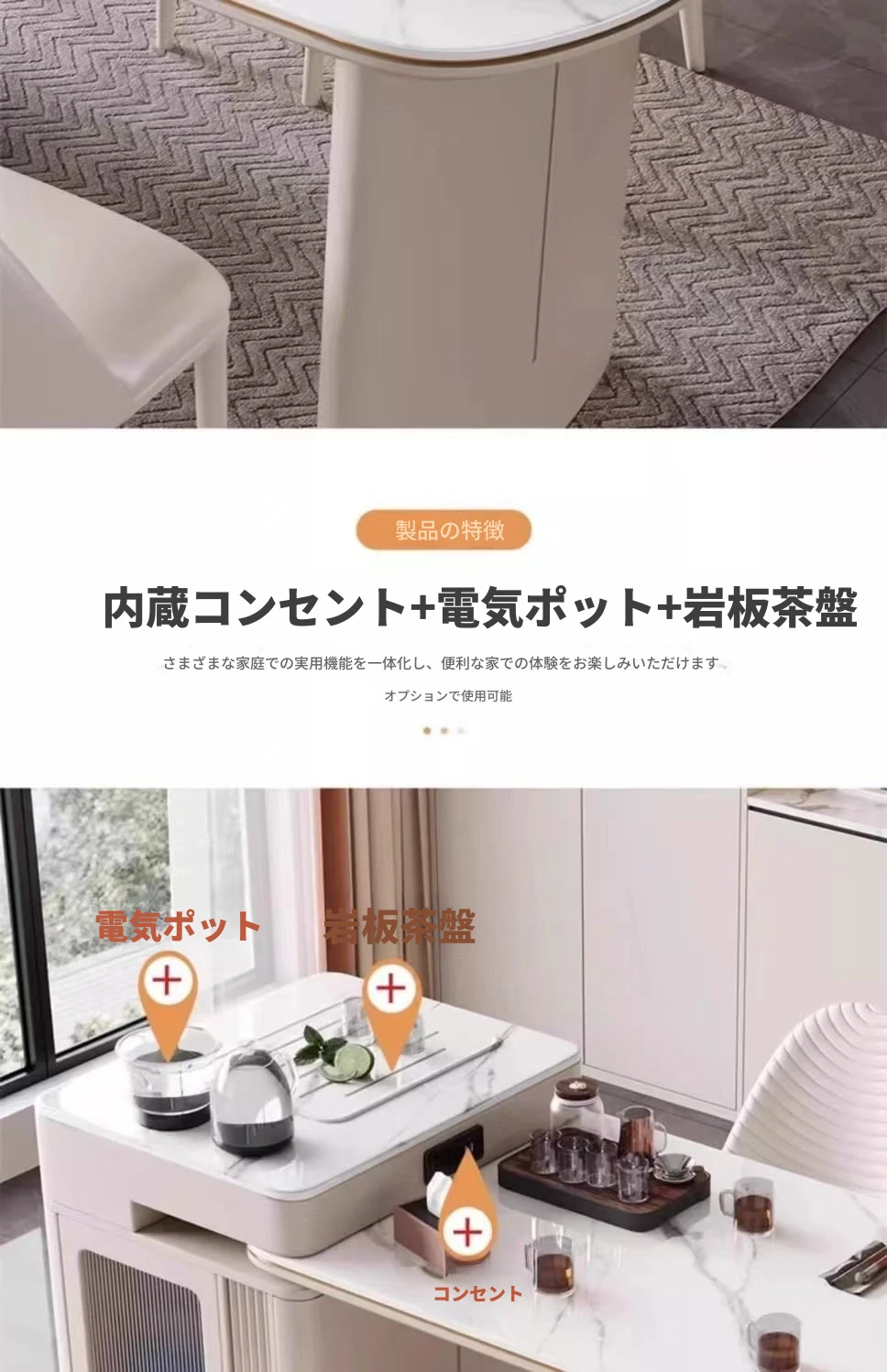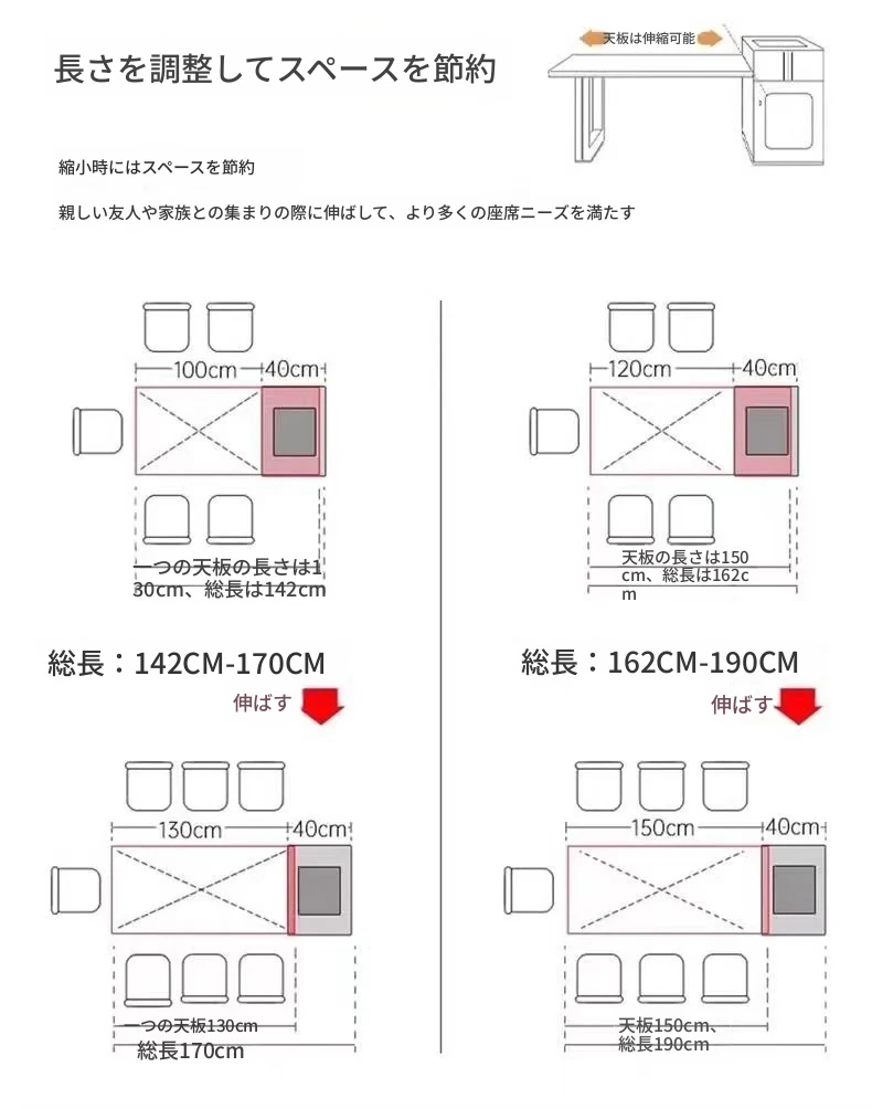 142-170cmアイランドテーブル+電気ケトル+トラックタップ