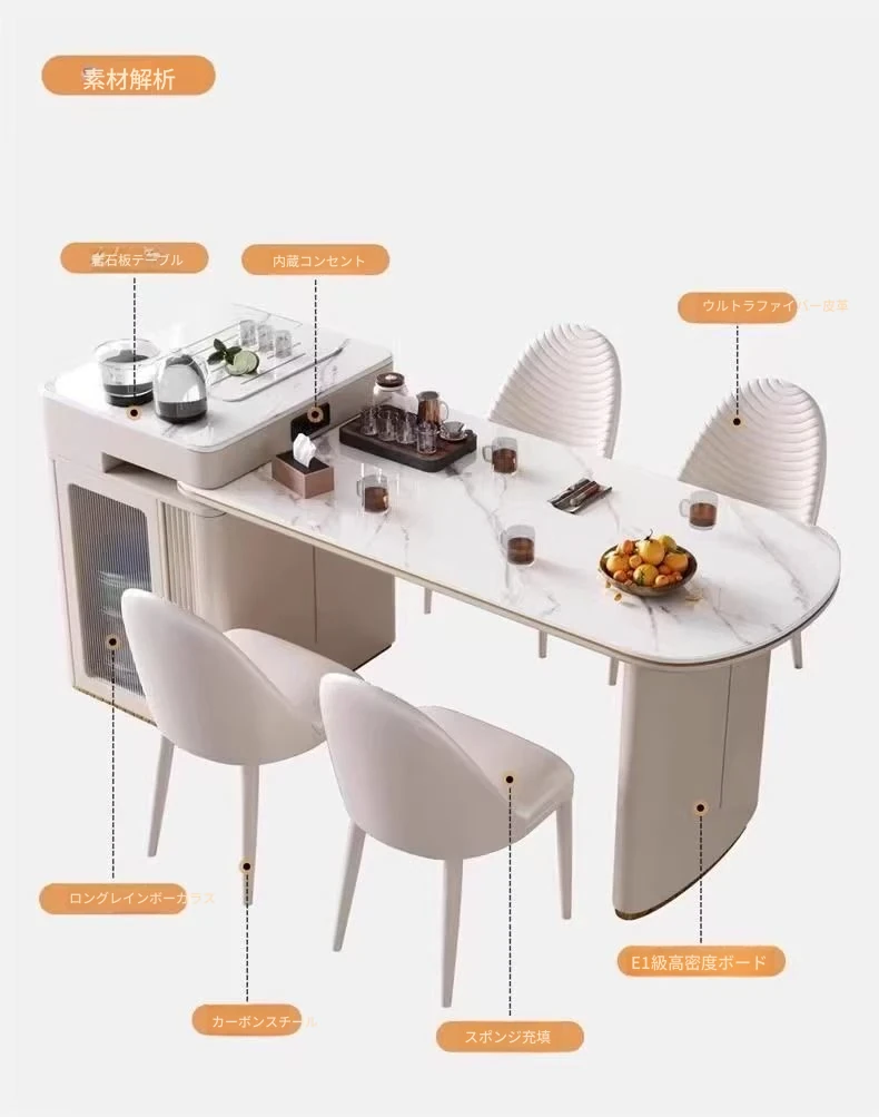 162-190cmアイランドテーブル+電気ケトル+6脚の椅子