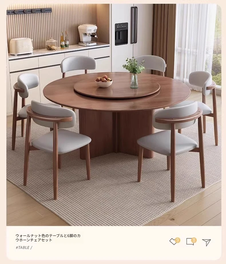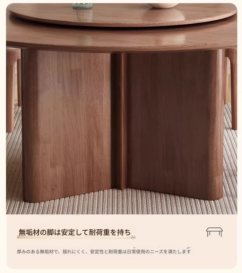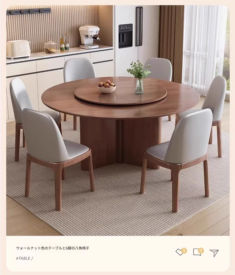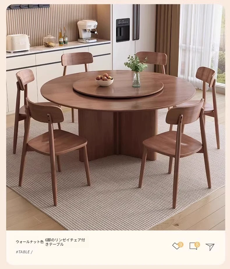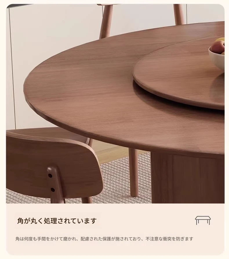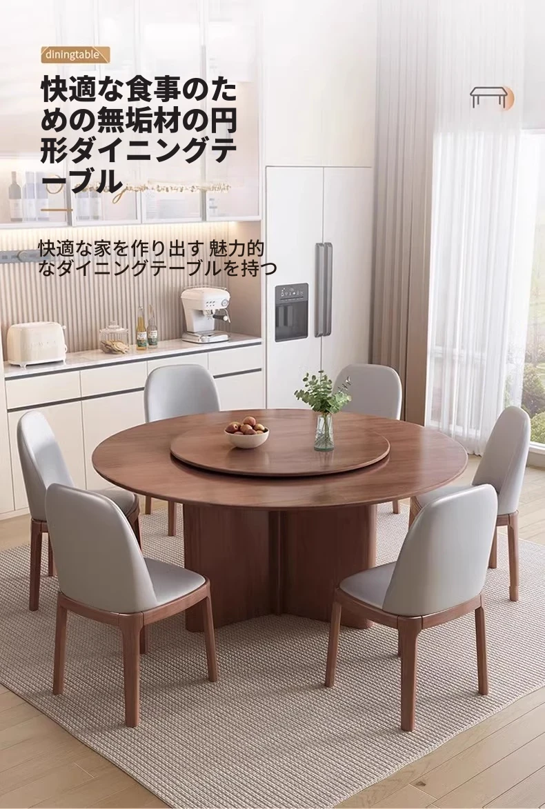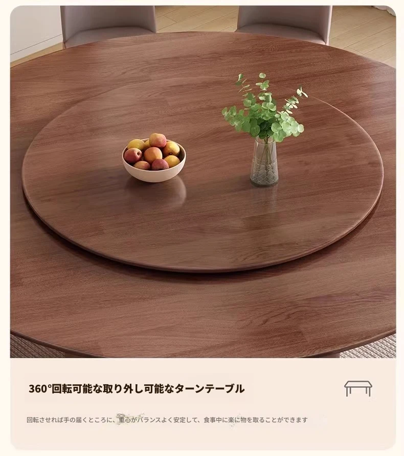 モダンでシンプルなデザインの無垢材ダイニングテーブル&チェアセット - 高級感溢れる回転式、狭いスペースにも最適な円形テーブル。新しいライフスタイルを提案します!