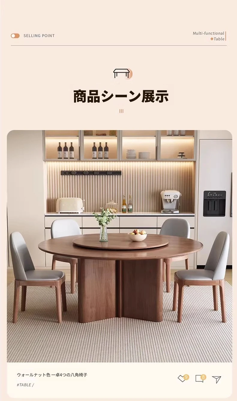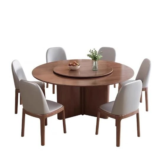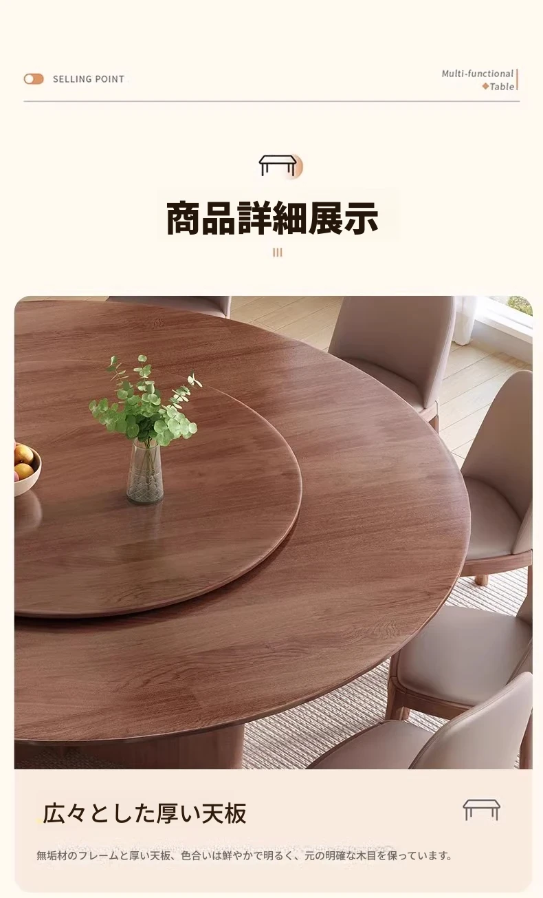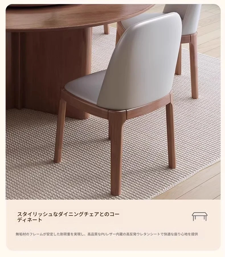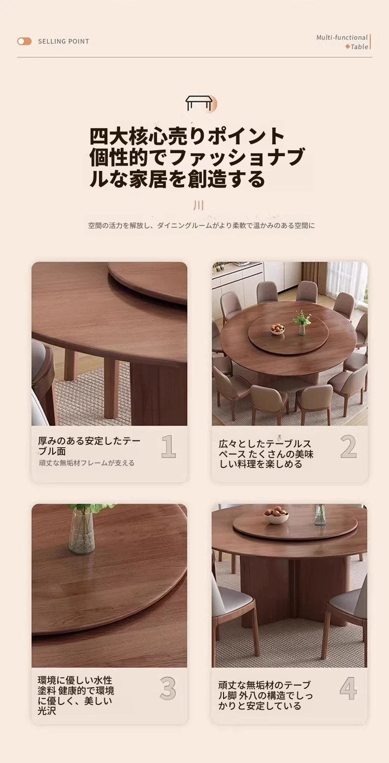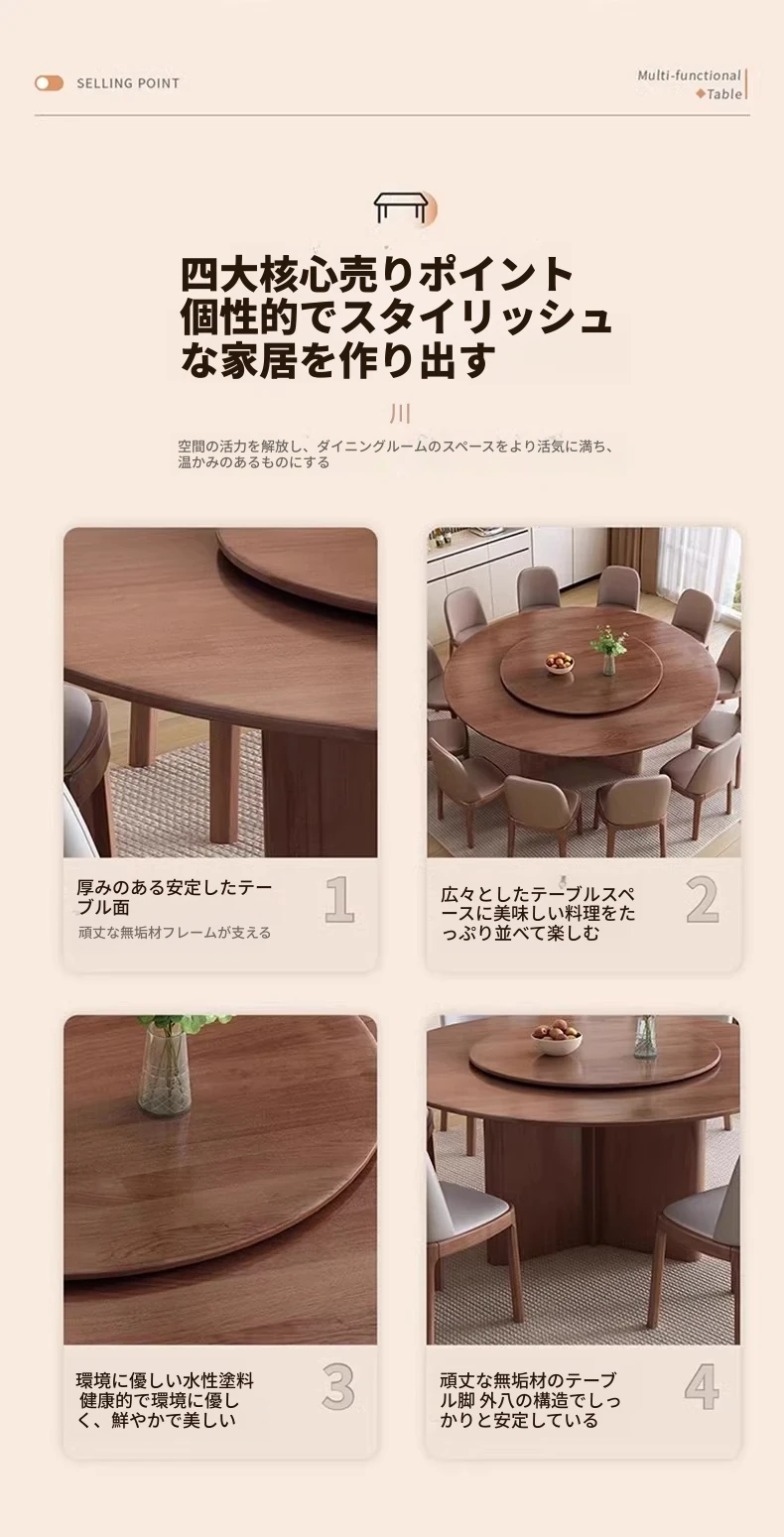 モダンでシンプルなデザインの無垢材ダイニングテーブル&チェアセット - 高級感溢れる回転式、狭いスペースにも最適な円形テーブル。新しいライフスタイルを提案します!