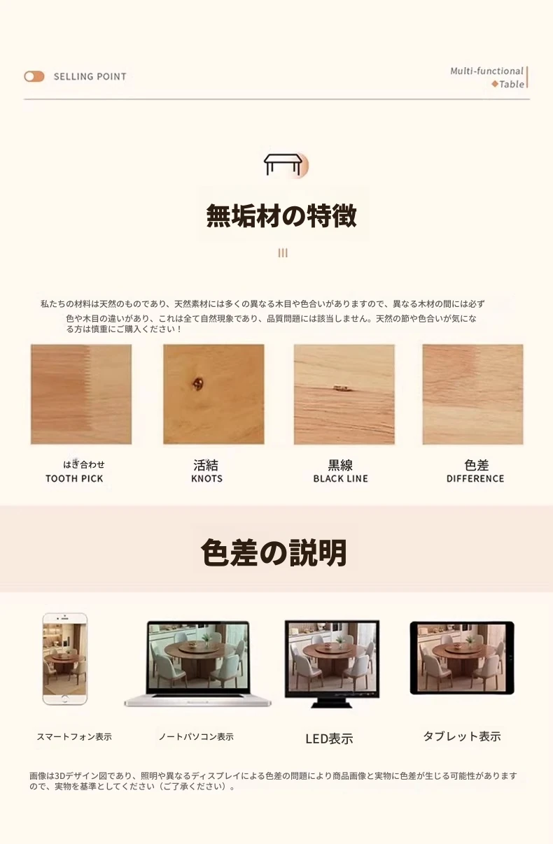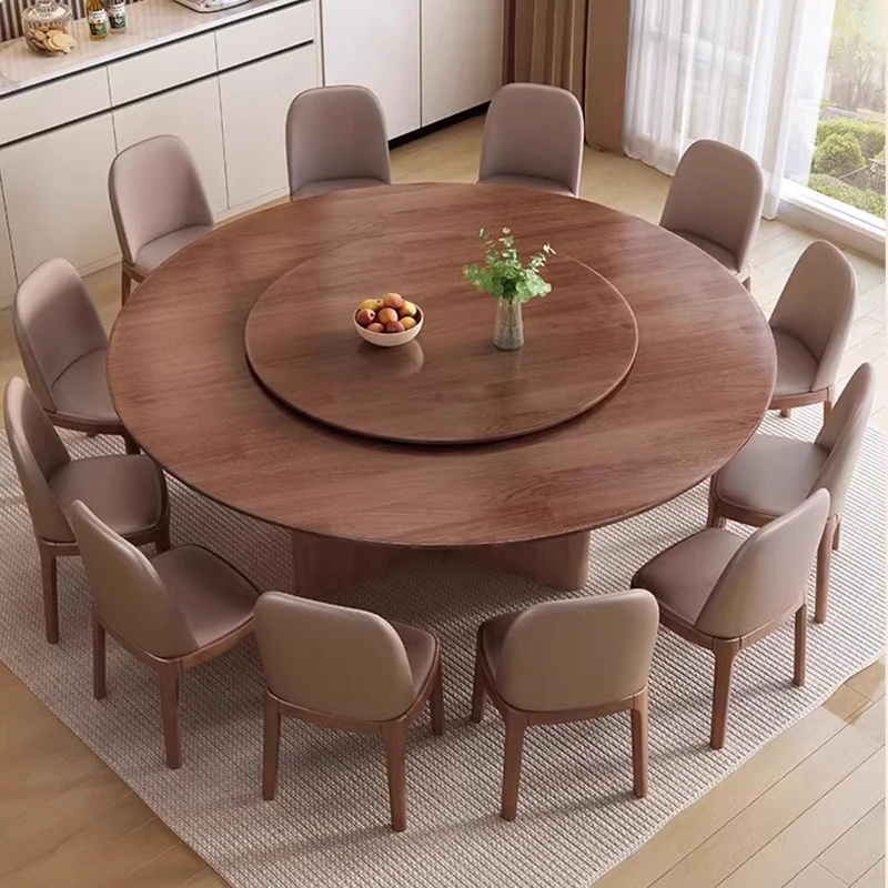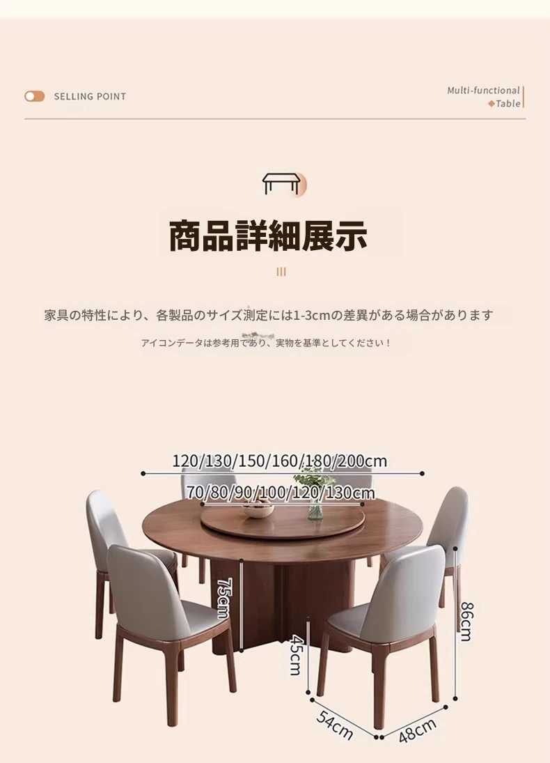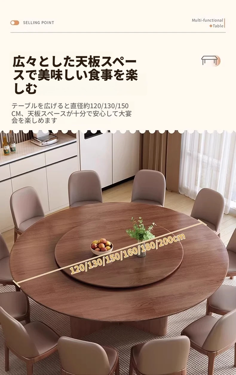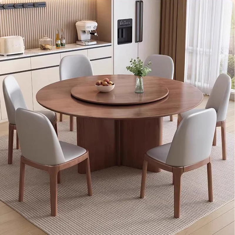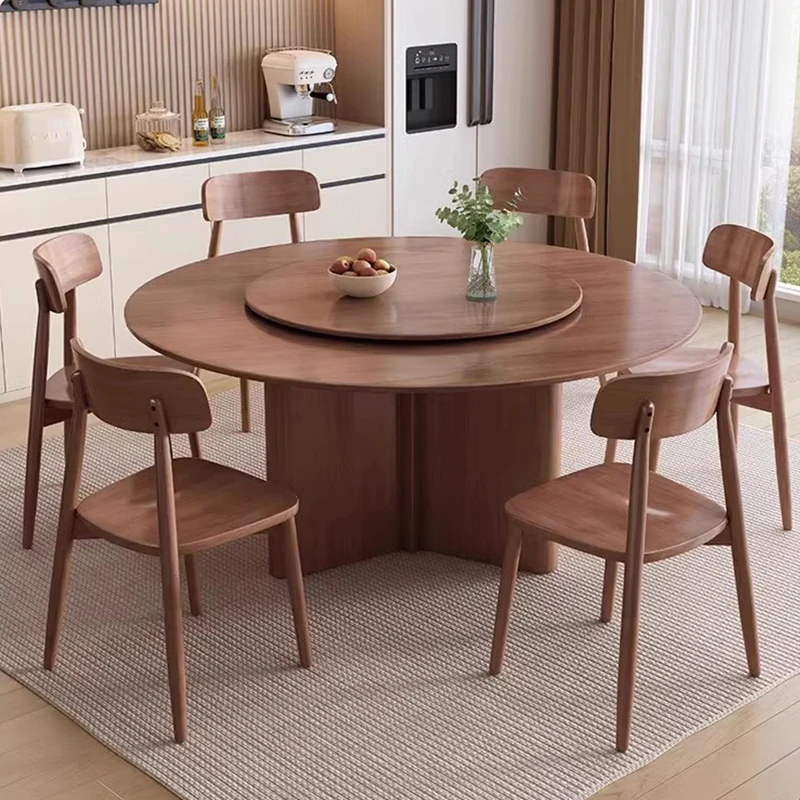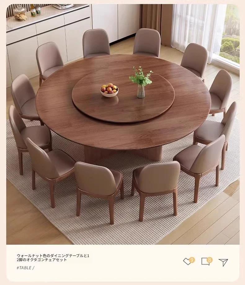 モダンでシンプルなデザインの無垢材ダイニングテーブル&チェアセット - 高級感溢れる回転式、狭いスペースにも最適な円形テーブル。新しいライフスタイルを提案します!