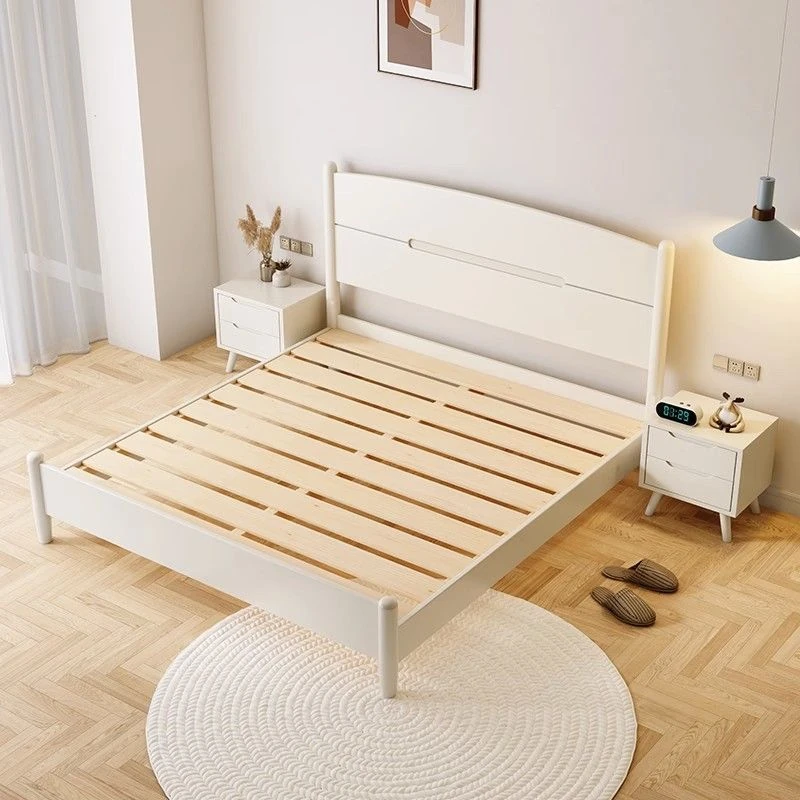 白色の無垢材ベッド