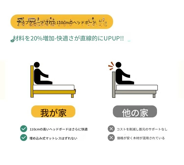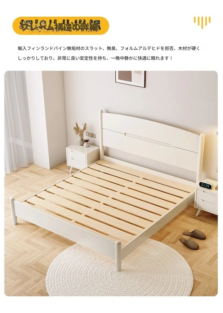 白色の無垢材ベッド+10センチココナッツマットレス+1キャビネット