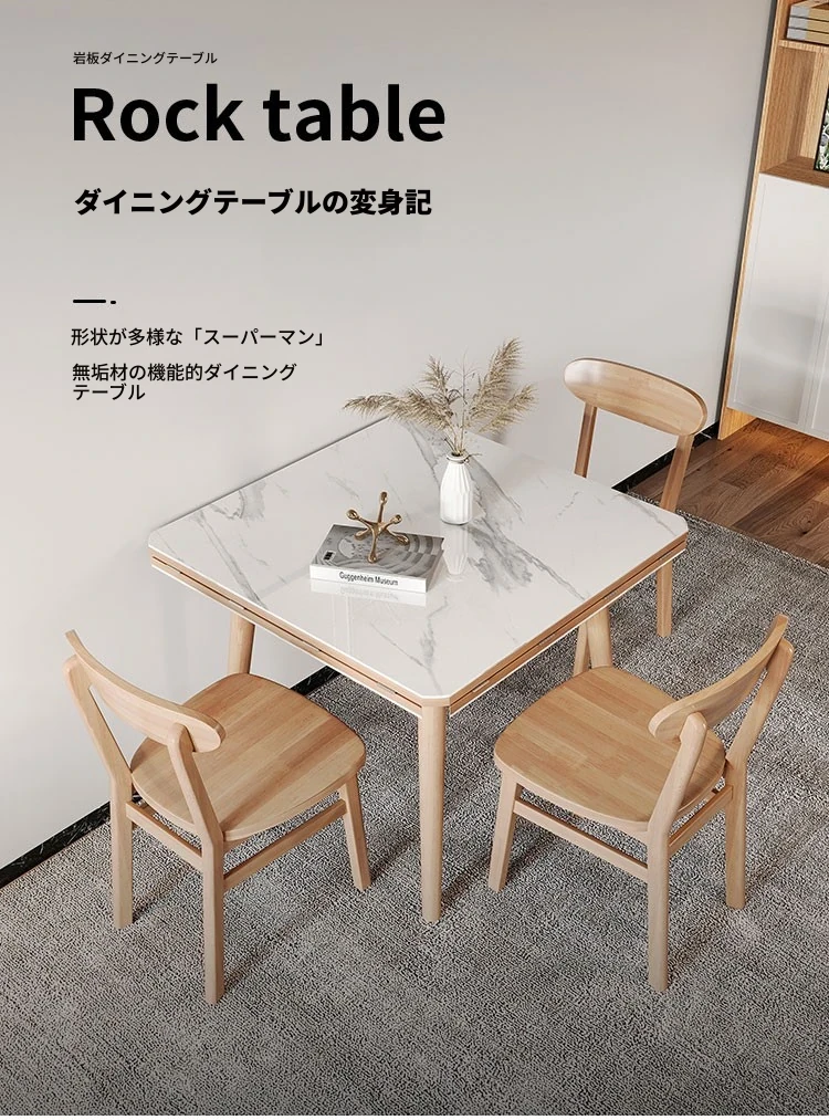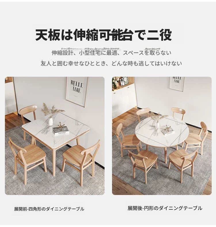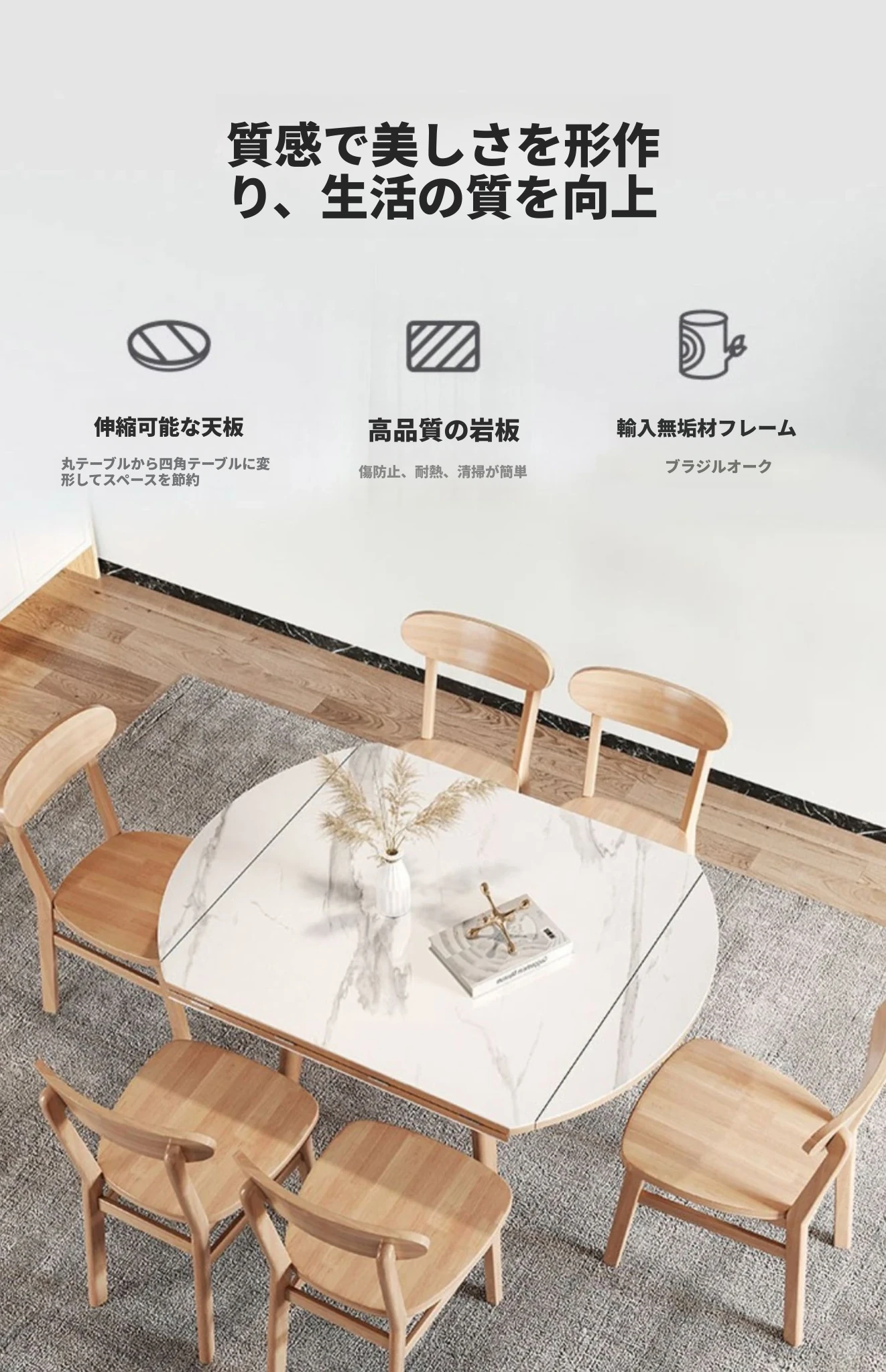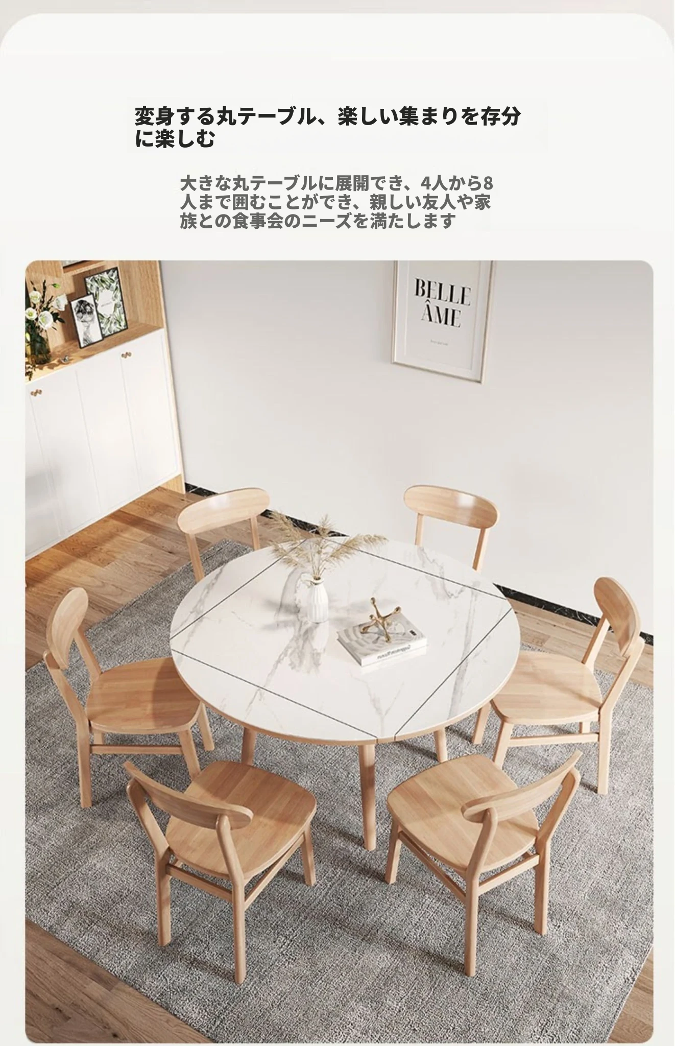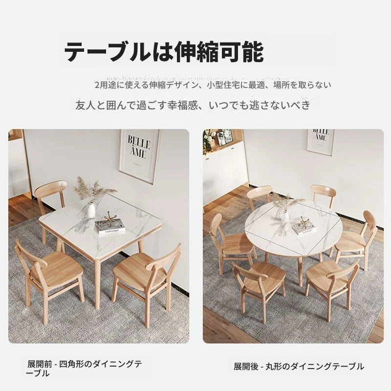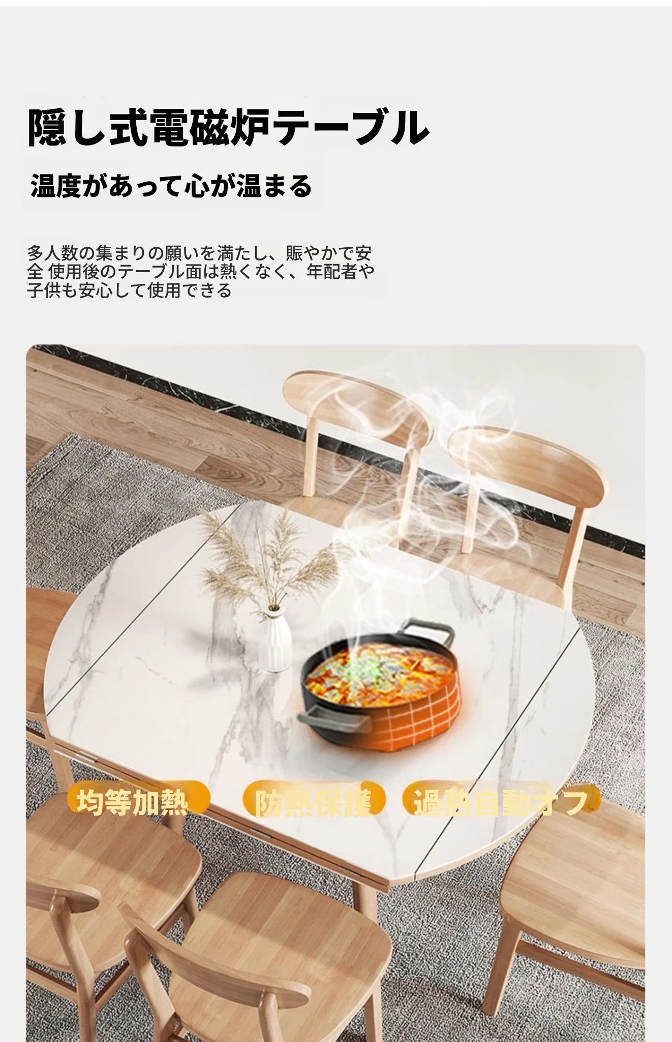 折りたたみ式実木製ダイニングテーブル&チェアセット|小型住宅に最適な多機能|円形・四角形両用|IHクッキングヒーター付きで便利!