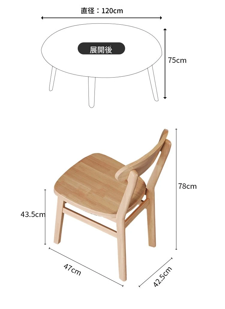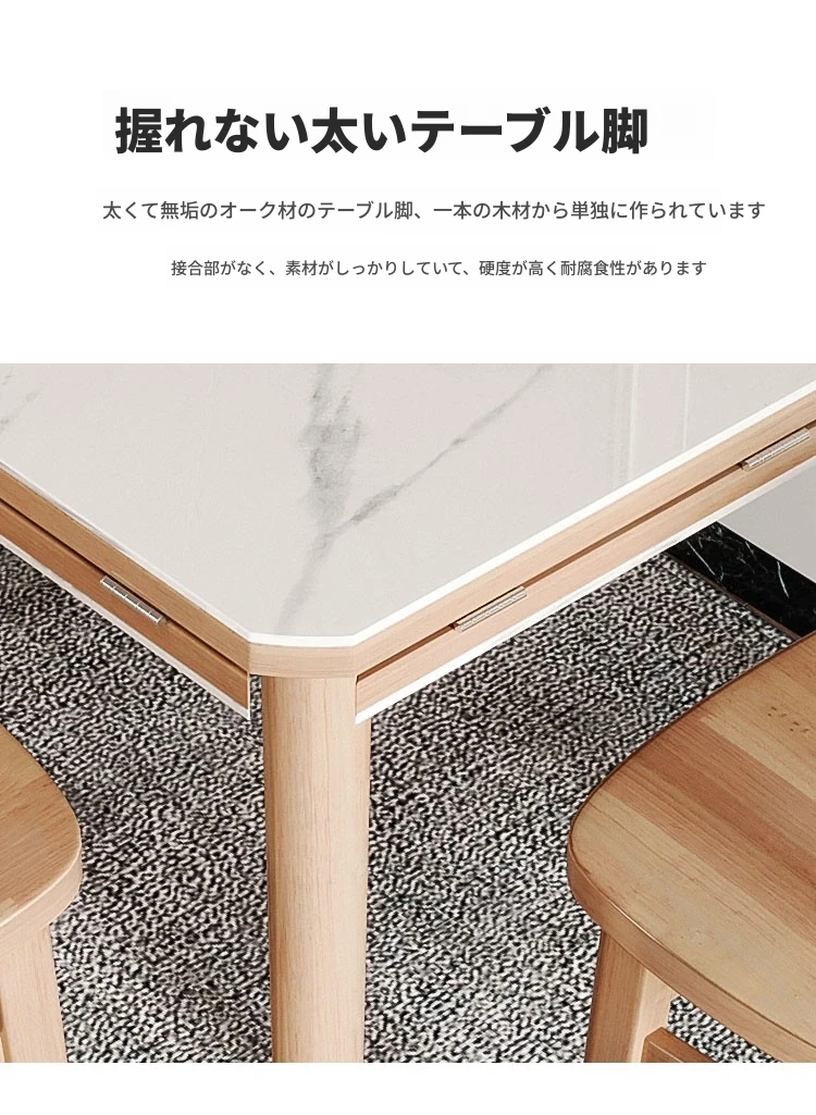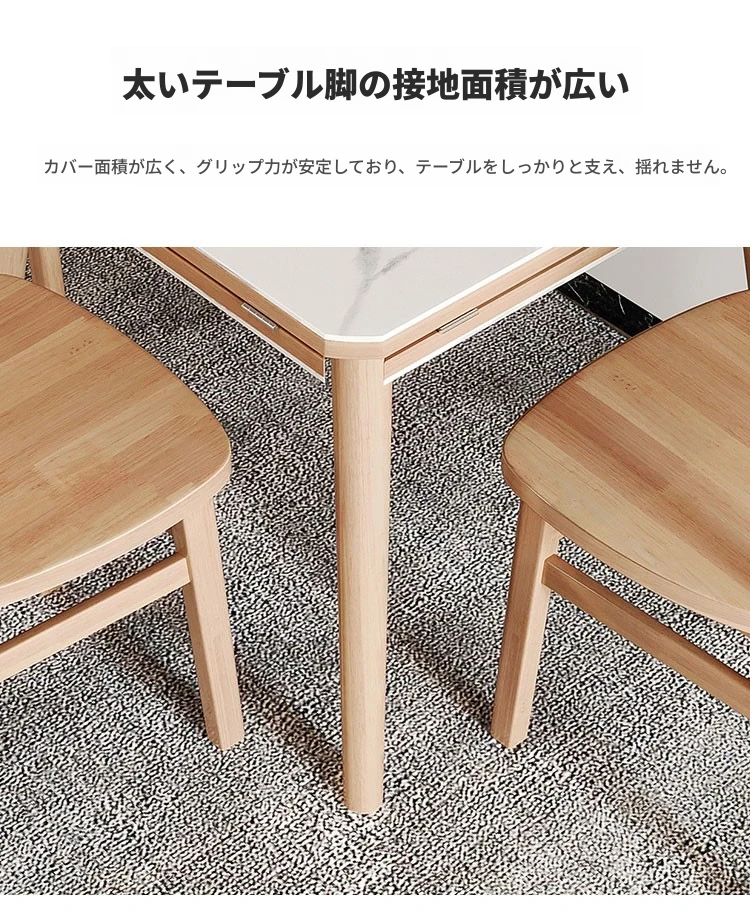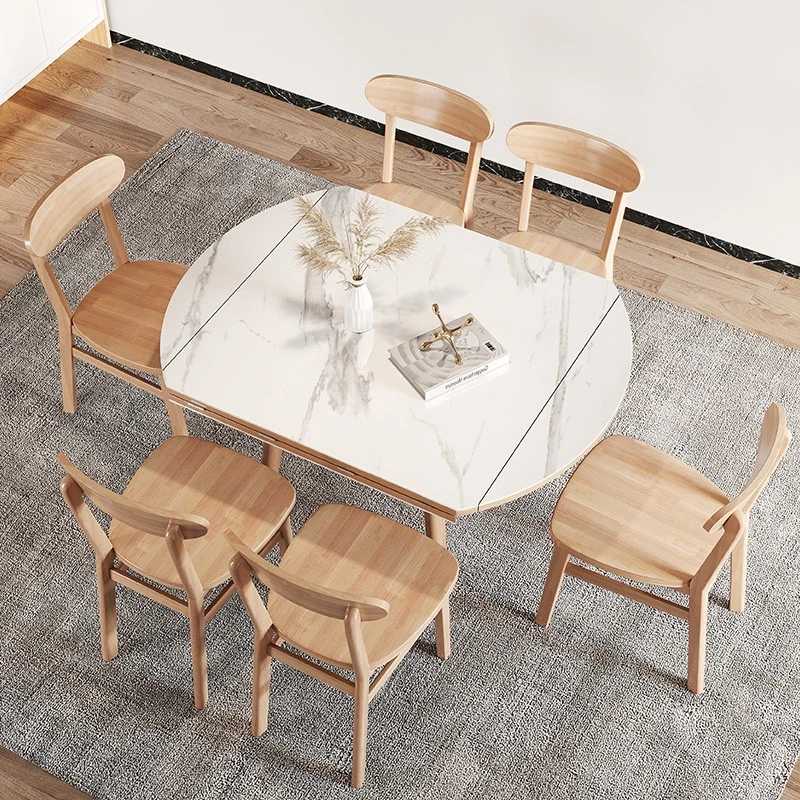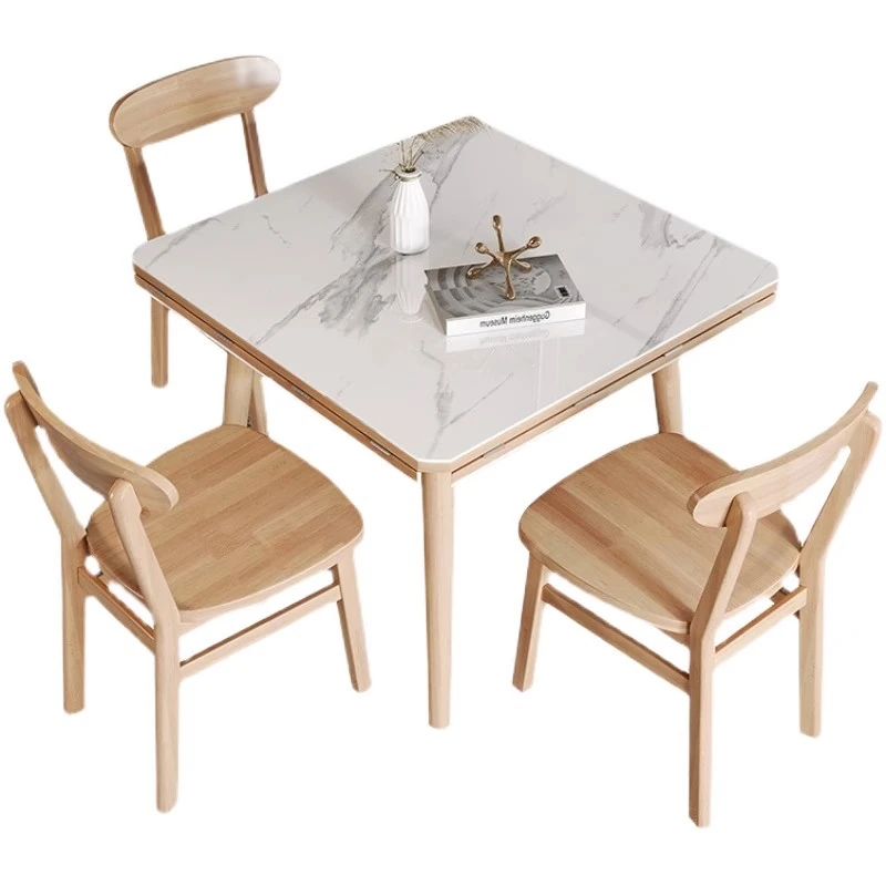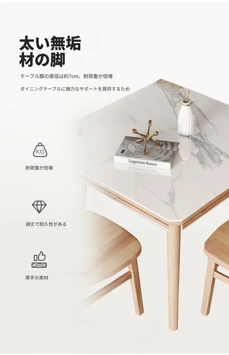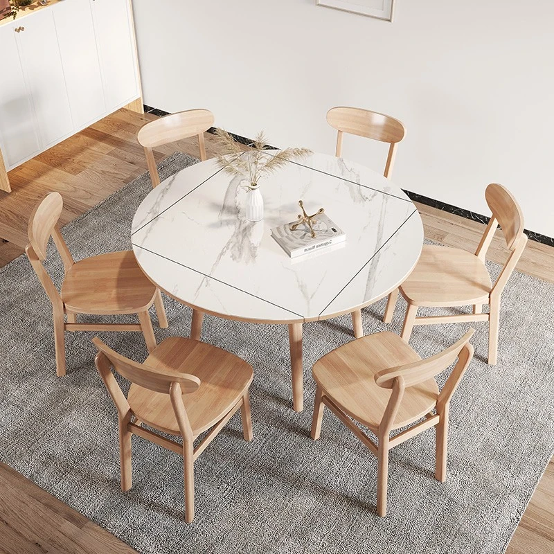 折りたたみ式実木製ダイニングテーブル&チェアセット|小型住宅に最適な多機能|円形・四角形両用|IHクッキングヒーター付きで便利!