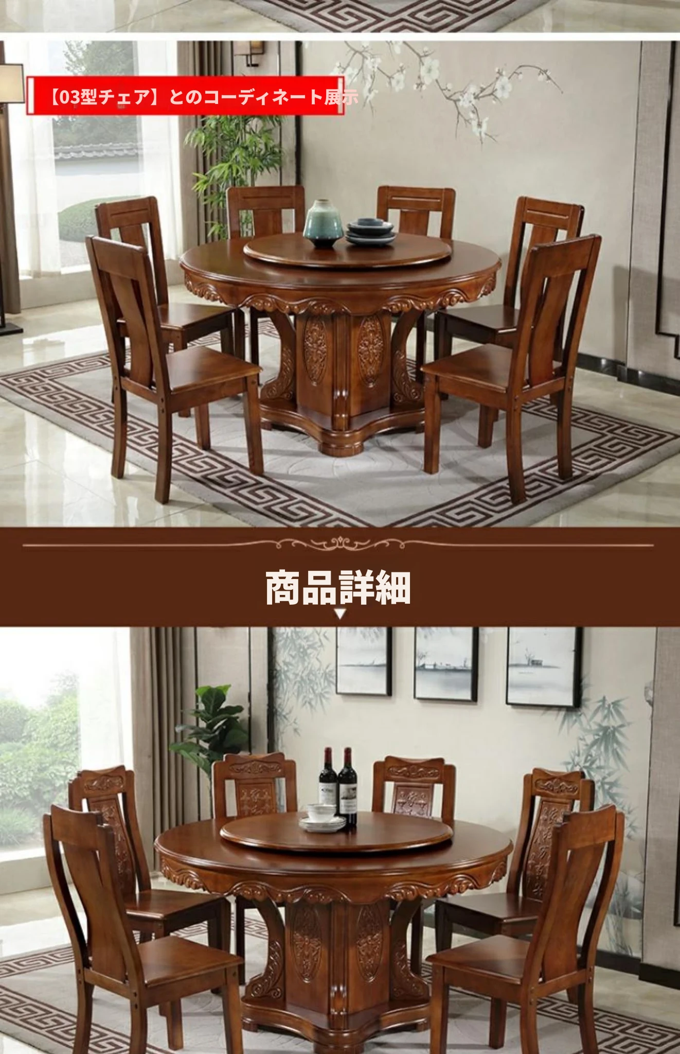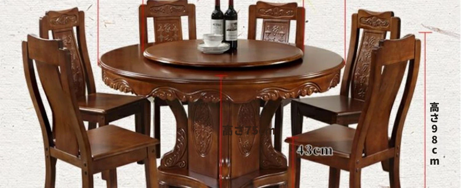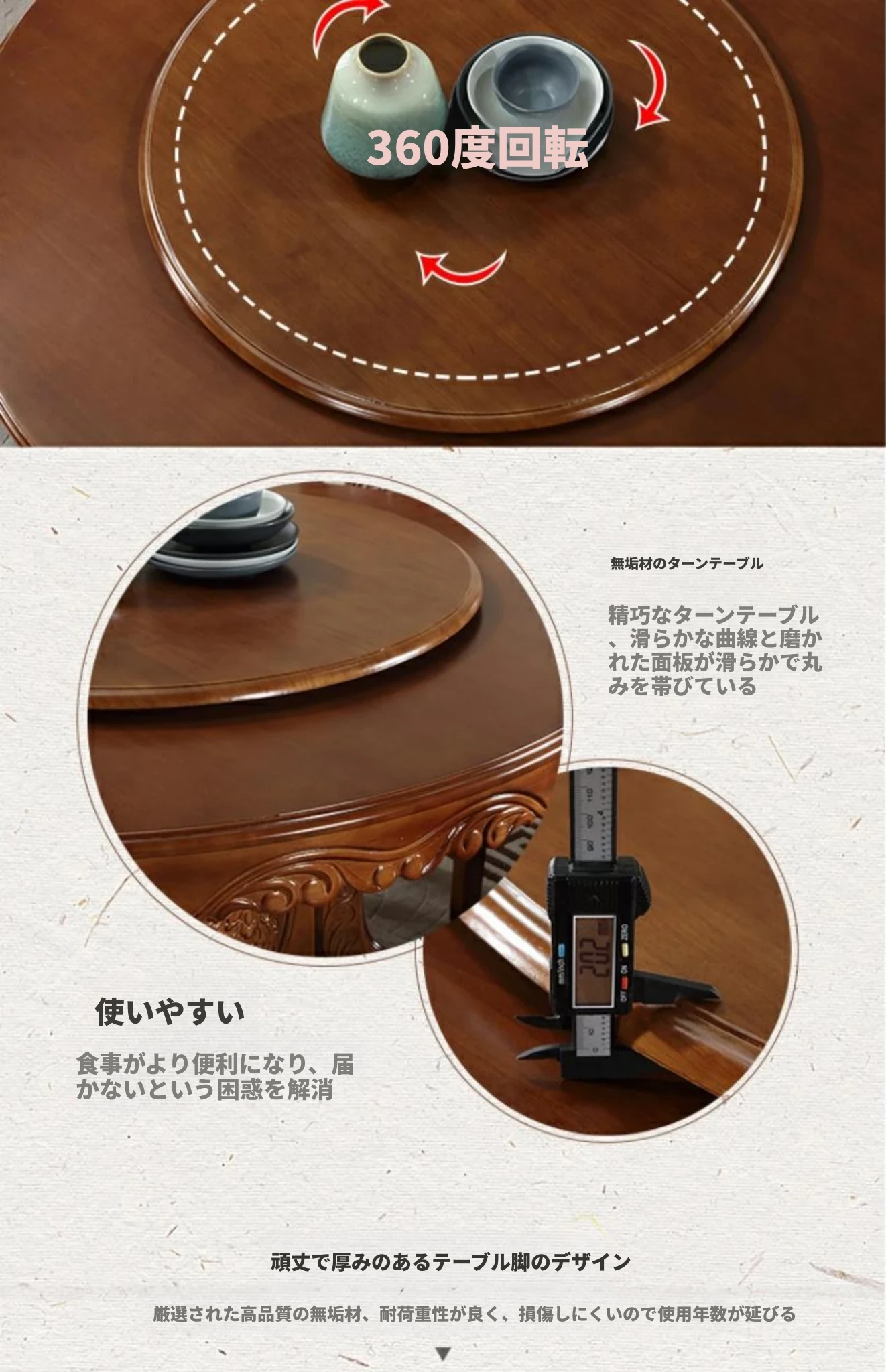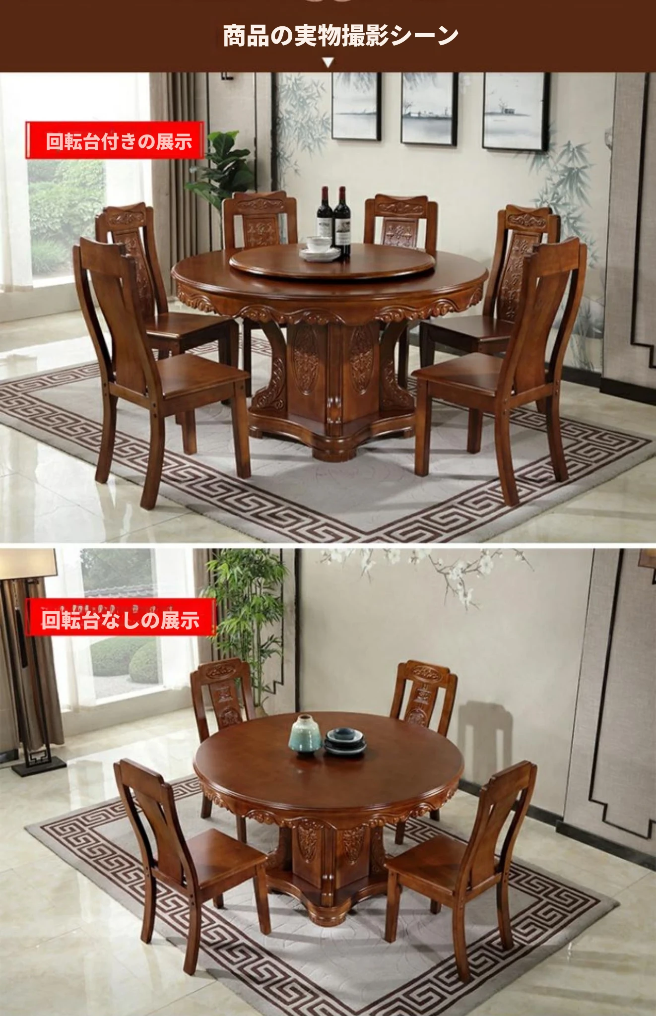 1.2メートルのダイニングテーブル+6脚の椅子に回転盤付き