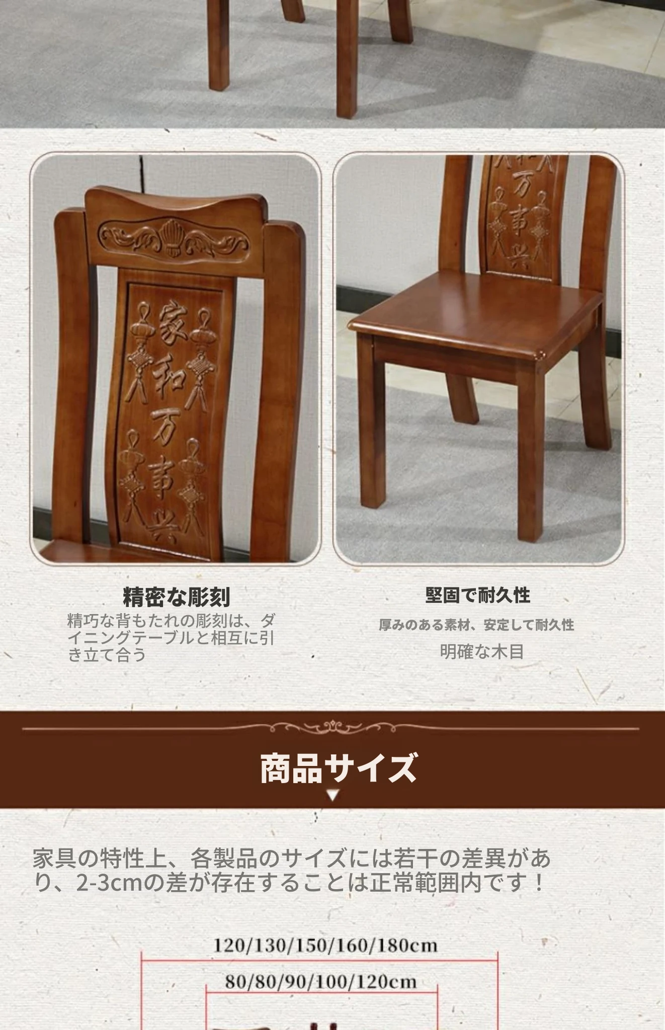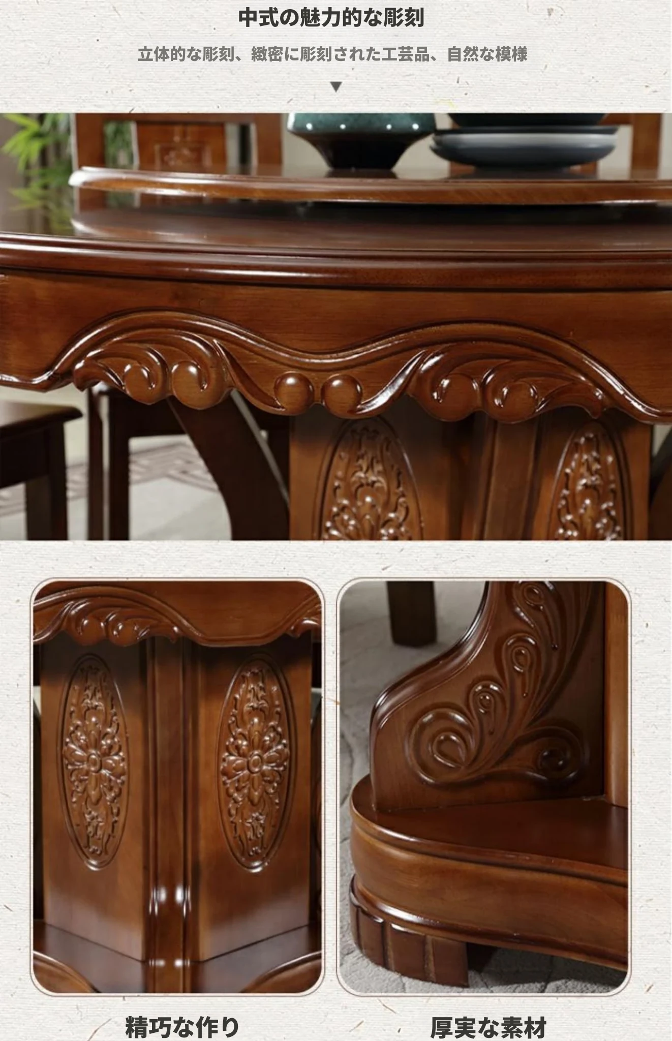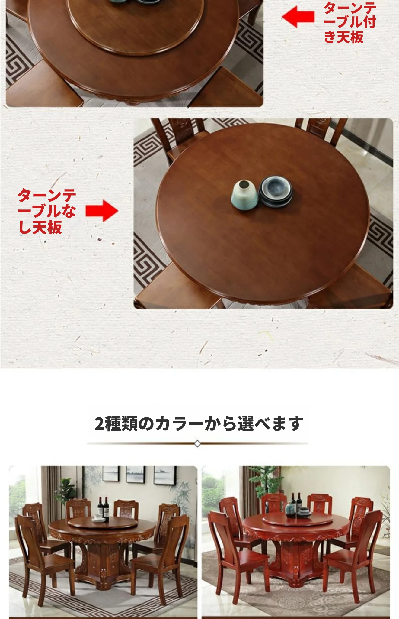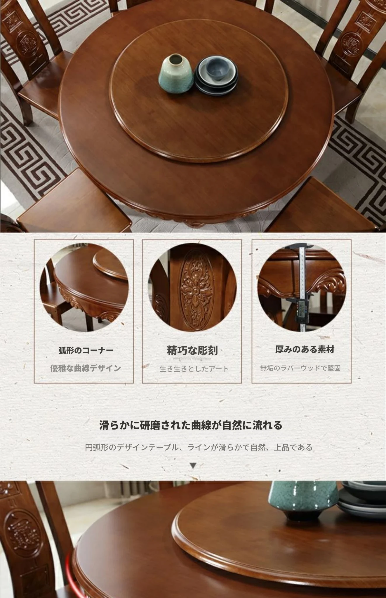 1.2メートルのダイニングテーブル+6脚の椅子に回転盤付き