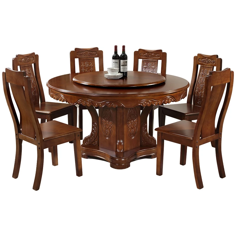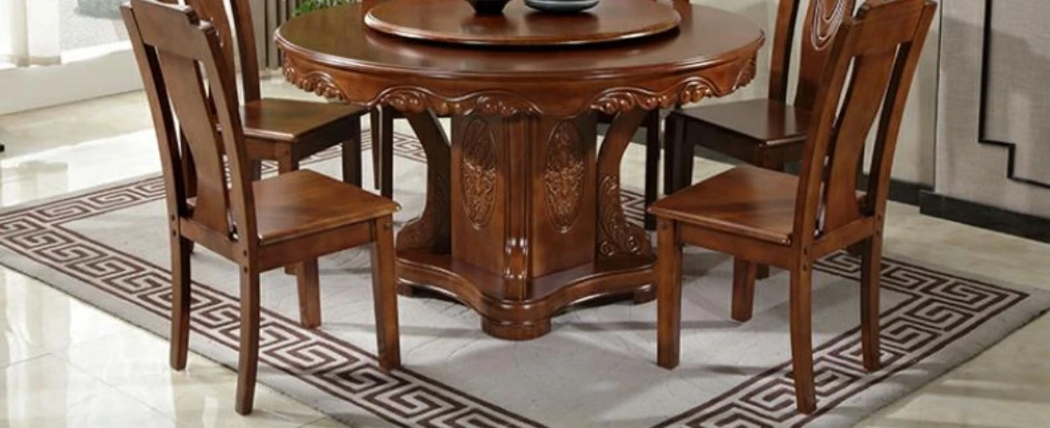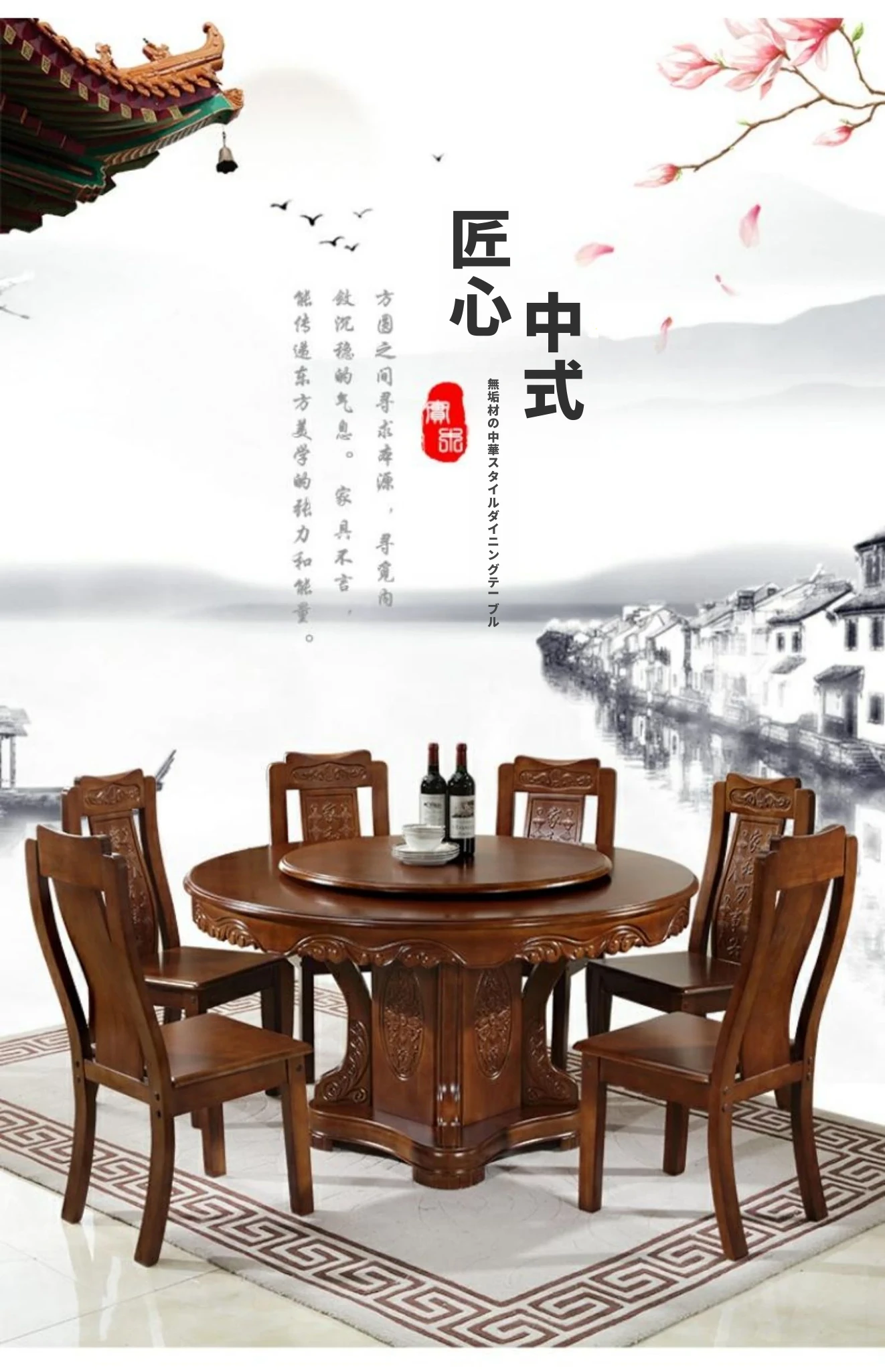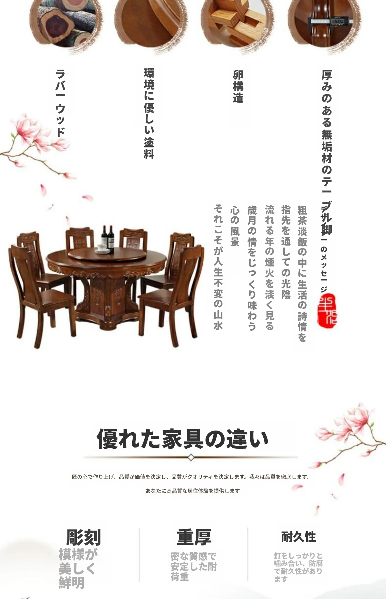 1.2メートルのダイニングテーブル+6脚の椅子に回転盤付き