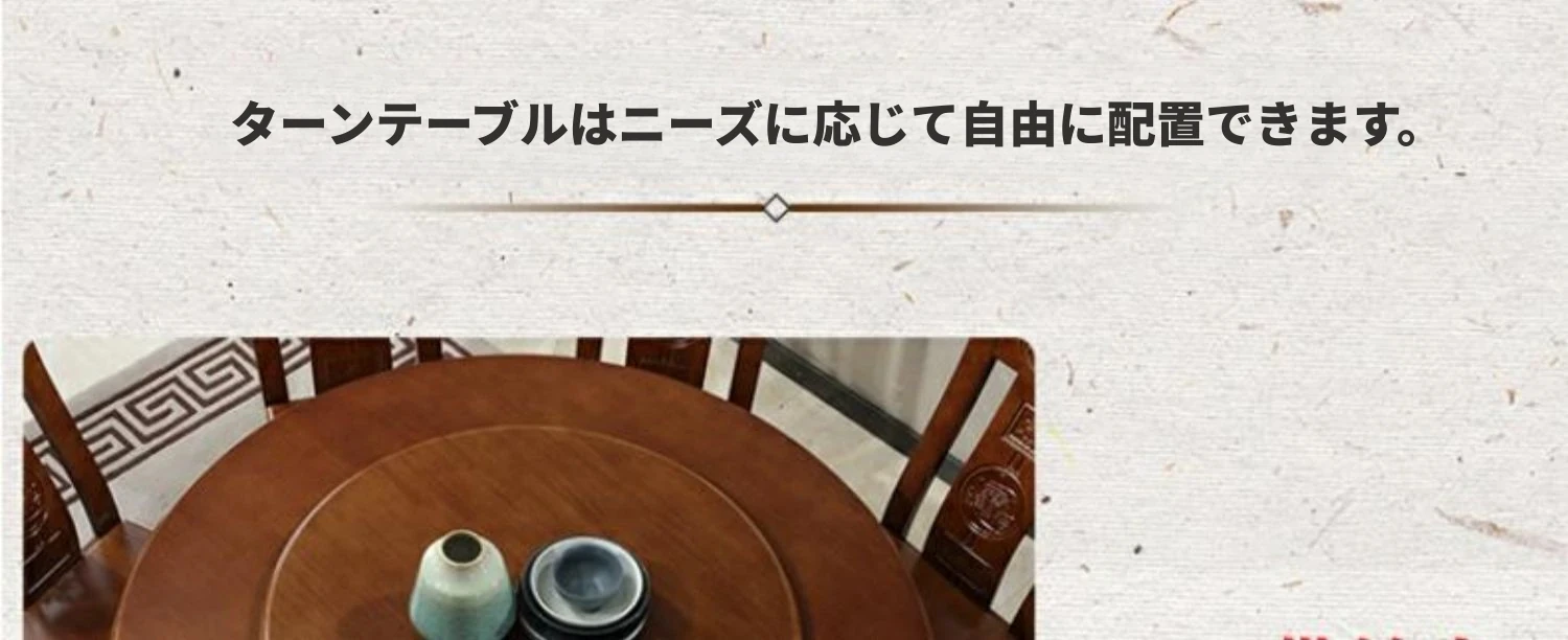 1.3メートルのダイニングテーブル+6脚の椅子に回転盤付き