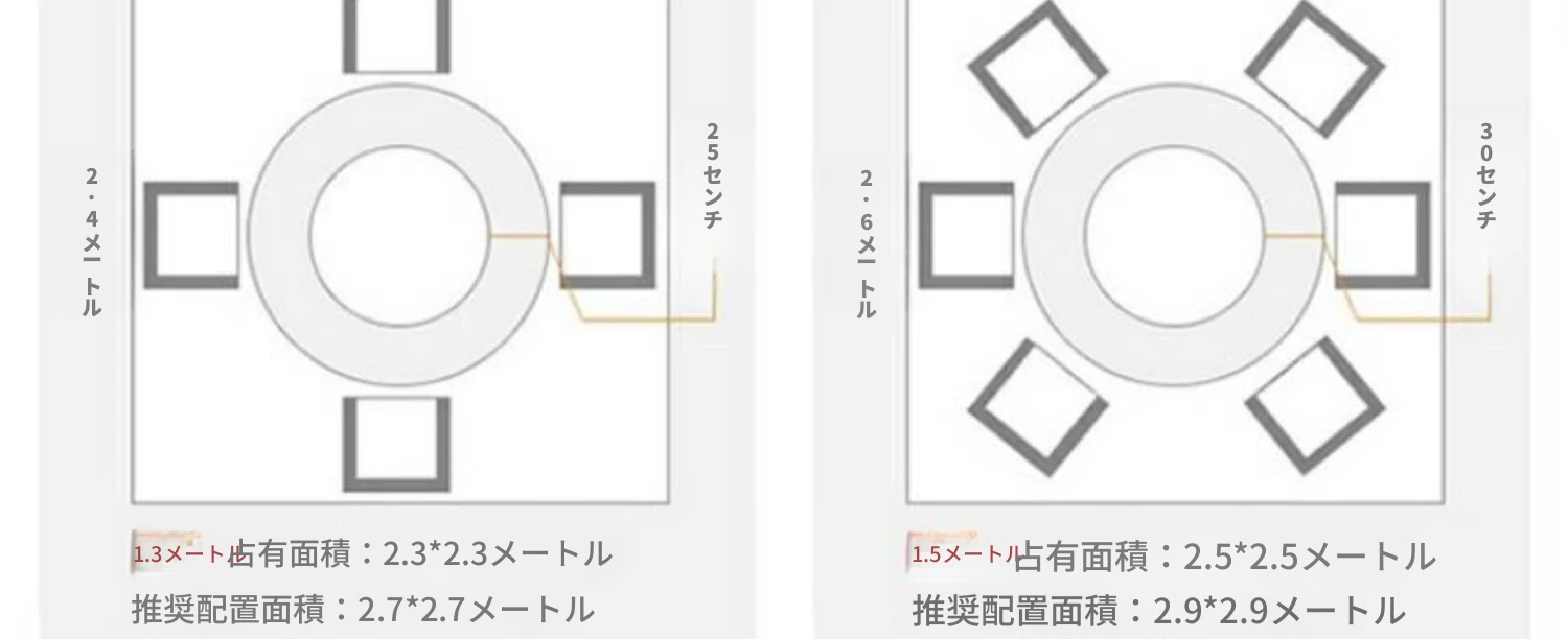 1.5メートルのダイニングテーブル+8脚の椅子に回転盤付き
