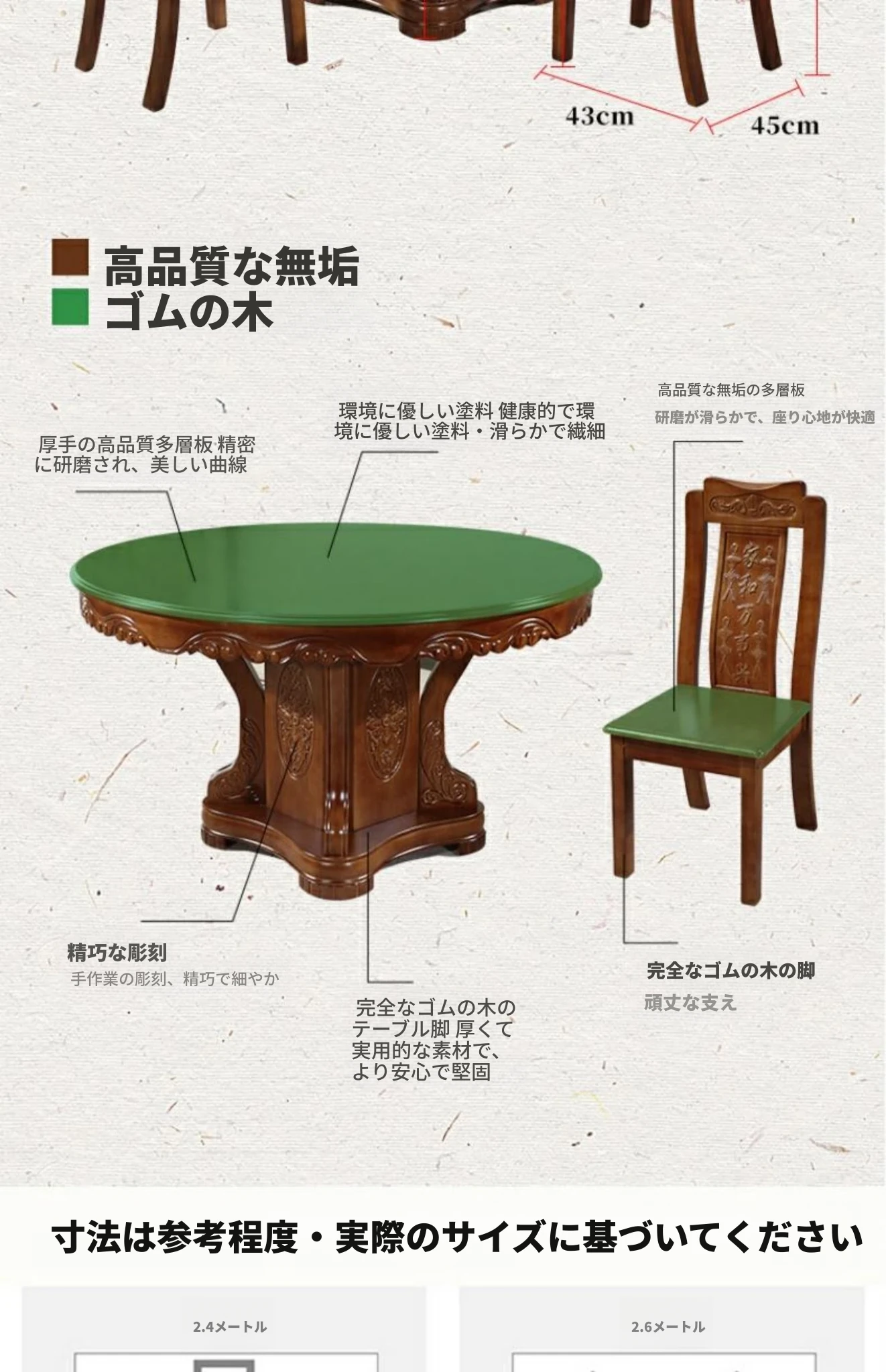 1.8メートルのダイニングテーブル+12脚の椅子に回転盤付き