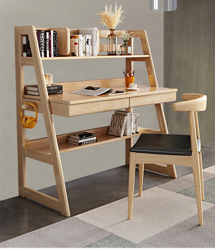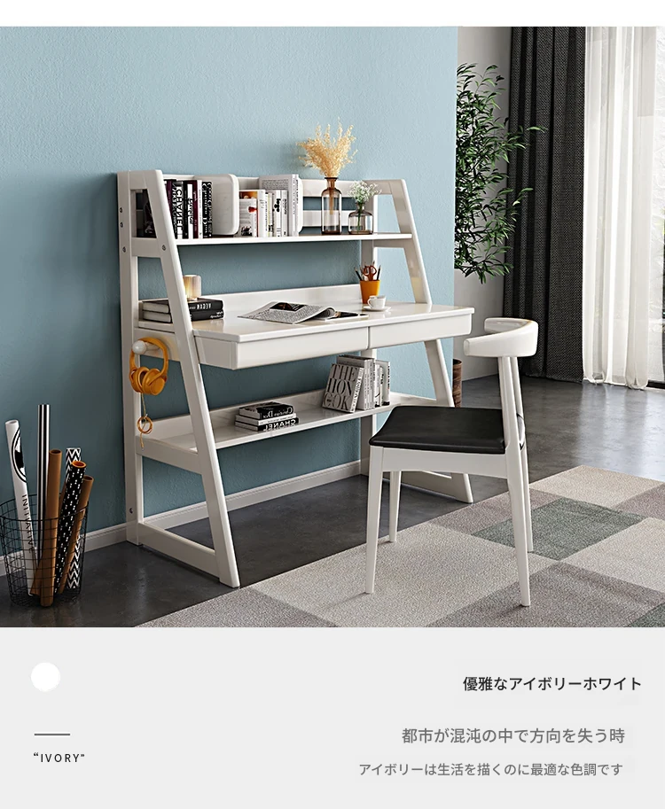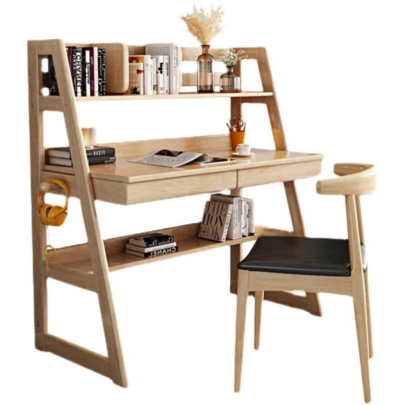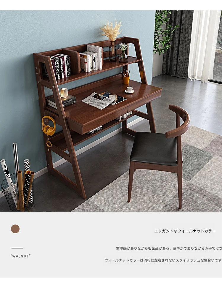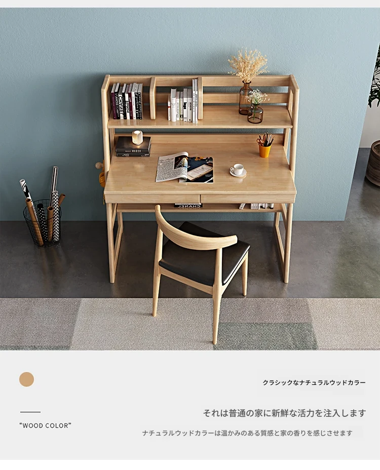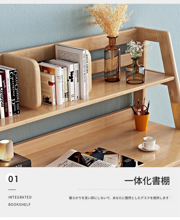 北欧スタイルの無垢材デスク&書棚一体型!多機能でシンプルなデザイン、現代的な寝室にぴったりのパソコンデスク。学生にも最適な書きやすさを追求した一品です。