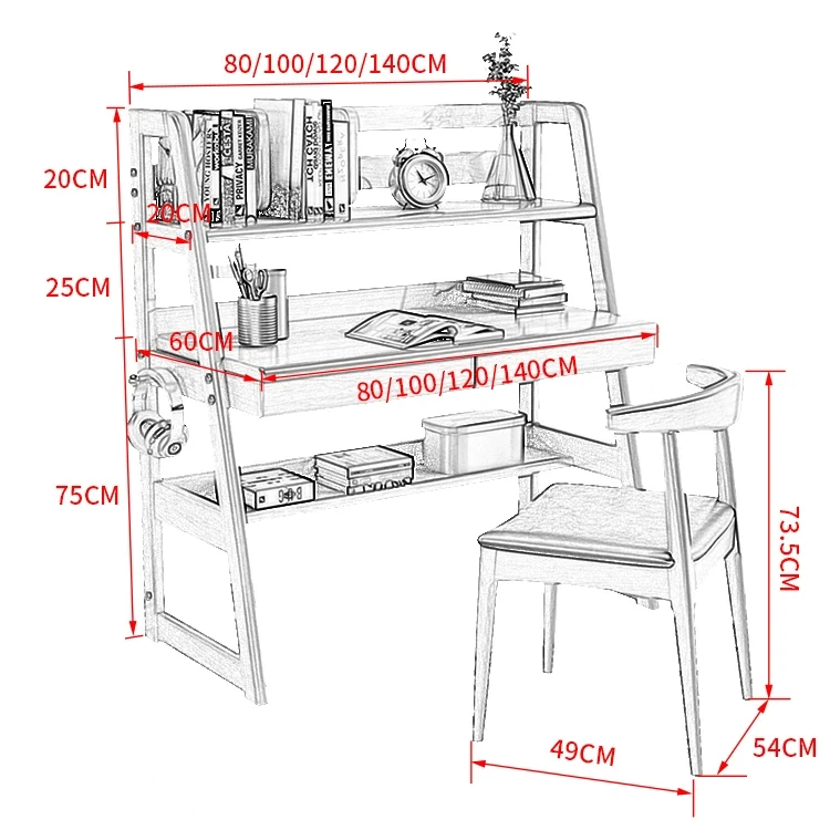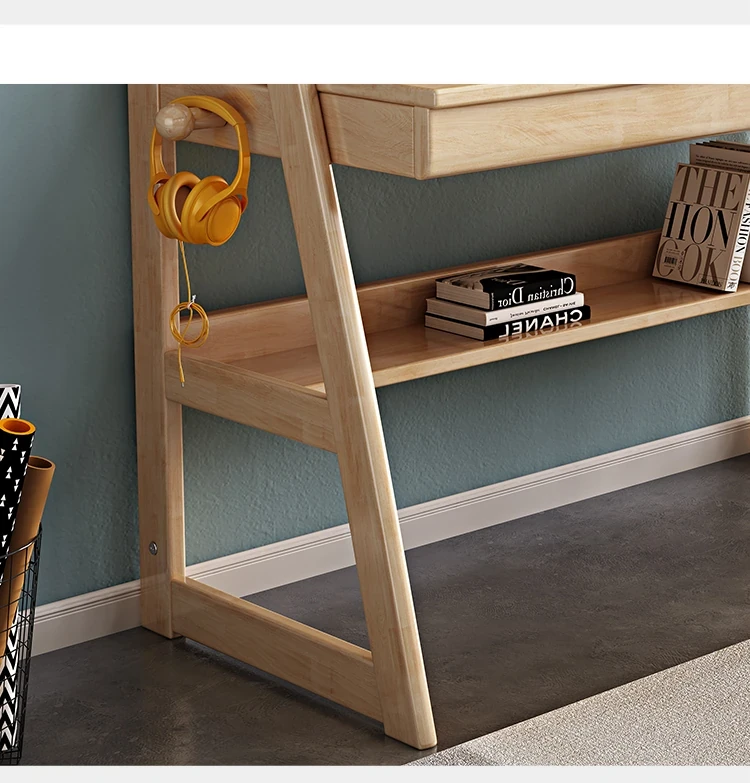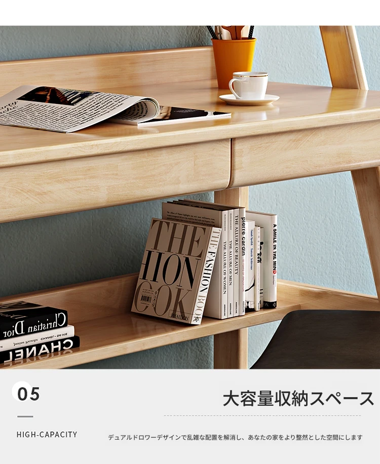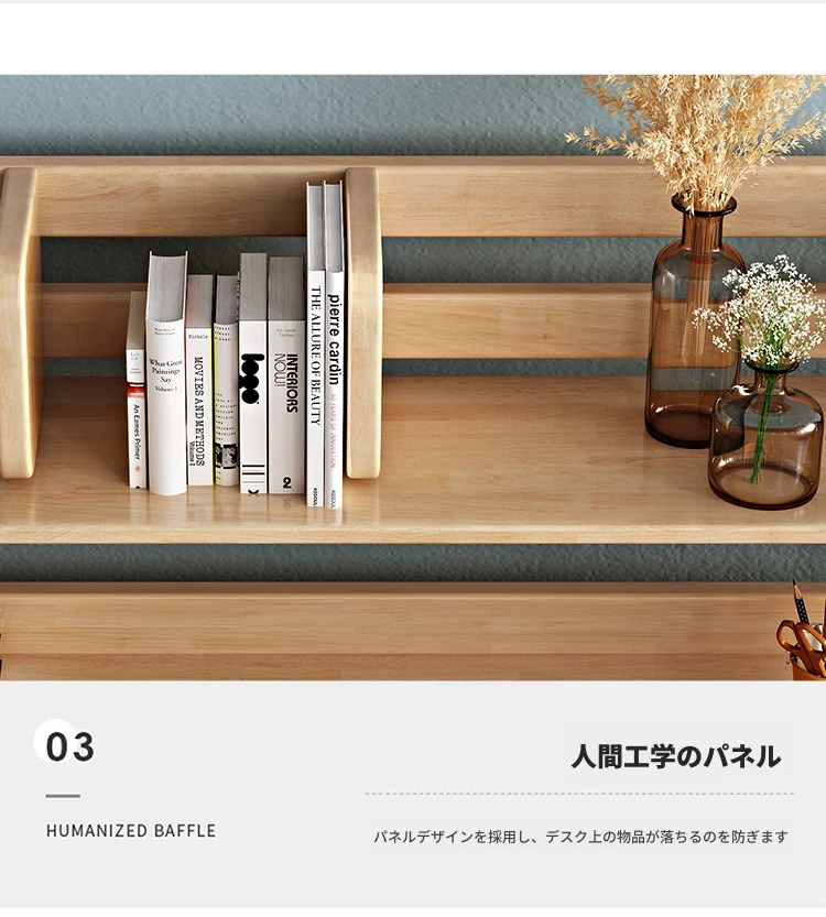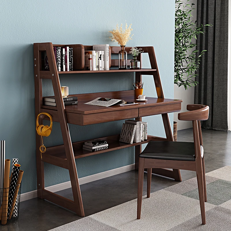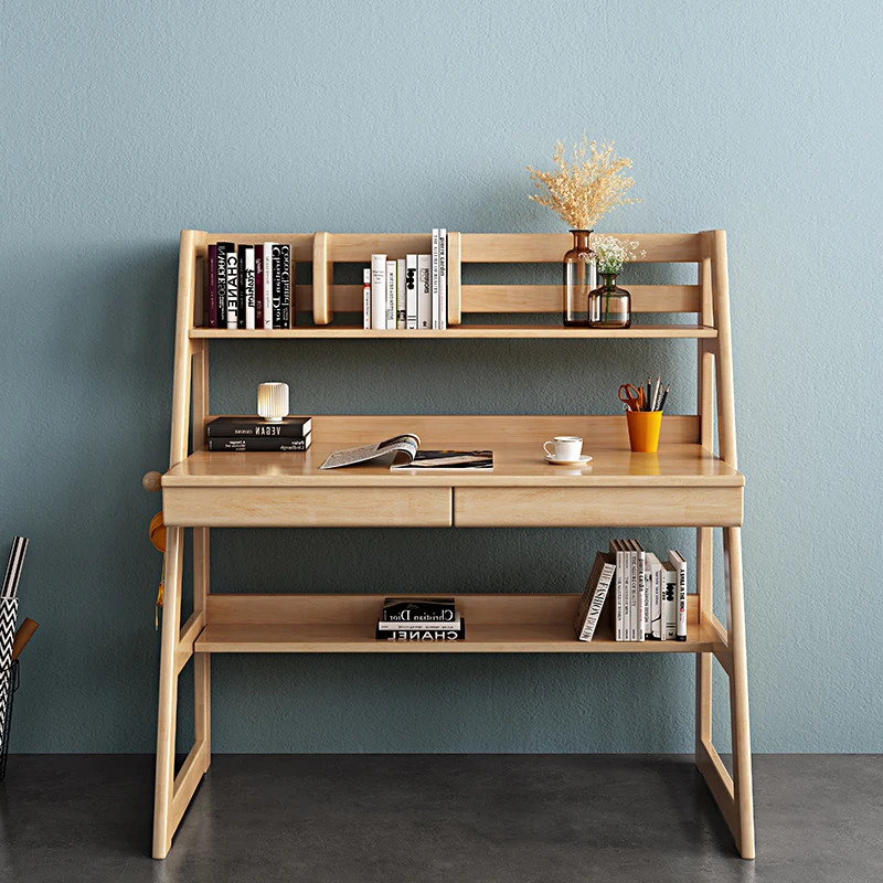 北欧スタイルの無垢材デスク&書棚一体型!多機能でシンプルなデザイン、現代的な寝室にぴったりのパソコンデスク。学生にも最適な書きやすさを追求した一品です。