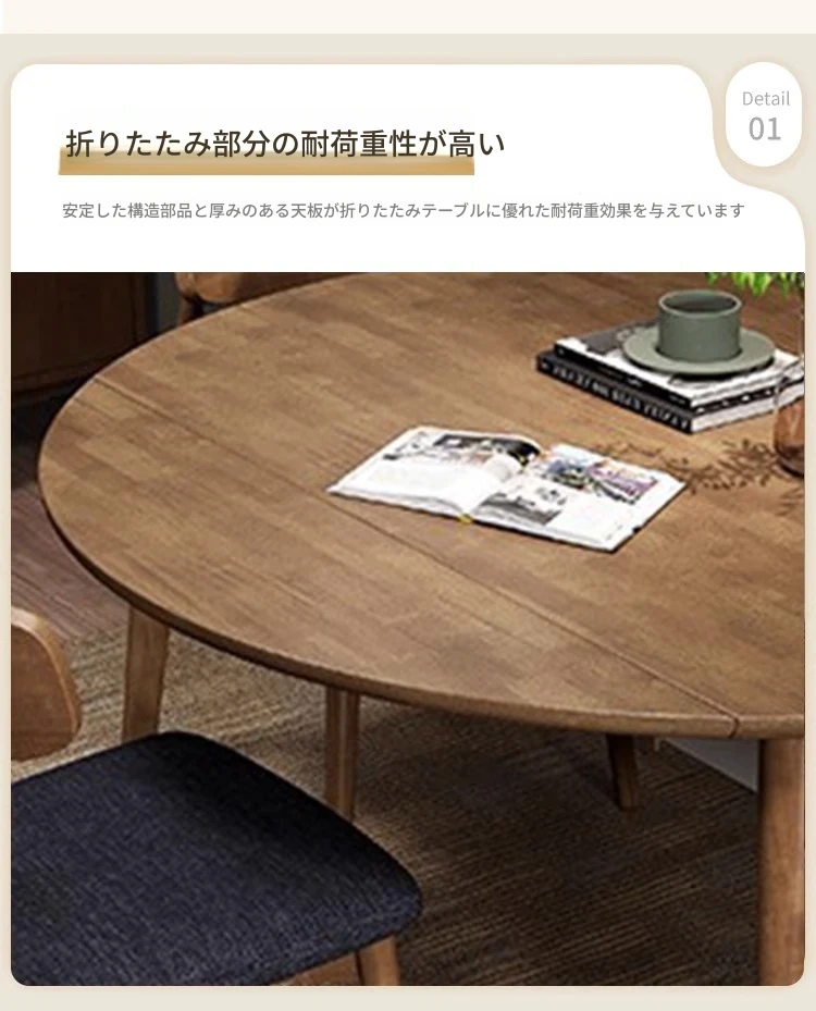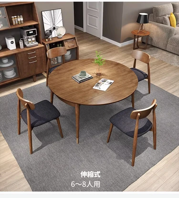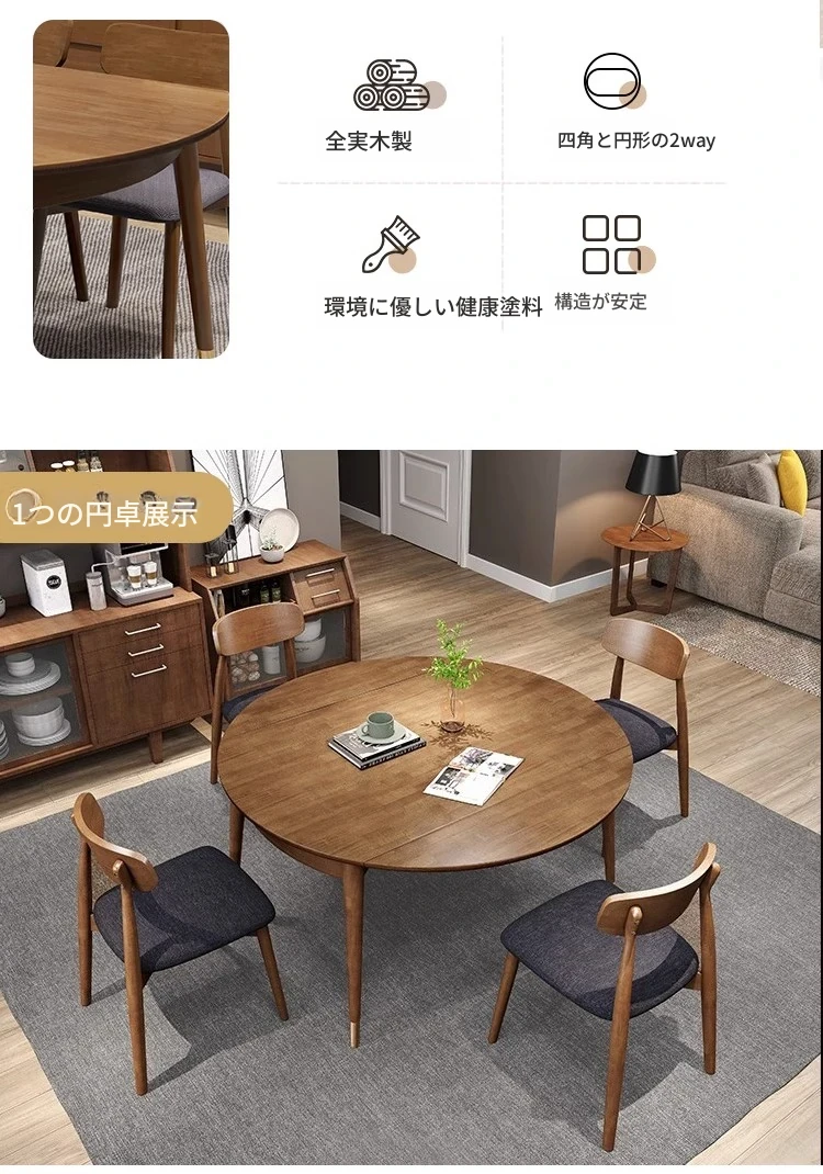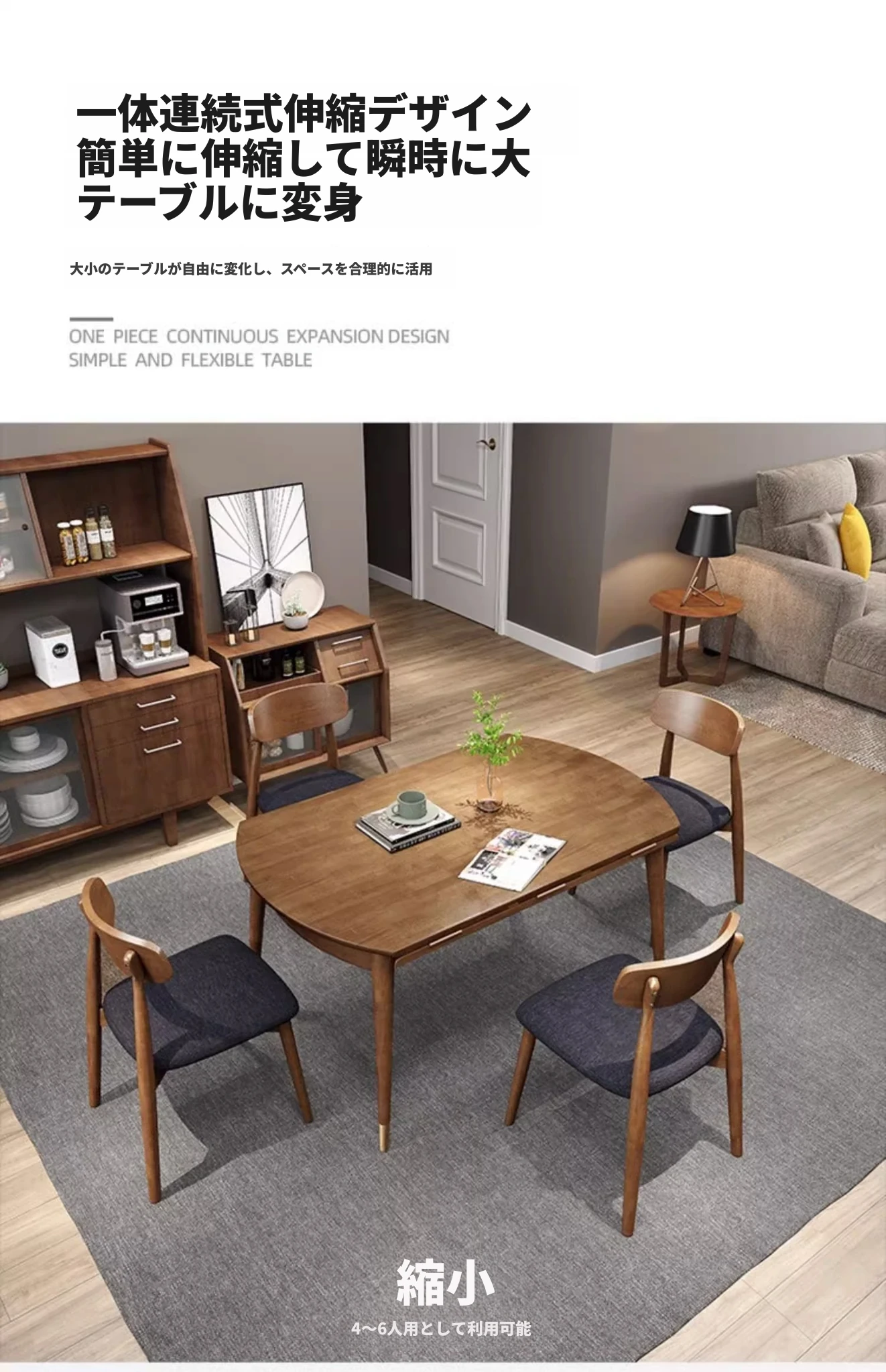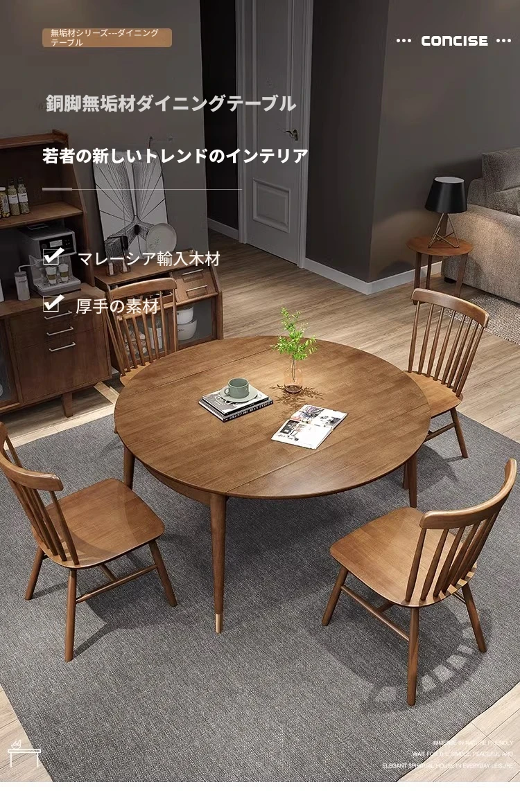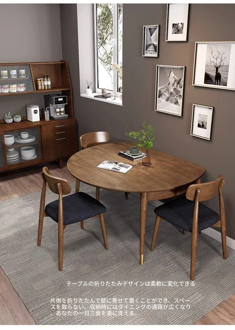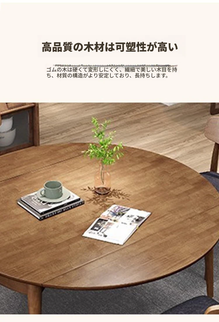 北欧スタイルの折りたたみ可能な実木ダイニングテーブル&チェアセット - 小さなスペースに最適!4人から6人まで対応、円形と角形の2WAYデザインで、食事を楽しむひとときを演出します。