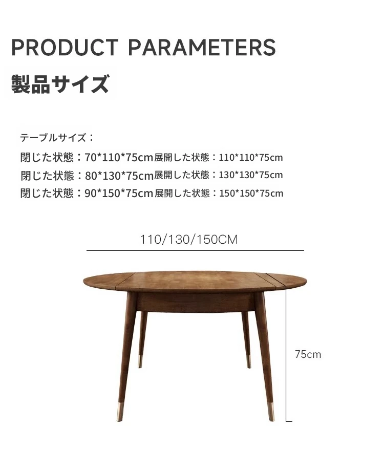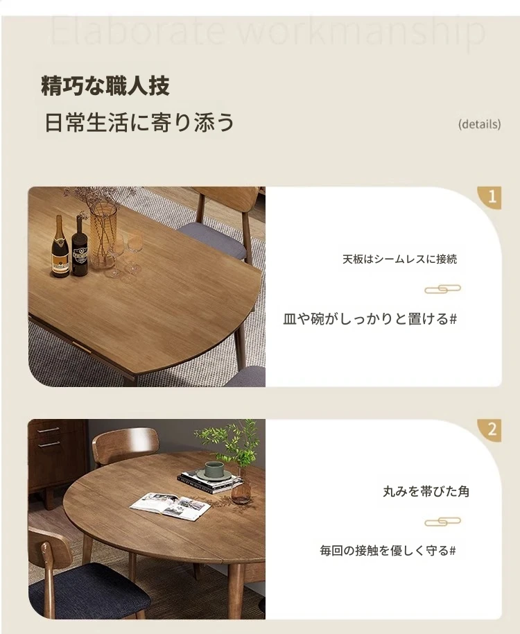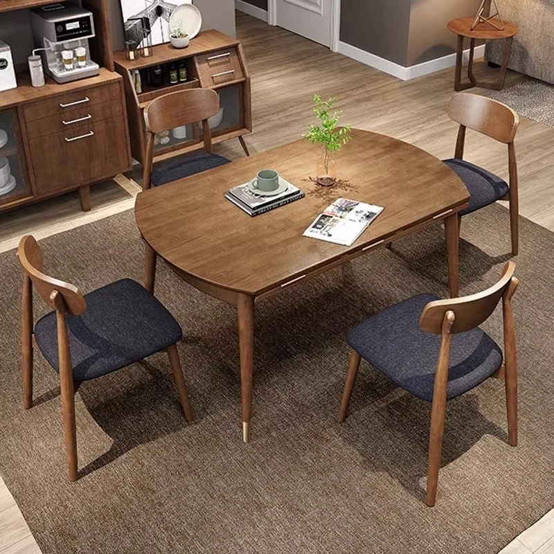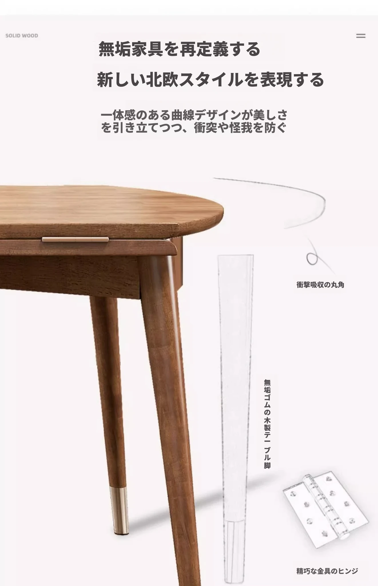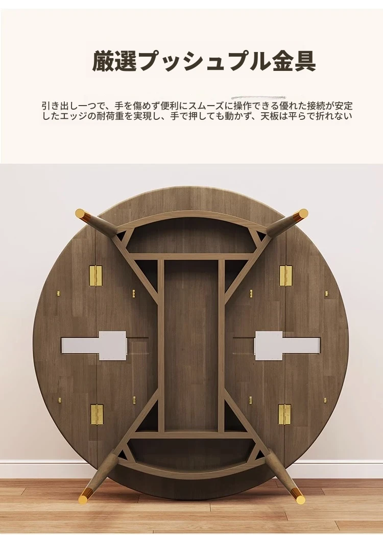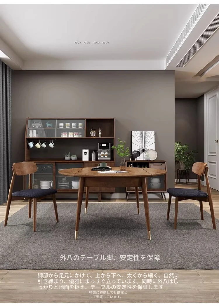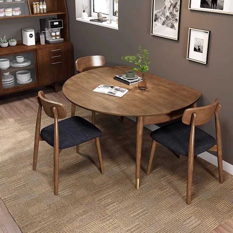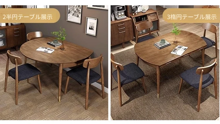 北欧スタイルの折りたたみ可能な実木ダイニングテーブル&チェアセット - 小さなスペースに最適!4人から6人まで対応、円形と角形の2WAYデザインで、食事を楽しむひとときを演出します。
