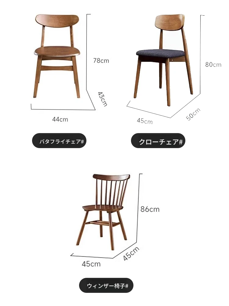 1.3メートル無垢材テーブル+4脚ウィンザーチェア 取り付け込み
