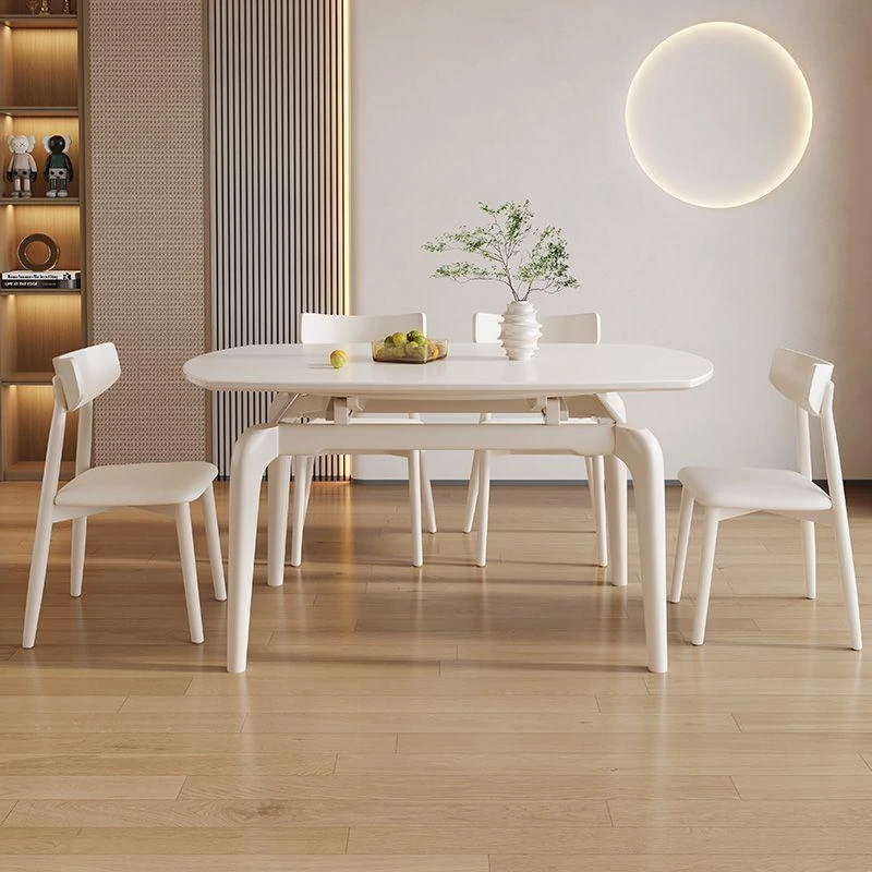 北欧スタイルの無垢材ダイニングテーブルセット - 小型住居に最適な長方形テーブル&チェアのモダンでシンプルな軽奢デザイン!おしゃれで実用的、心地よい食卓を実現します。
