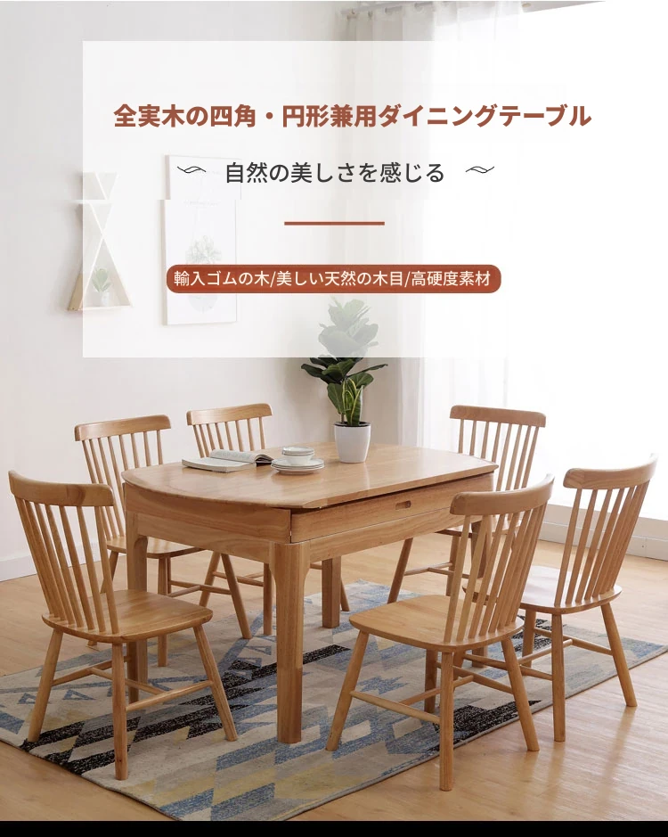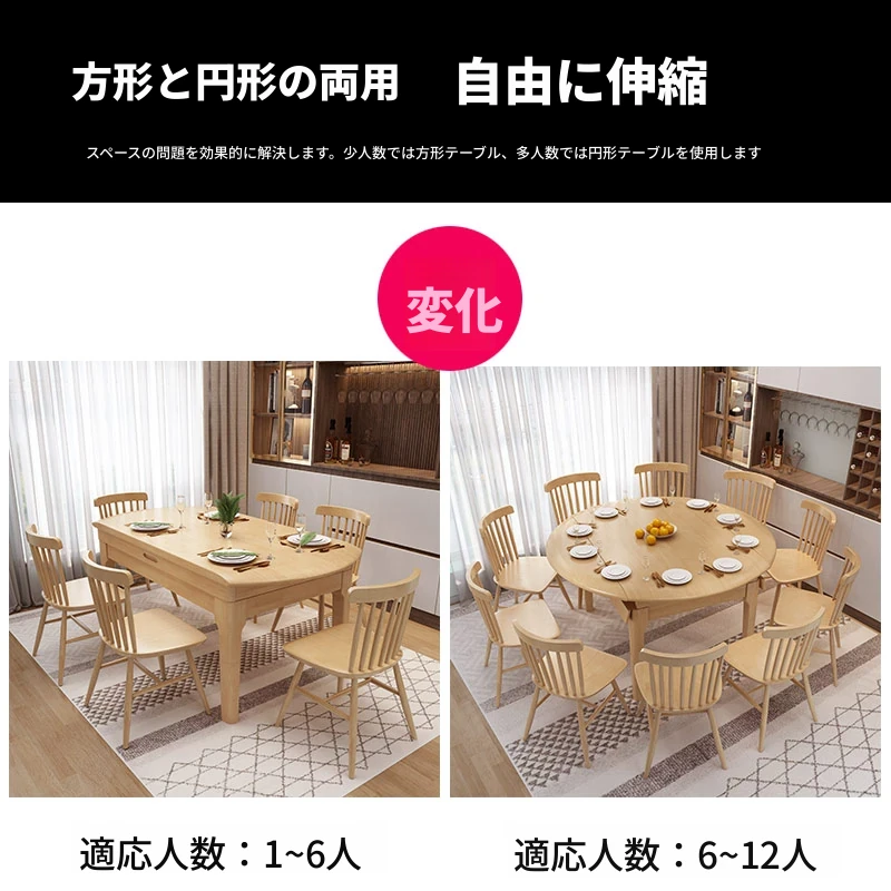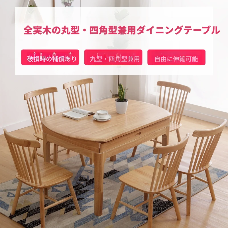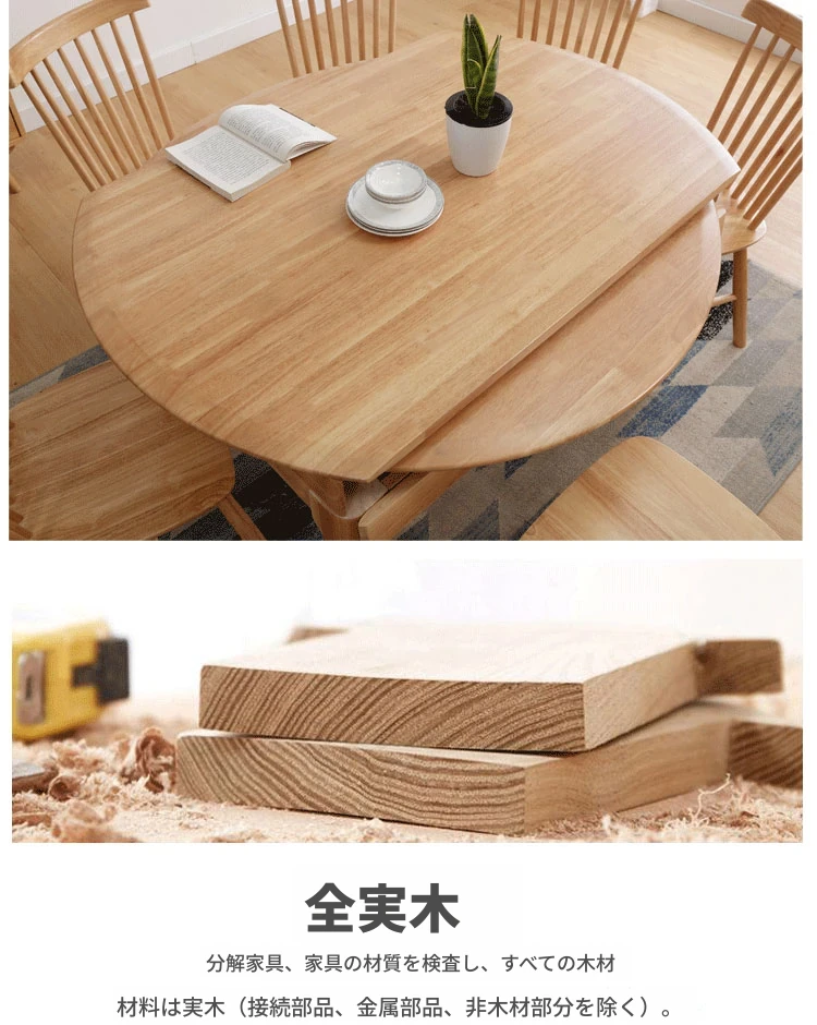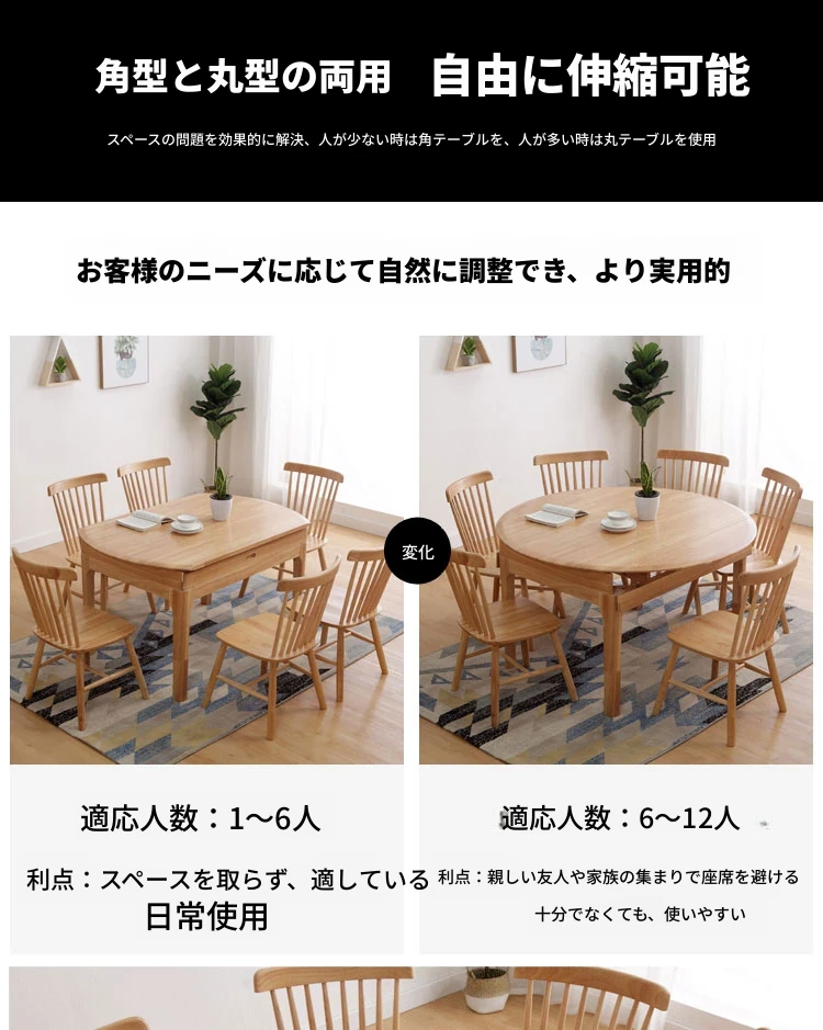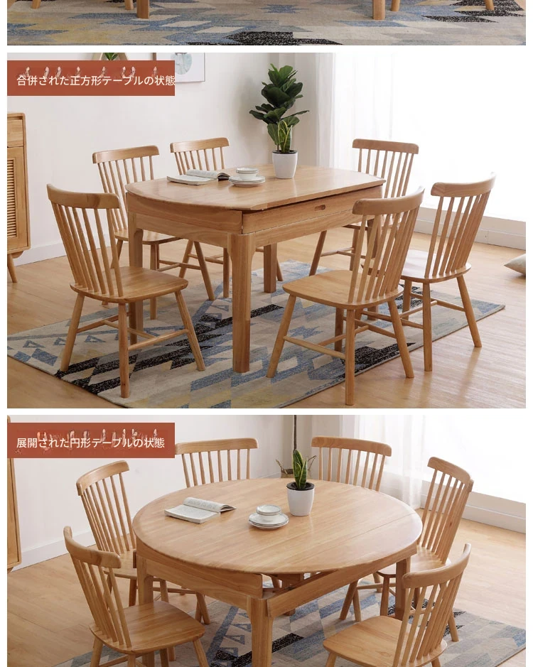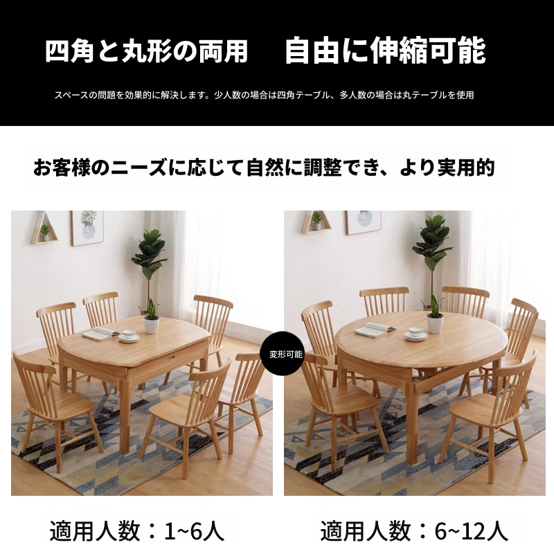 北欧スタイルの全木製ダイニングテーブルセット|小さなスペースに最適な経済的な伸縮折りたたみ式、円形と四角形の両用テーブルで、家族や友人との食事を楽しむ!