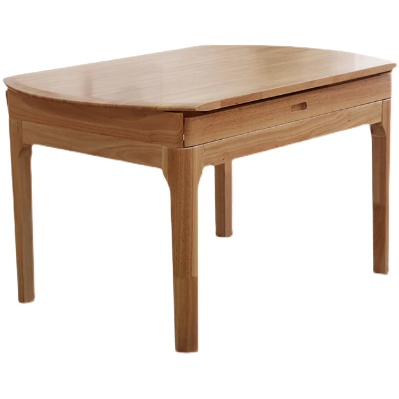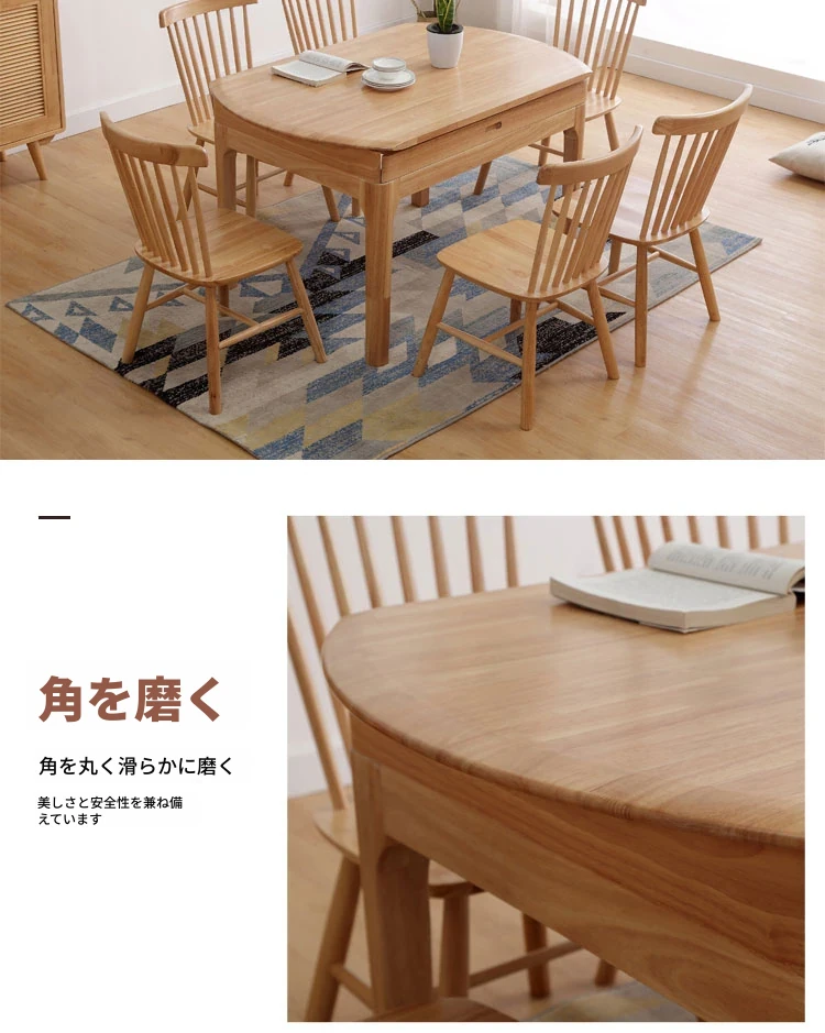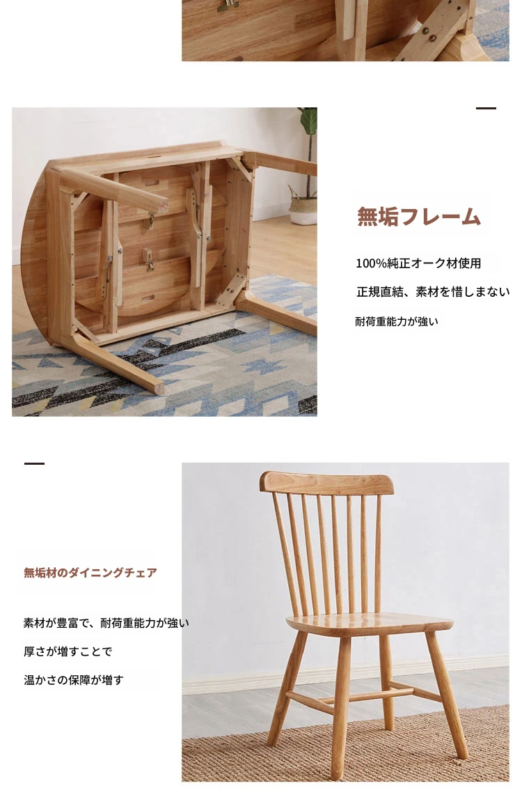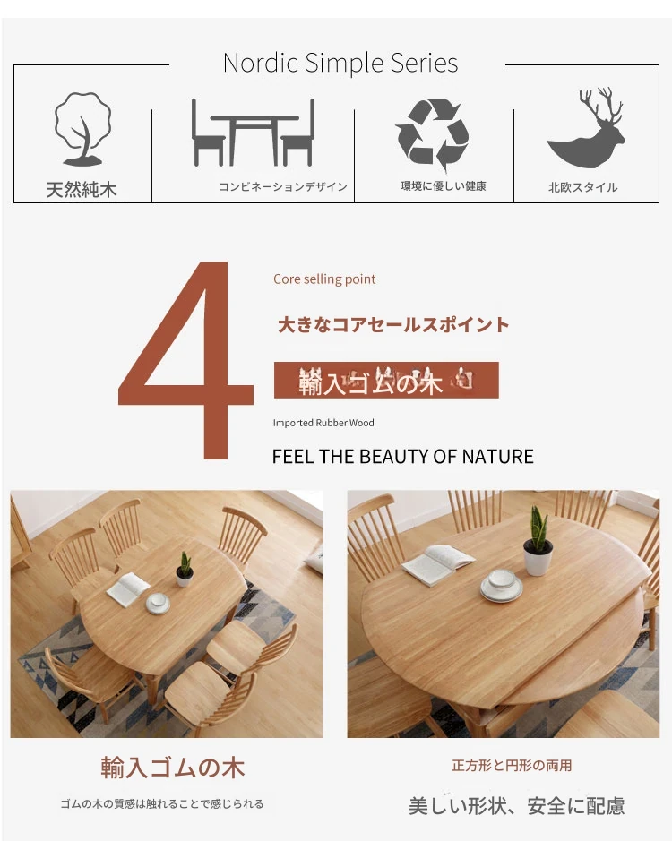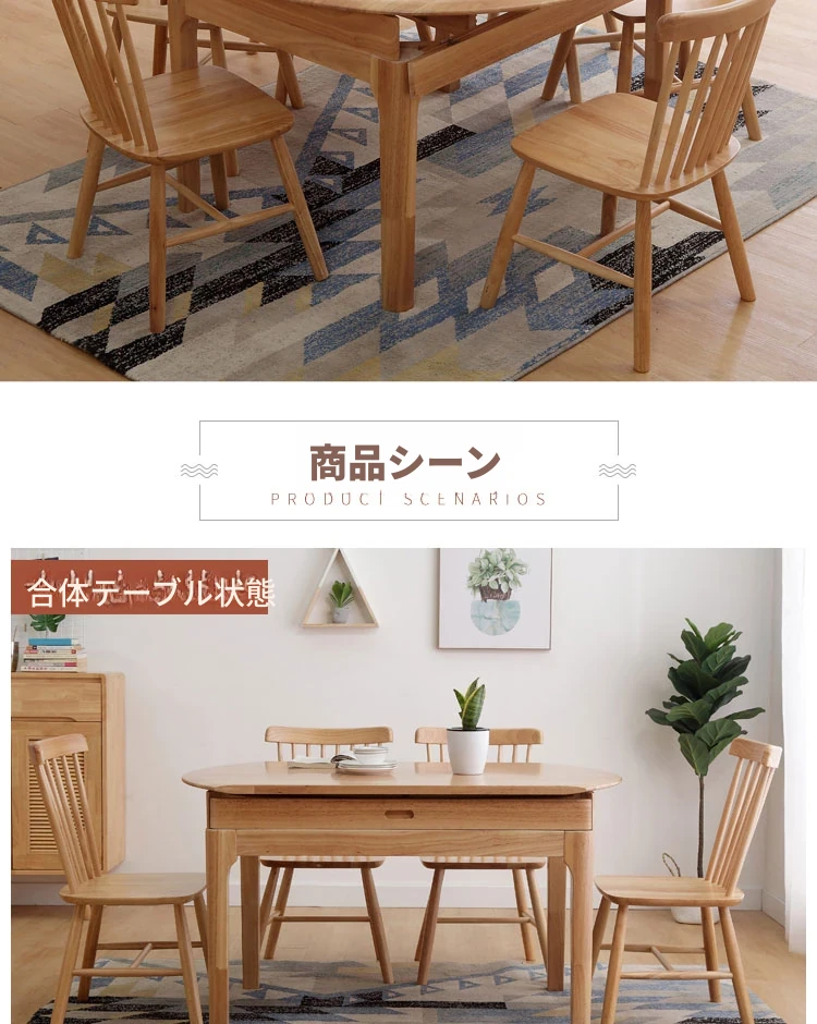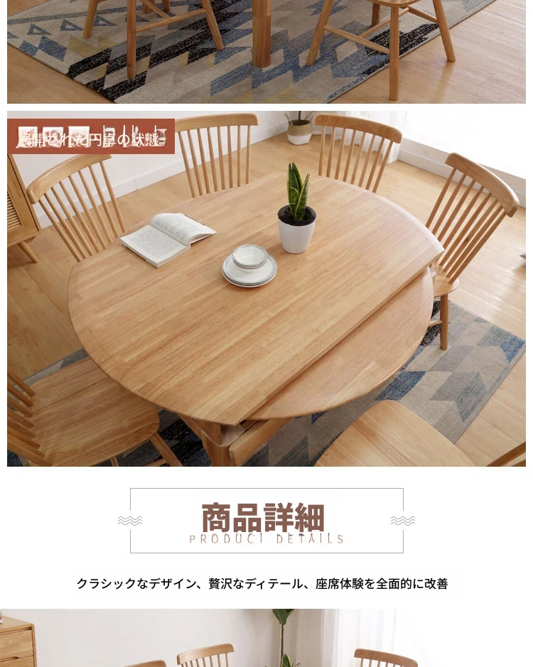 北欧スタイルの全木製ダイニングテーブルセット|小さなスペースに最適な経済的な伸縮折りたたみ式、円形と四角形の両用テーブルで、家族や友人との食事を楽しむ!