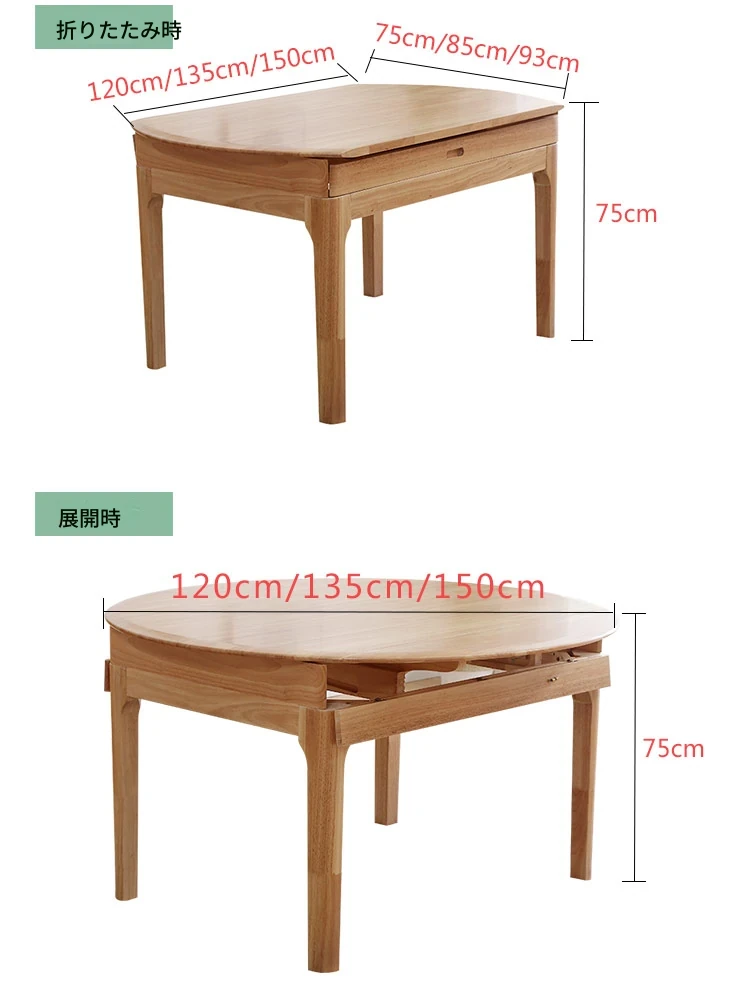 2025年新登場!省スペースの北欧スタイル、伸縮可能な実木製折りたたみダイニングテーブル。小型住宅に最適!壁にぴったり寄せられるプッシュプルデザインで、スタイリッシュに空間を有効活用!