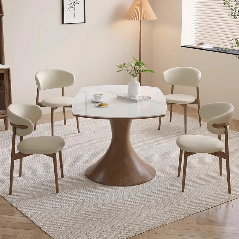 小蛮腰岩板ダイニングテーブル+4羊角椅子