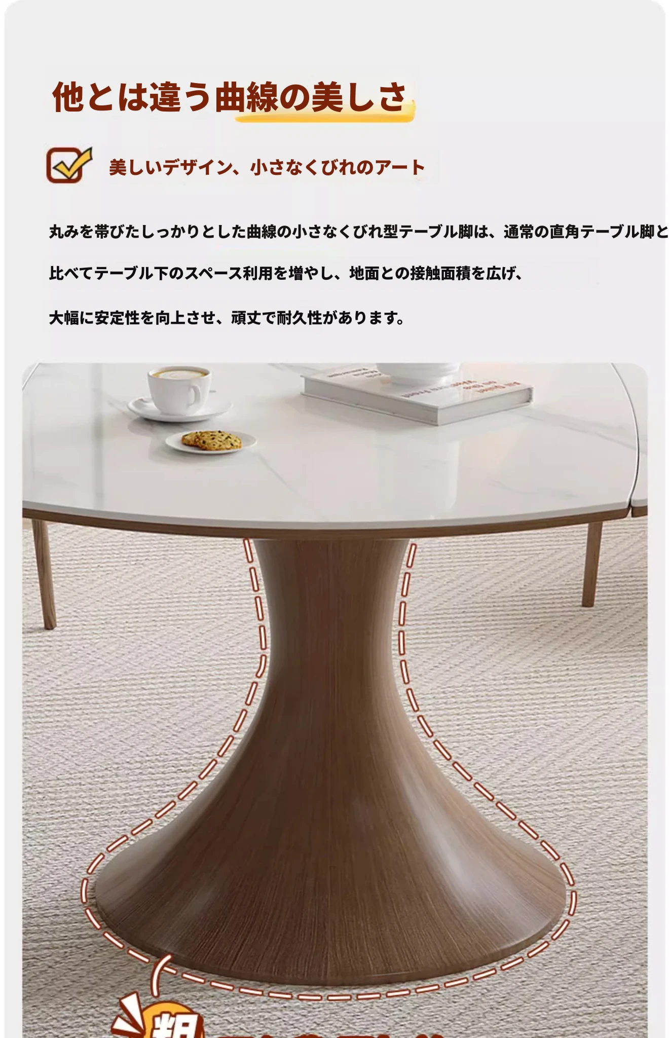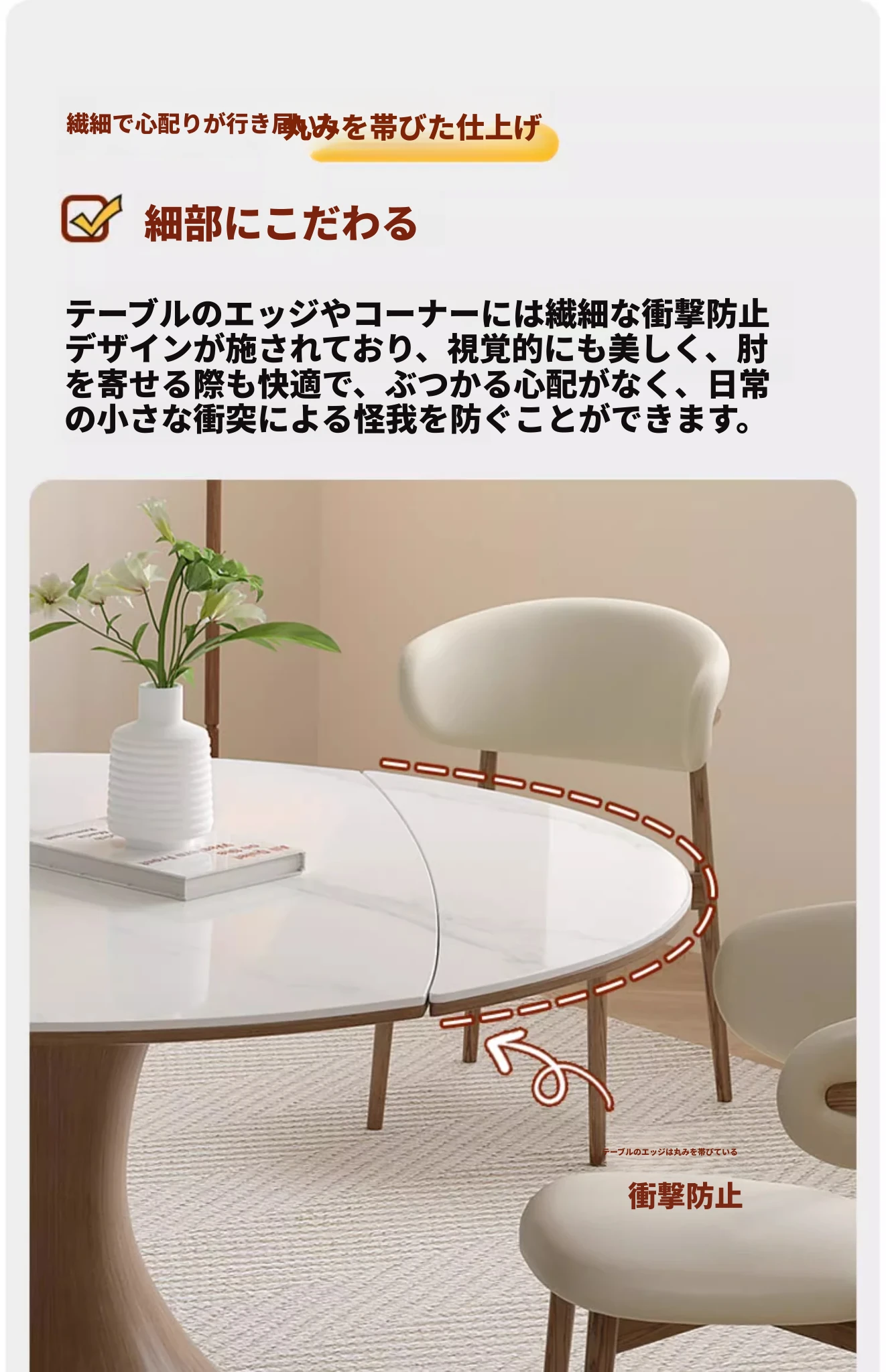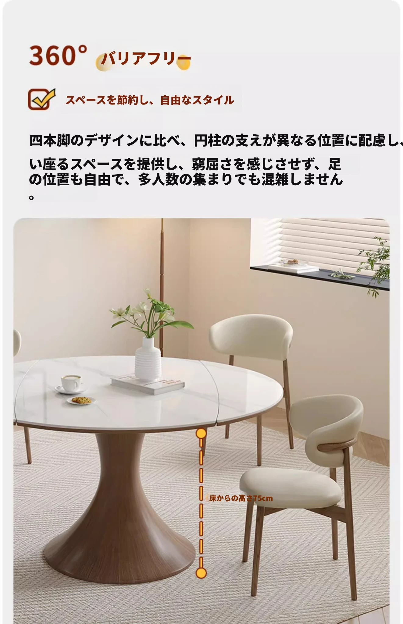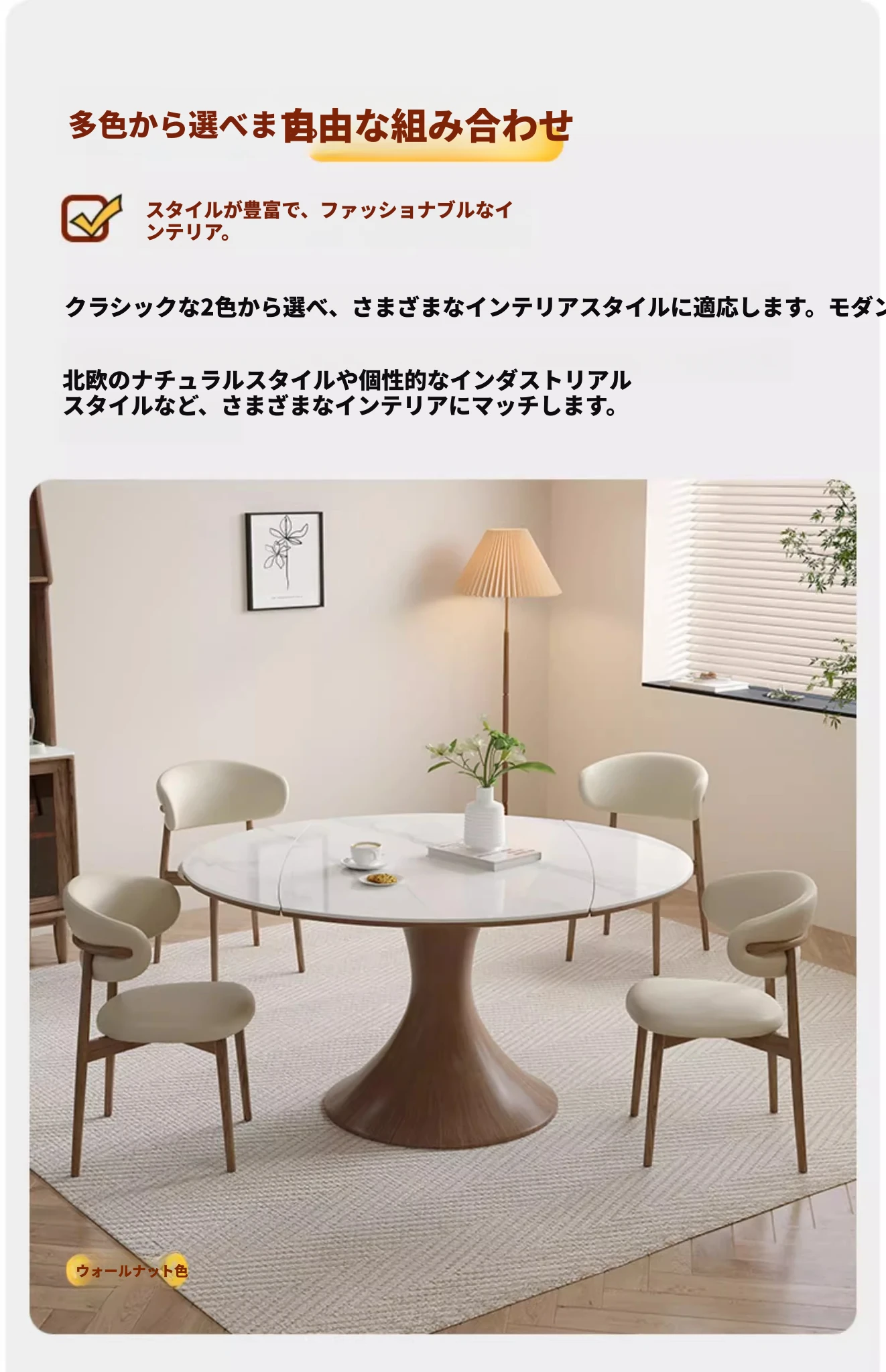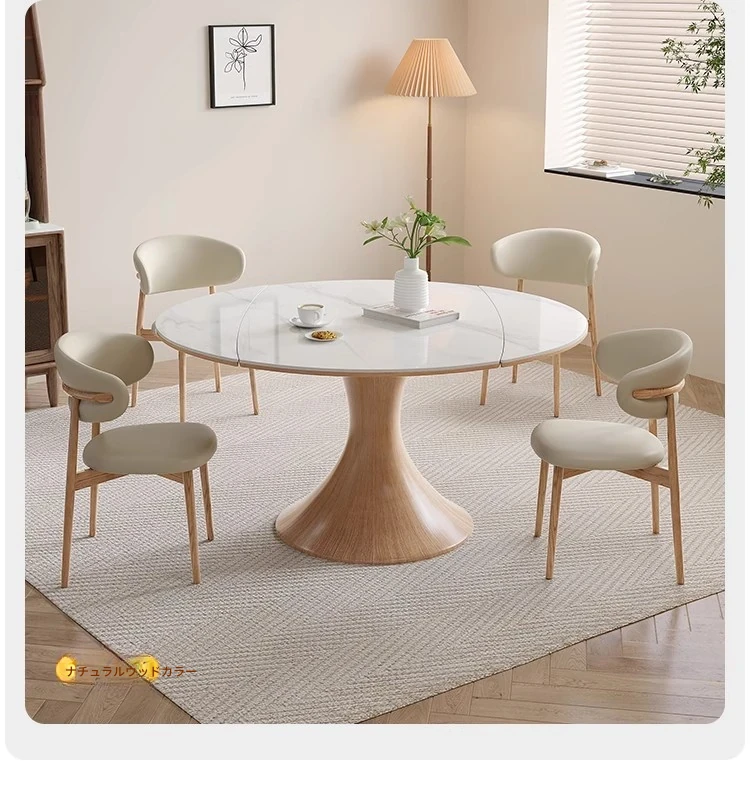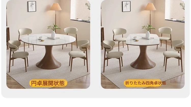 北欧スタイルの無垢材伸縮式テーブル|現代的でシンプルなデザイン|小型家族向け|おしゃれなウェストライン|四角形と丸形の2WAYダイニングテーブル!シーンに合わせて自在に変形!
