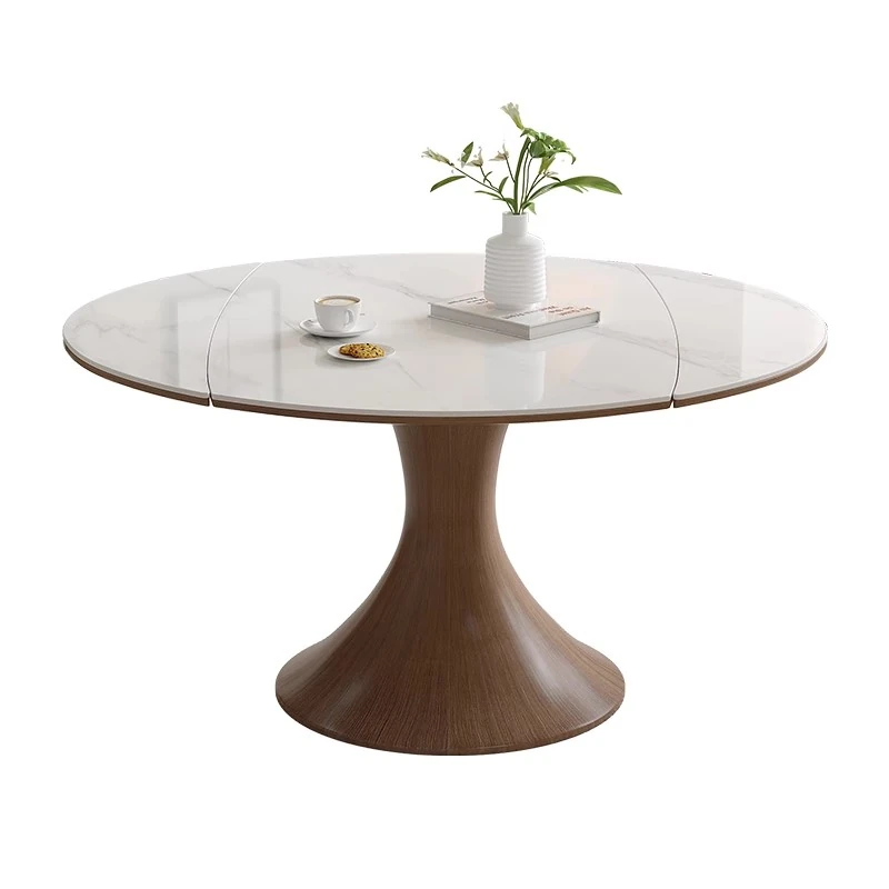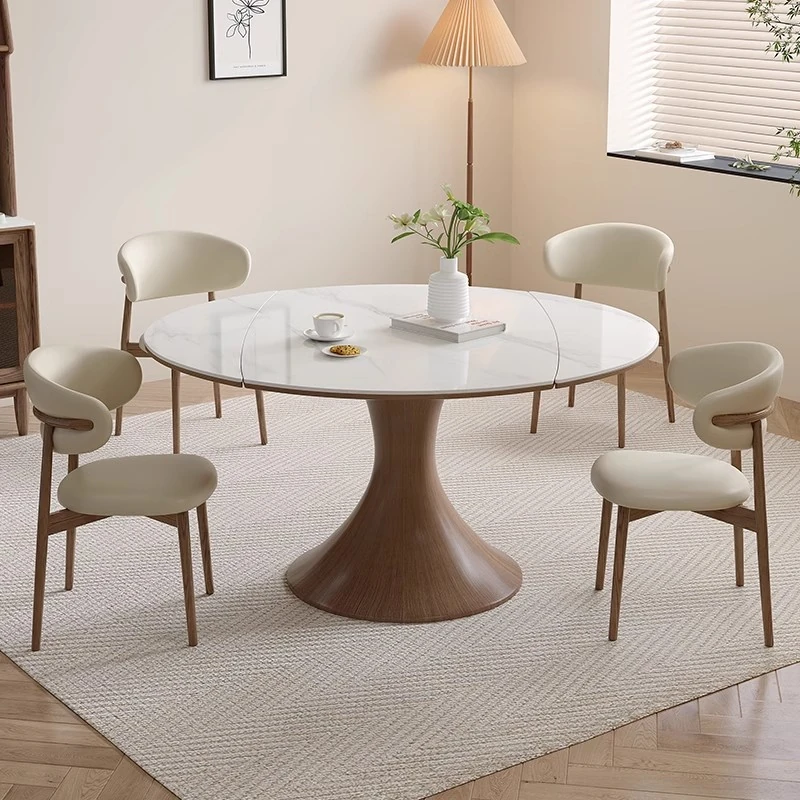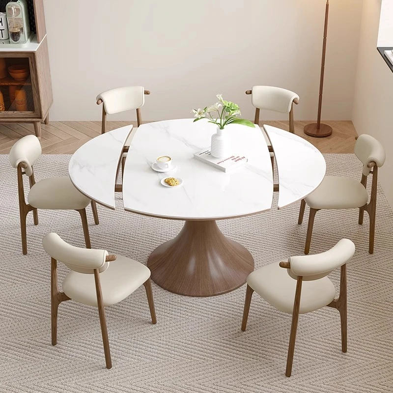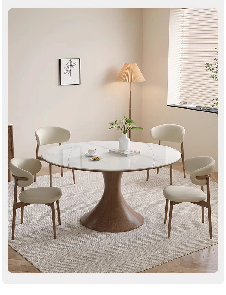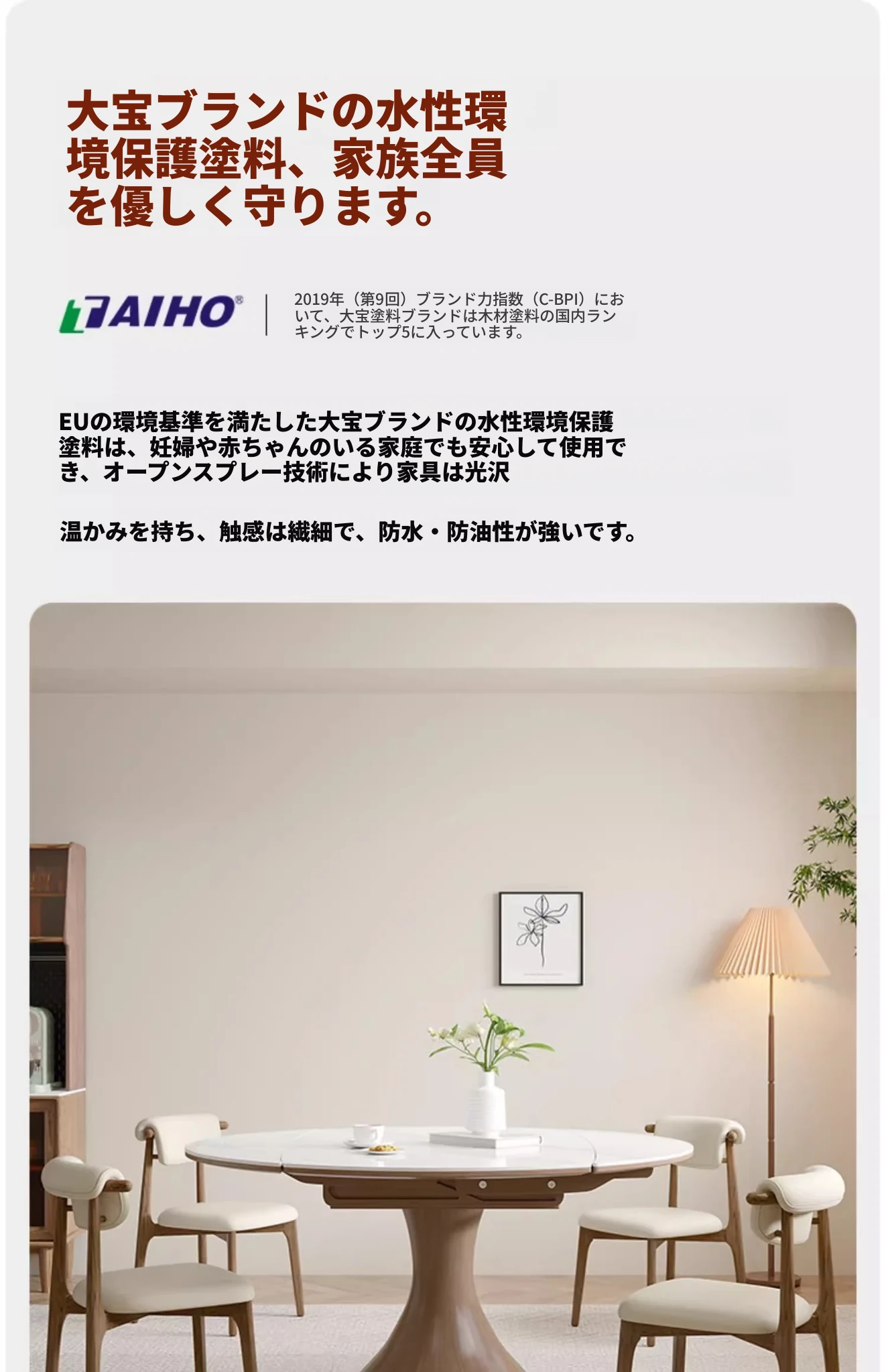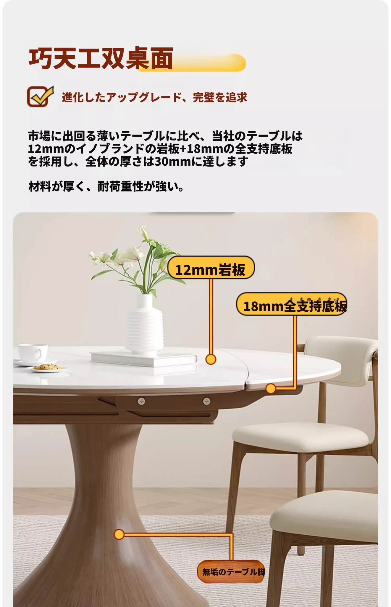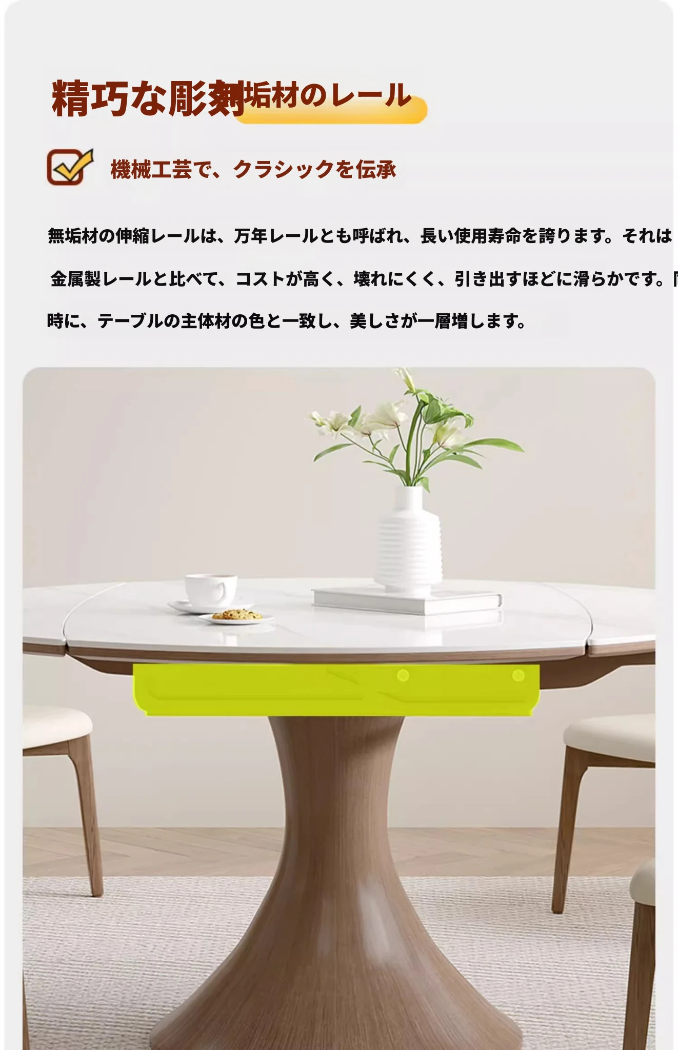 北欧スタイルの無垢材伸縮式テーブル|現代的でシンプルなデザイン|小型家族向け|おしゃれなウェストライン|四角形と丸形の2WAYダイニングテーブル!シーンに合わせて自在に変形!