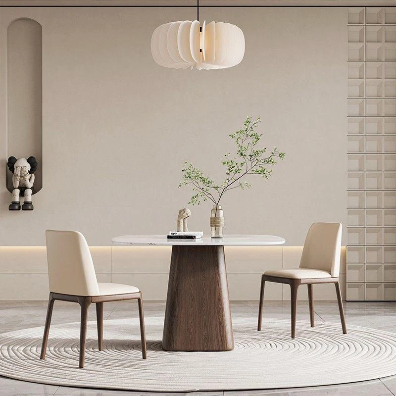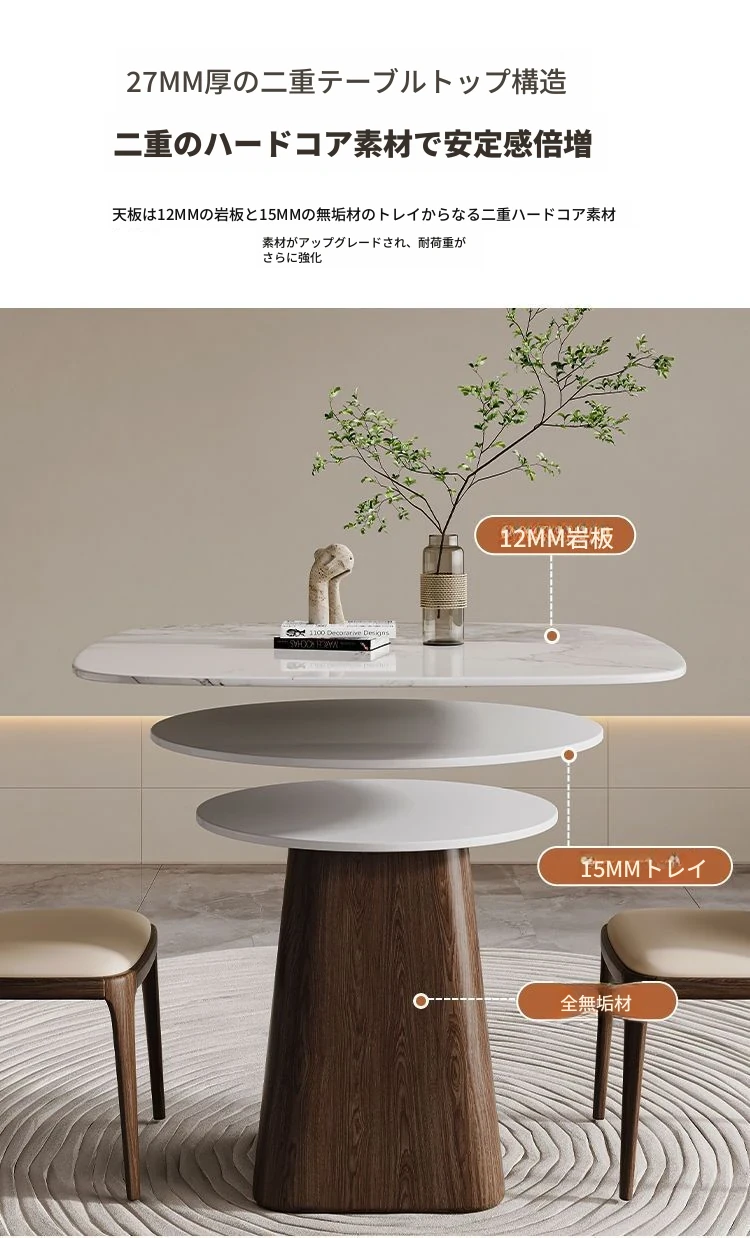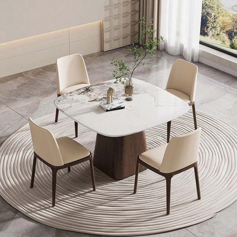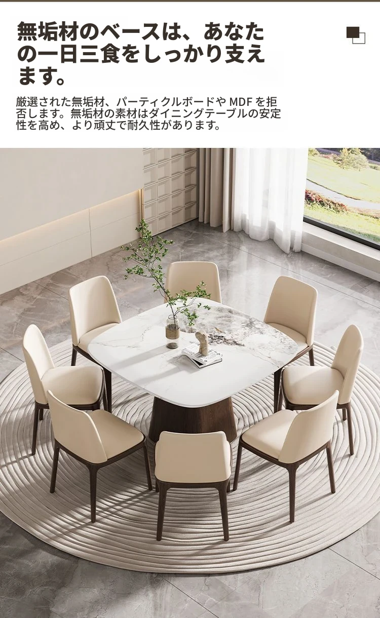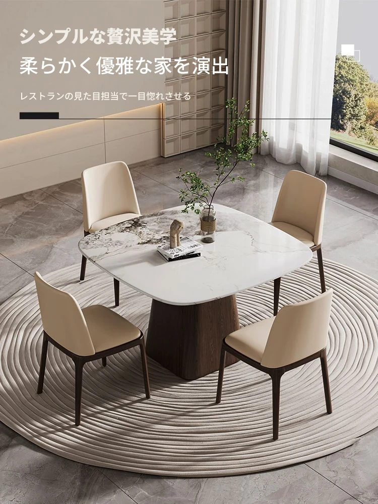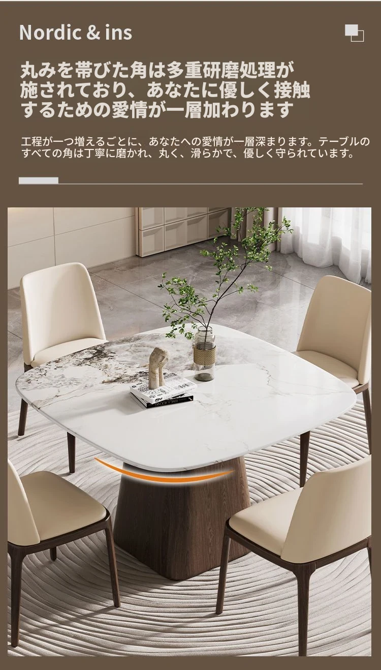 北欧スタイルの天然木製ラウンドダイニングテーブル - 小型スペースにぴったり!シンプルでエレガントなデザイン、回転式で便利。正方形の天然木製テーブルで、家庭での食事をもっと楽しく!
