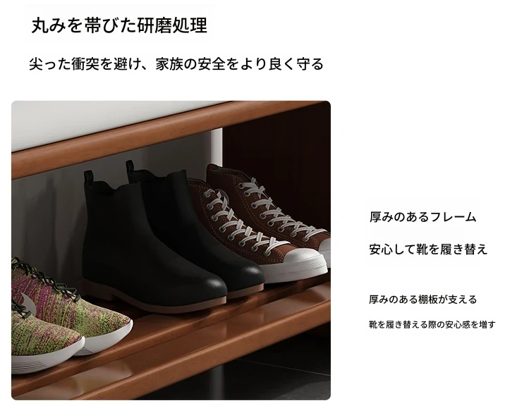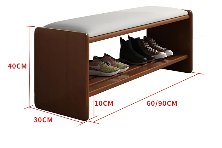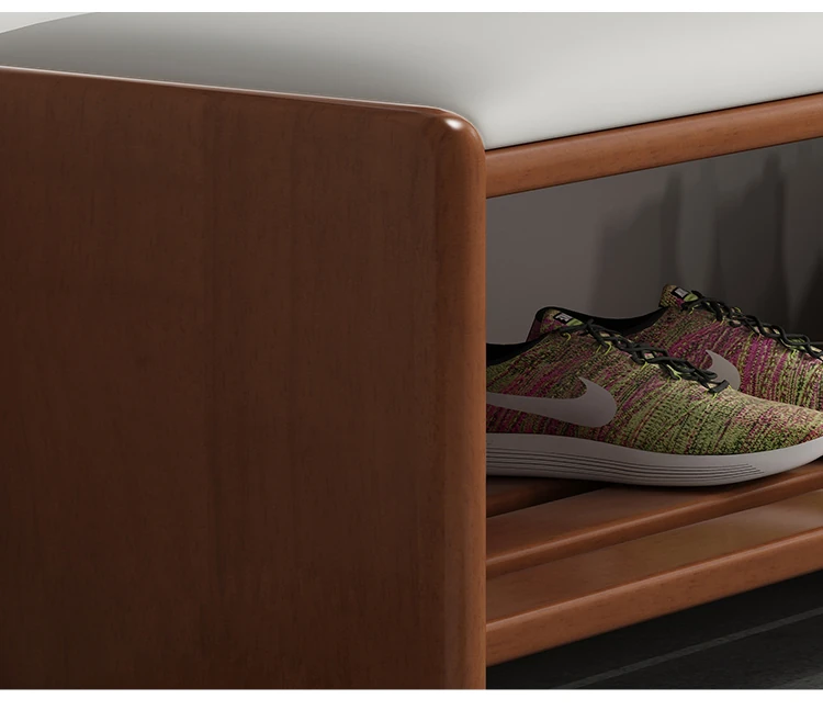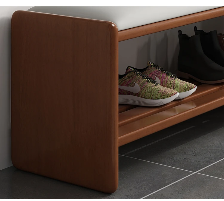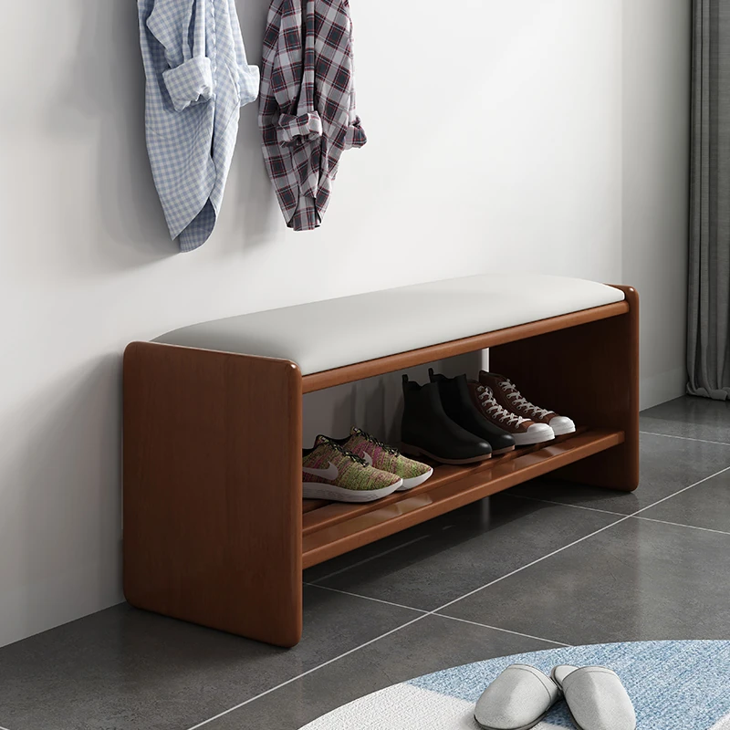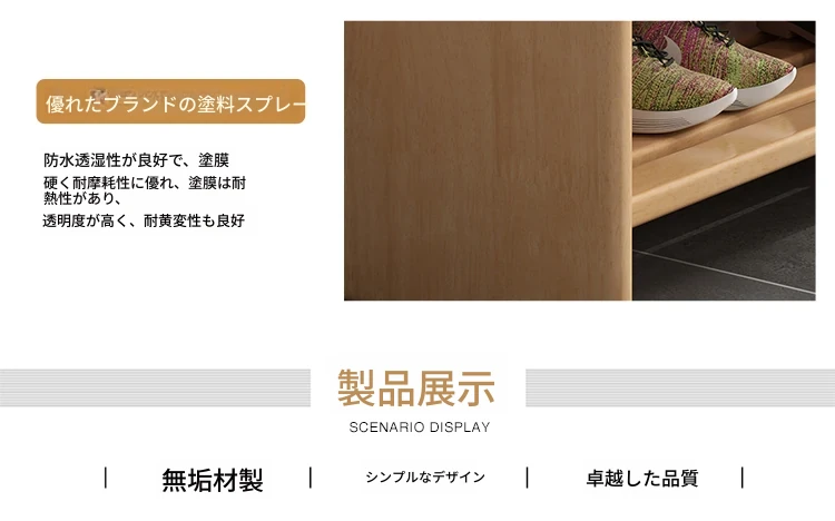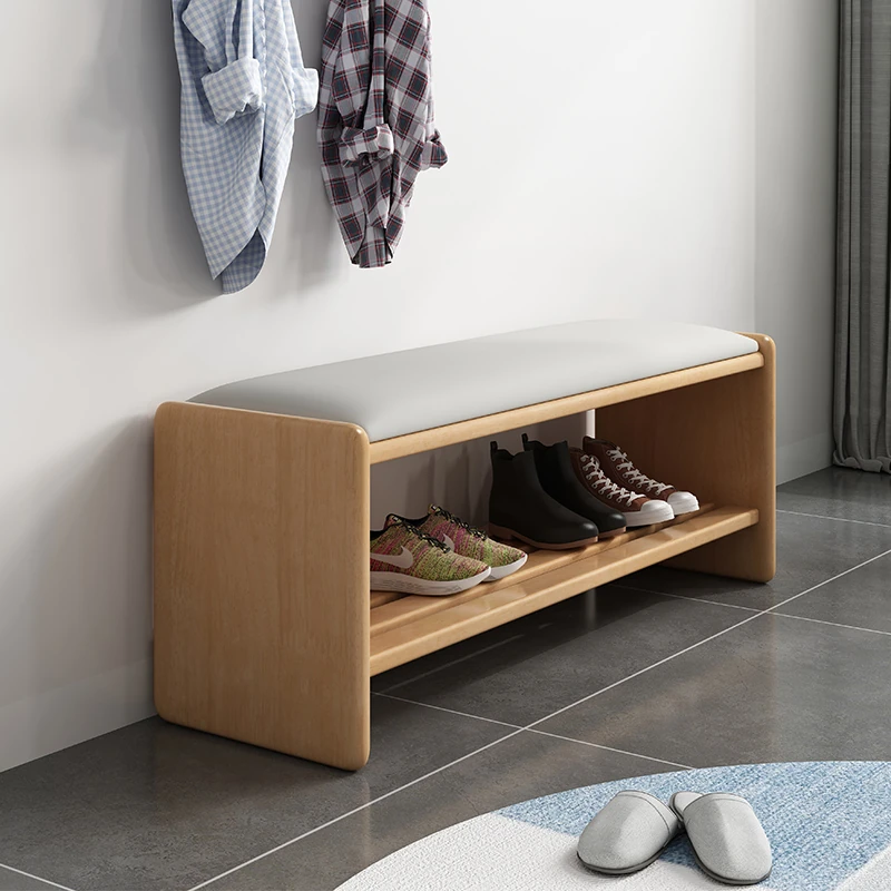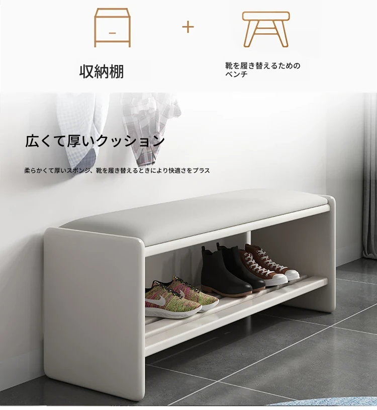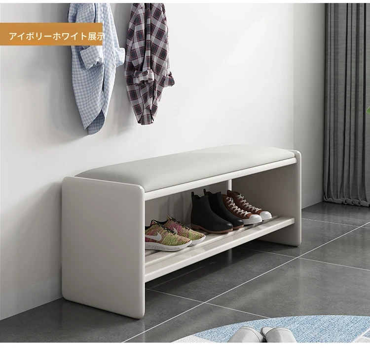 北欧スタイルの天然木製シューズベンチ - おしゃれなソフトパッド付き、玄関にぴったり!収納機能付きで靴の整理も簡単。快適な座り心地で、毎日の靴の出し入れが楽しくなる!